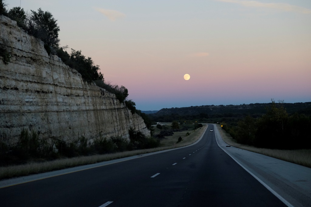 Nākamajā pilsētā ir benzīntanks, bet nav kempinga. Labi, ja tāpat jāpaliek motelī, tad gaismas stundām nav nozīmes, brauksim uz nākamo pilsētu. Lēnām mums aiz muguras noriet saule, bet ceļa priekšā izpeld liels un apaļš mēness. Spožā bumba karājas zili rozā debesīs, pie mums tik lielu mēnesi var redzēt retumis. Līdz ar tumsas iestāšanos atrodam moteli, kura cena mūs nesatriec, attiecīgi paliekam tajā. Lai dzīvo filmu vakars!