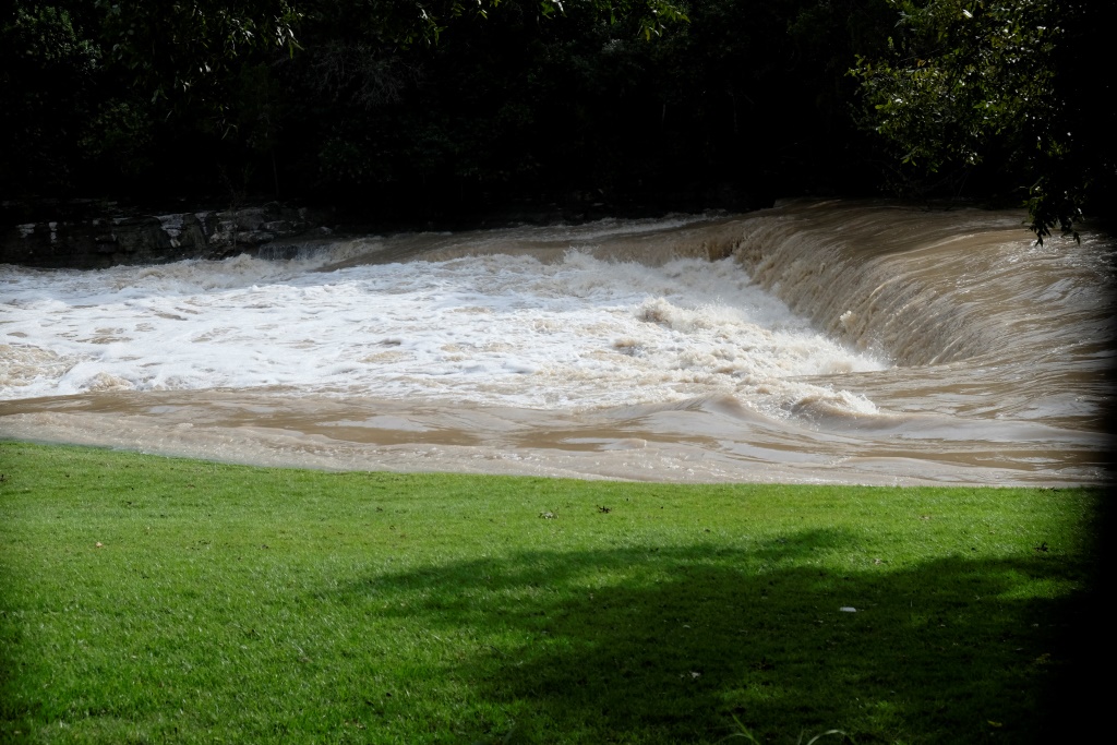 Pēc muzeja apmeklējuma mazliet pabraukājam par Ostinas ziemeļu pusi, lai apskatītu pilsētu no citas perspektīvas. Atceļā uz mājām, piestājam pie upes baseina – joprojām visa apkaime ir applūdusi, grūti iedomāties, ka normālos apstākļos cilvēki šeit rāmi peldas.