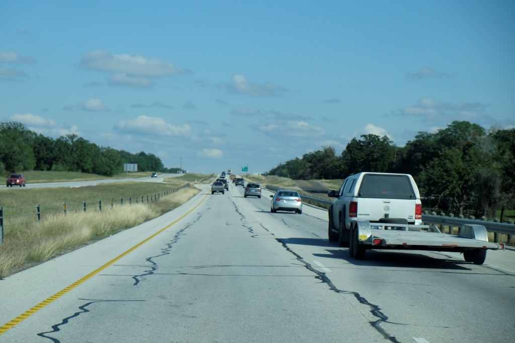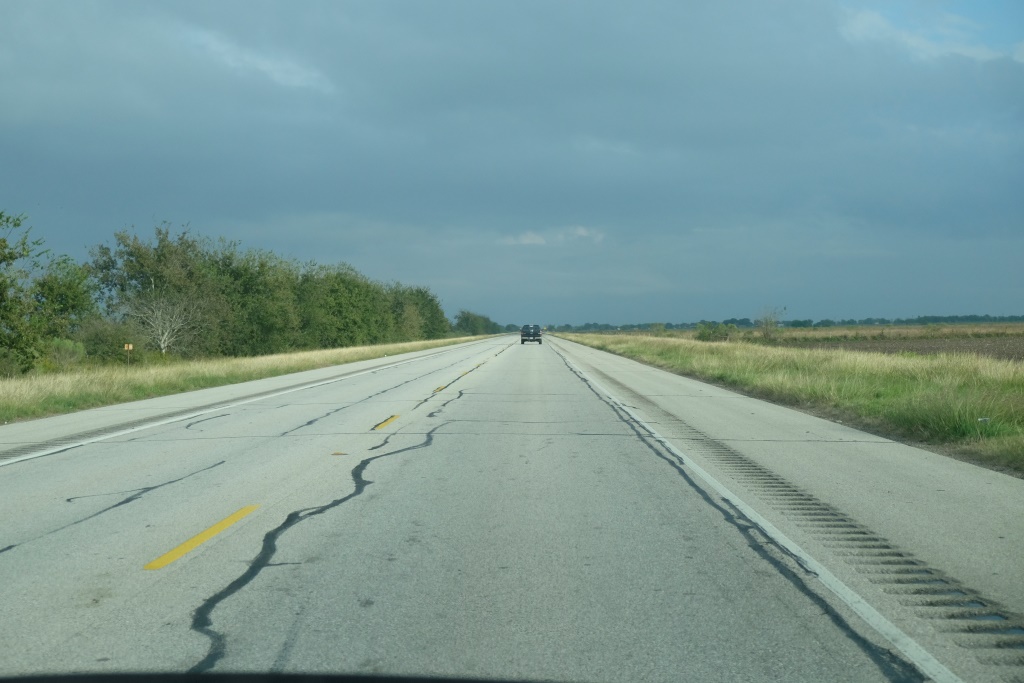 Tad nu atkal sēžam uz Aisberga 2 un kuģojam okeāna virzienā, gribam vēl šonakt nonākt pie Meksikas līča. Ir laba sajūta atkal kustēt uz priekšu, bet pats ceļš nav diez ko interesants – klajumi, lauki, nelielas pilsētiņas. Diezgan garlaicīgi. Vienīgi vakara pusē mūs priecē spoža varavīksne ceļa galā.