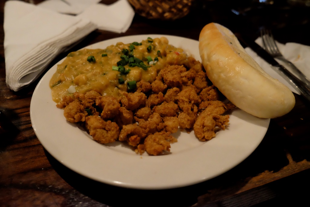 Nošmulējušies pēc pilnas programmas, kāpjam mašīnā kopā ar slapjo suni – drīz salons virmo no aromātu dažādības un spalvām visās malās. Pilsētā sācies korķu laiks un, kamēr tiekam līdz mājām, esam izbadējušies ne pa jokam. Aši ieskrienam dušā un dodamies vakariņās – šovakar Konstance ved mūs uz vietu, kas specializējas Luiziānas tradicionālajā virtuvē. Tur nogaršojam aligatora gaļu, jūras veltes un pildītas sēnes. Viss garšo lieliski – francūži nav šeit velti laiku tērējuši.