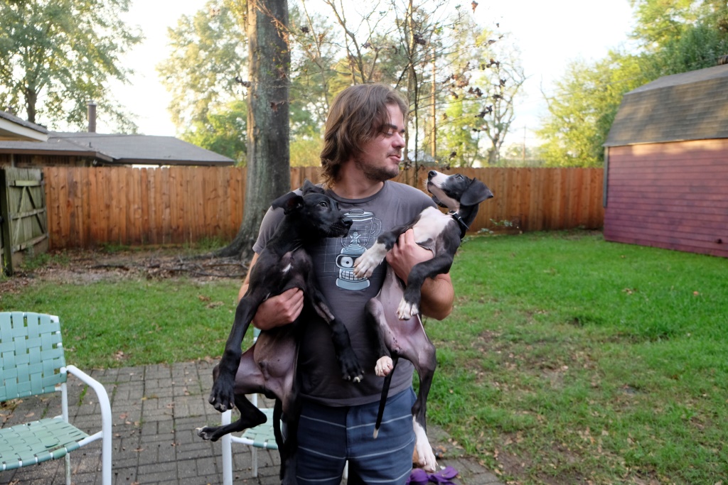 Arī suņi ir kopā ar mums šovakar – abi kucēni, Pandora un vilku suns Nova, ko pazīstam no pārgājiena. Visa māja ņudz no ķepam un astēm. Kucēni kopā tiek saukti par Monstriem, lai dzīve būtu vienkāršāka. Vakara gaitā arī melnais kucēns tiek pie vārda – Hops!