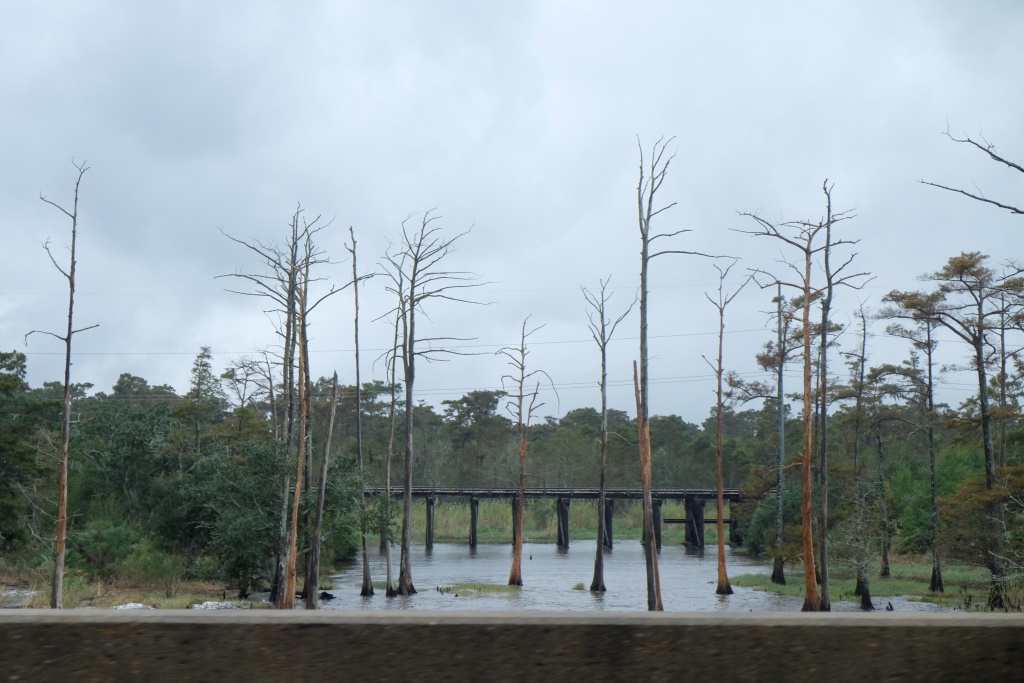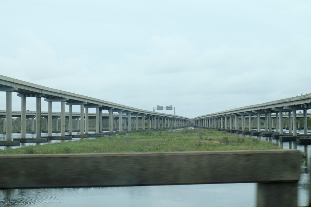 Ar skumjām atvados no abiem mazajiem monstriem un Konstances – uz šīs pasaules par dažiem draudziņiem vairāk. Kolīdz tiekam ārā no Batonrūžas, sāk līt. Viegla līņāšana lēnām pārvēršas par pamatīgu gāzienu, šķiet, Ņūorleāna mūs sagaidīs pavisam slapja. Atkal abās ceļa malās paveras ūdens klaji ar zaļumiem – brīžiem aiz džungļiem ūdeni knapi var redzēt, brīžiem skatāms pamatā ūdens ar pāris nīkiem krūmeļiem. Redzam arī pirmo nobraukto krokodilu, tātad viņi šeit dzīvo, ceļa zīmes nemelo.