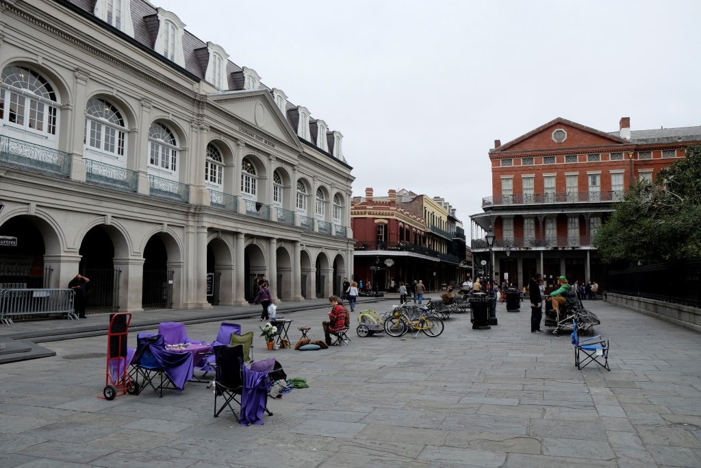Svētdienas rīts atnāk lēns un saguris. Ieturam vēlas hosteļa brokastis, pamocām internetu, tad atkal dodamies uz Ņūoreānas centru. Šoreiz ar kājām, šodien ir sajūta, ka vajag izvēdināt galvu un izstaigāties. Ārpus centra viss ir tukšs un kluss, kā jau pie svētdienas, bet vēsturiskās ieliņas atkal ir tūristu pilnas. Laiks ir apmācies un vējains, bet vismaz nelīst. Mans fotoaparāts pēc vakardienas apiešanās ir drusku apvainojies un tikšķ kā laika bumba, par ko tiek sodīts ar baterijas izņemšanu.