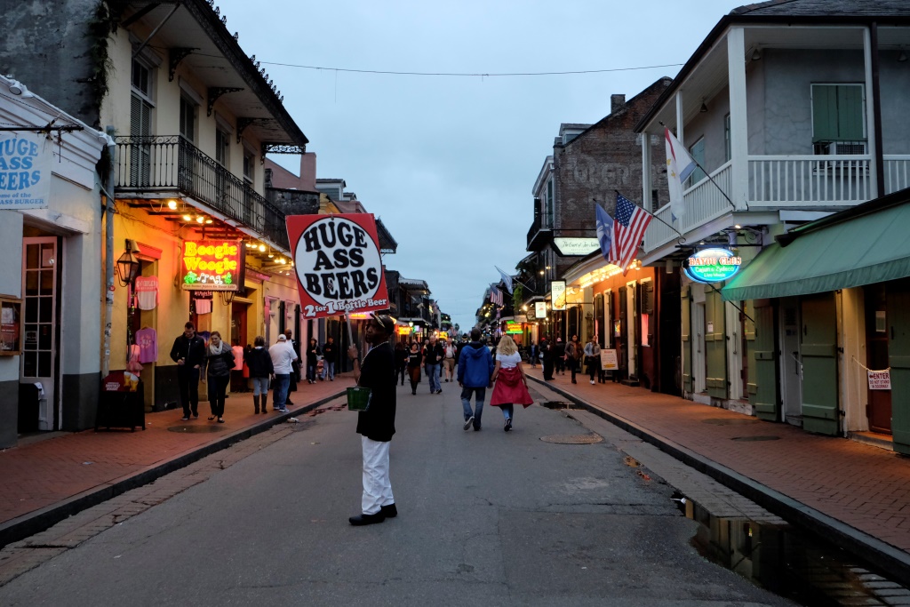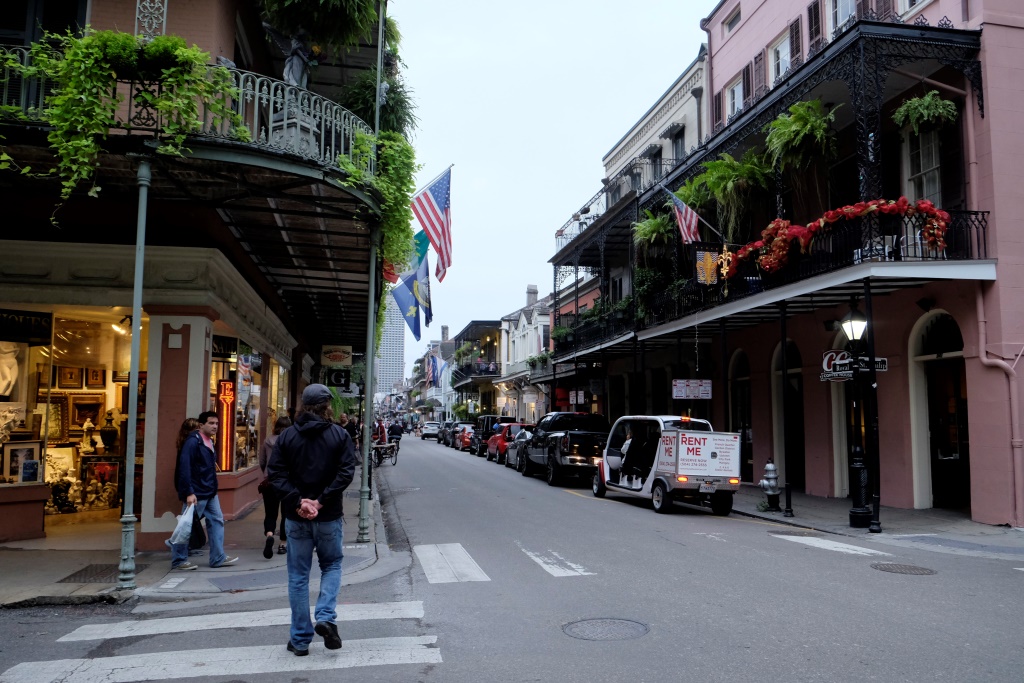 Mums ir iedoti dažnedažādi padomi par Ņūorleānas apskati, bet mēs ļaujamies jaušībām un vienkārši klīstam riņķī. Šodien ielas pat ir pilnākas nekā vakar, kad lietus daudzus atturēja no pastaigas. Šīs pilsētas arhitektūra ir omulīga, katrs nams ir kā mākslas darbs, īpaši, ka sāk krēslot un iedegas māju acis. Izskatās, ka Ņūorleāna ir tāda kā mazā Lasvegasa, te katra diena ir sestdiena. Arī šodien tauta svin tā, it kā rīt būtu brīvdiena. Vienā brīdī mums sāk sāpēt kājas, kas nejūtas labi no vakardienas slapjajos apavos, mēs nopērkam vakariņām vietējo sviestmaizi Po’boy un braucam uz hosteli.