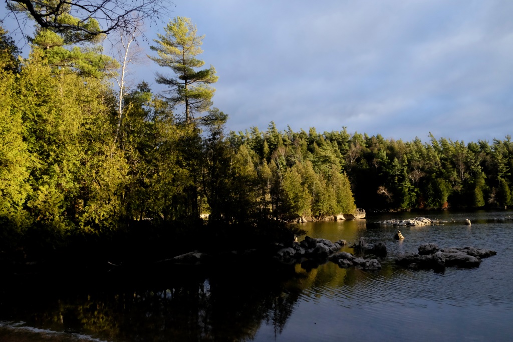 Viesošanās laikā apskatām Guelph pilsētiņu un dodamies pārgājienā uz Rockwood apvidu, kur var aplūkot 200 “bļodas”, ko pirms vairāk nekā 11 000 gadiem izgrebis Viskonsīnas ledājs. Ir laba sajūta pastaigāties rudens dzestrumā un izlocīt mašīnā iestīvinātos kaulus.