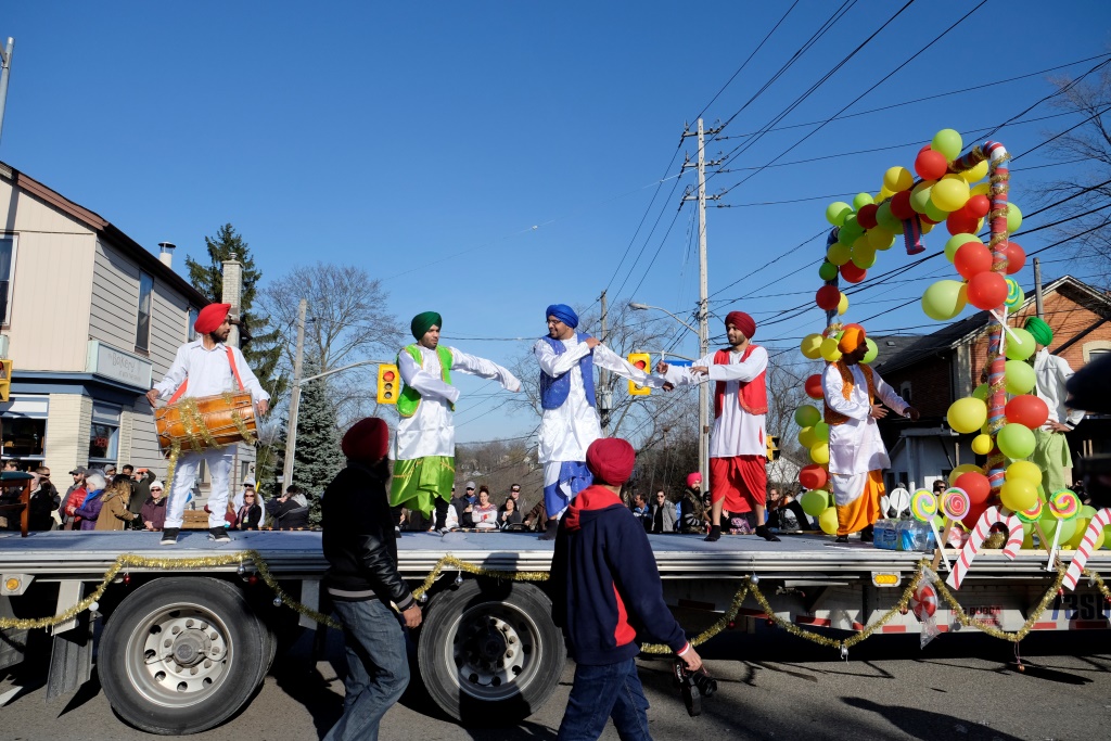 Parāde sākas ar pārtikas bankas centieniem vākt līdzekļus, tad pastnieki aicina nodot Santa Klausam adresētās vēstules, pēc tam var skatīt visu, ar ko vietējā kopiena aizraujas – soļo pūtēju orķestri, mākslas skolas, dejotāji, skrituļslidotāji, velosipēdisti. Dzīvnieku patversmes ieradušās ar dažiem iemītniekiem, kas varbūt atradīs nākamo saimnieku skatītāju rindās. Ārsti un ugunsdzēsēji vēl mierīgu svētku laiku pašiem un sašiem. Daudzi gājiena dalībnieki dala saldumus, tie pamatā tiek bērniem pirmajās rindās, bet ugunsdzēsēji, šķiet, pat šādā brīdī ir apdomīgāki – viņi vienīgie ievēro kautrīgākos mazos aizmugurē un piešķir našķus tieši viņiem, kā arī dažai labai mammai. Kas zina, kuram prieks lielāks. Tad parādās gājiena dalībnieki, kas mani pārsteidz un arī aizkustina visvairāk – priecīgus svētkus vēl arī vietējā indiešu sikhu kopiena. Teorētiski – kas viņiem daļas par tādiem Ziemassvētkiem, bet dzīvojot šeit, viņi šādi pauž respektu pret apkārt dzīvojošajiem. Kaut kāds vieglums sajaucas ar pēdējā laika smagumu.