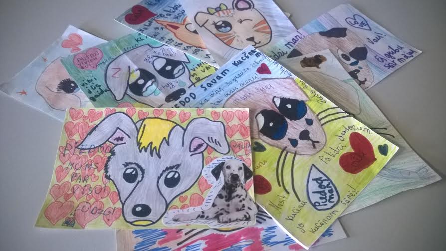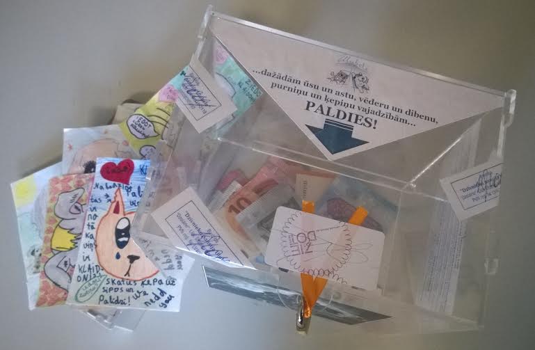 Tomēr ap septiņiem ļaudis sāk nākt – durvīs parādās dzīvē sen pazīstami ģīmji, dažus sazīmēju no sociālajiem tīkliem un iepazīstos dzīvē, ir arī daži pilnīgi nezināmi ļaudis, kas izdzirdējuši par pasākumu un atnākuši tāpat vien – paklausīties. Uz bāra letes un manā galvā rindojas sirsnīgu apsveikumu virtenes, mīļas dāvaniņas, kartītes un smaržīgi sveicieni. Gunitas atvases – Ieva, Matīss, Edžus – kopā ar vēl citiem bērniem uzzīmējuši veselu bilžu kolekciju Ulubelei, arī man veltīta “Zivs. Peld. Burbuļos. Kas. Varētu. Notikt.” un citas dzimstošas un pieaugušas pērles. Dace, kas ir daudz lielāka sapņotāja par mani, atbraukusi no Ventspils. Viņai 3. februāris patiešām ir Īstā diena, jo tieši pirms gada dienasgaismu ieraudzīja Daces blogs: http://dacepa.com/ (un šodien vārdadiena – hip-hip!). Un visiem, visiem – paldies par Jūsu veltījumiem un atnākšanu! Arī vārna ķērc sirsnīgu “Krāl-dies!” – Ulubeles kastītē pa vakaru sakrita 135 eiro!