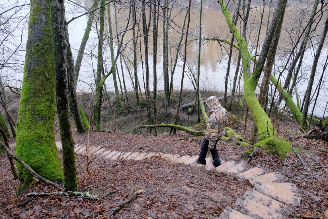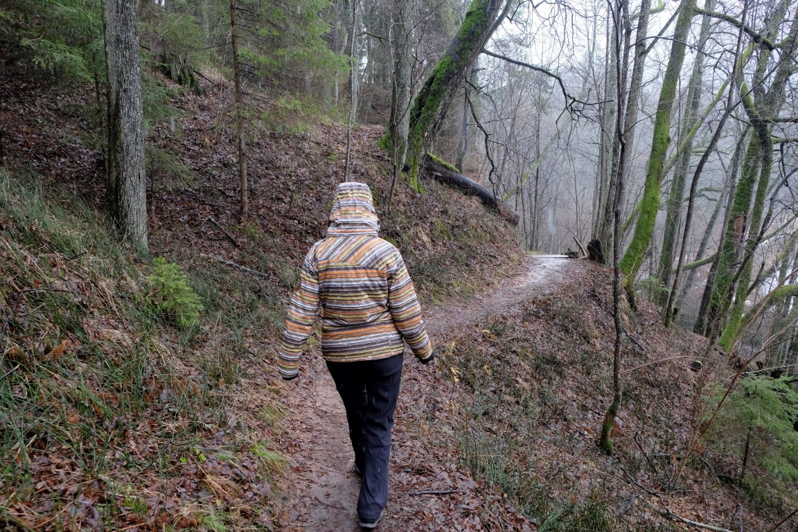 Arī šodien, par spīti laika draņķim, abas divas ar draudzeni dodamies pastaigā pa Gaujmalu. Drīz pēc visiem labi pazīstamā tilta šķērsošanas, kalnup ved ne tik labi zināms, salīdzinoši nesen izbūvēts serpentīna ceļš. Var jau joprojām izvēlēties arī koka kāpnītes, bet jāatzīst, ka jaunievedums vismaz man šķiet nedaudz jaukāks kalnā tikšanas veids.