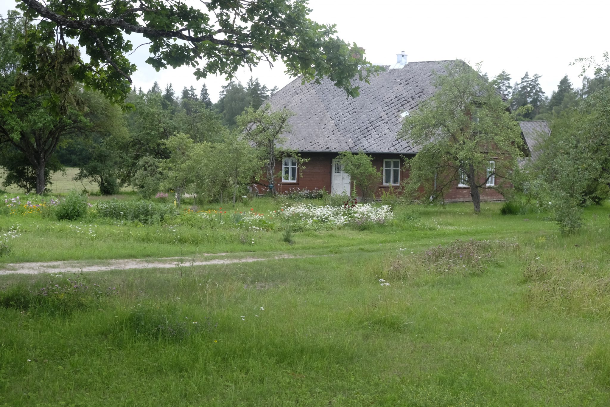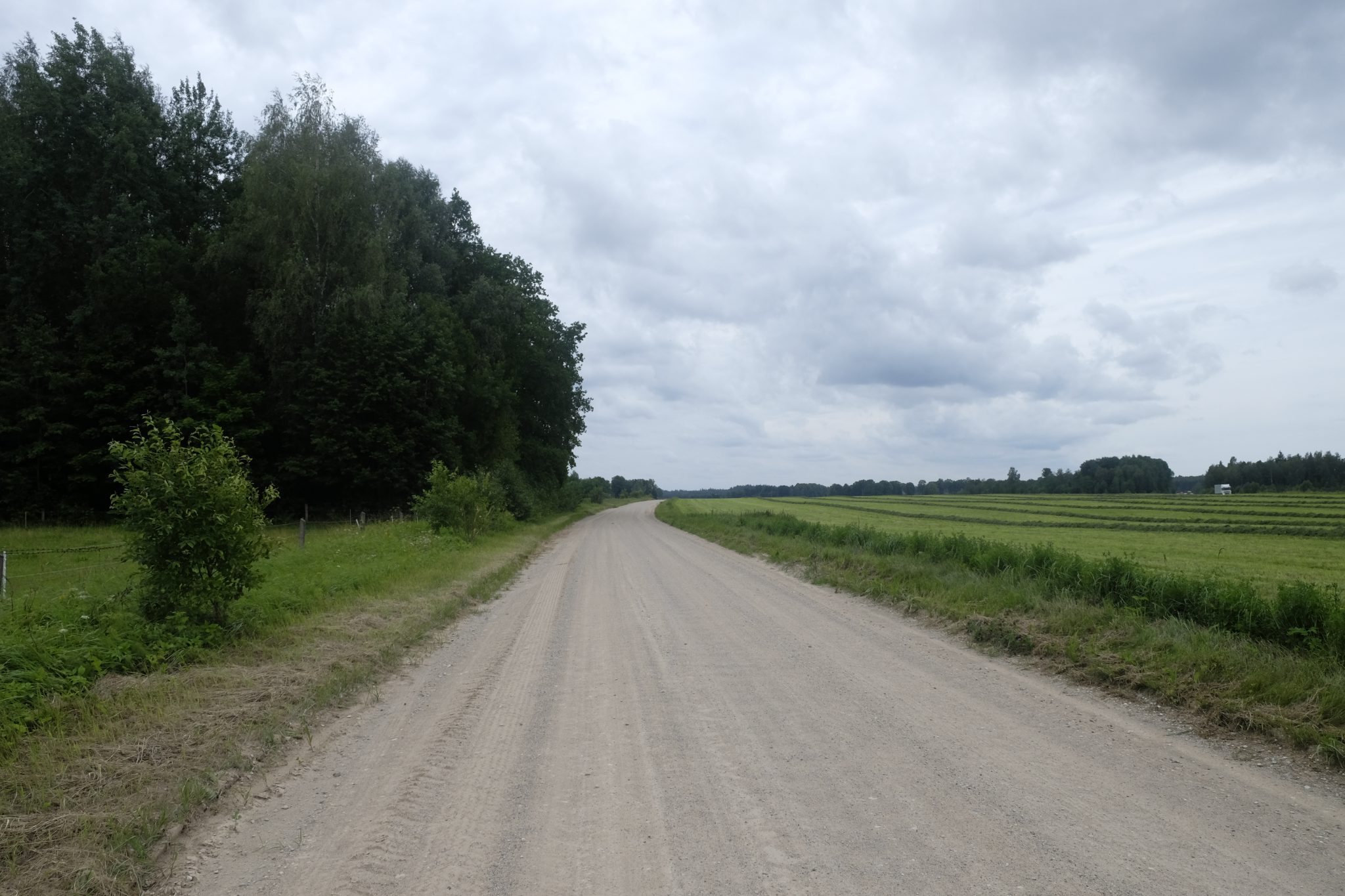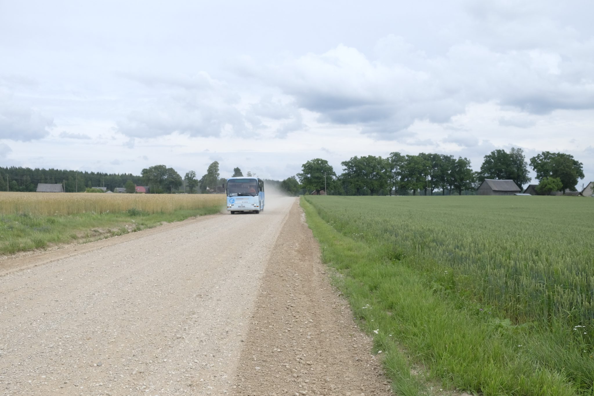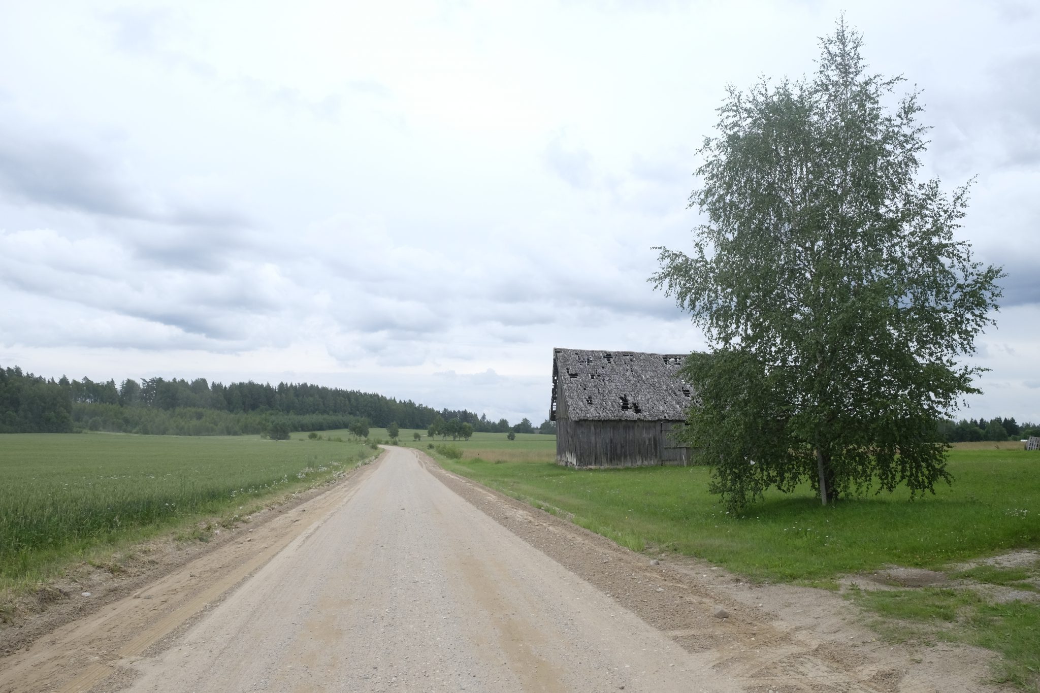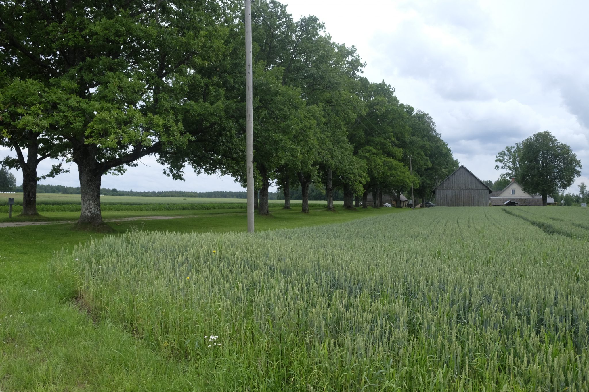 Mašīnu uz šī ceļa ir pavisam maz, bet es nemaz necenšos balsot – gribu izbaudīt kājāmiešanas prieku un skatus, kurus var pamanīt tikai pārvietojoties lēnītēm. Paralēli dabas krāšņumam priecē apkaimes mājas – visas ir sakoptas, pagalmos laistās ziedu kupenas, briest ogas un dārzeņi. Ik pa laikam norauju kādu ceļmalas upeni, kazeni, korinti, ērkšķogu vai aveni – šajā laikā badā nepaliksi.