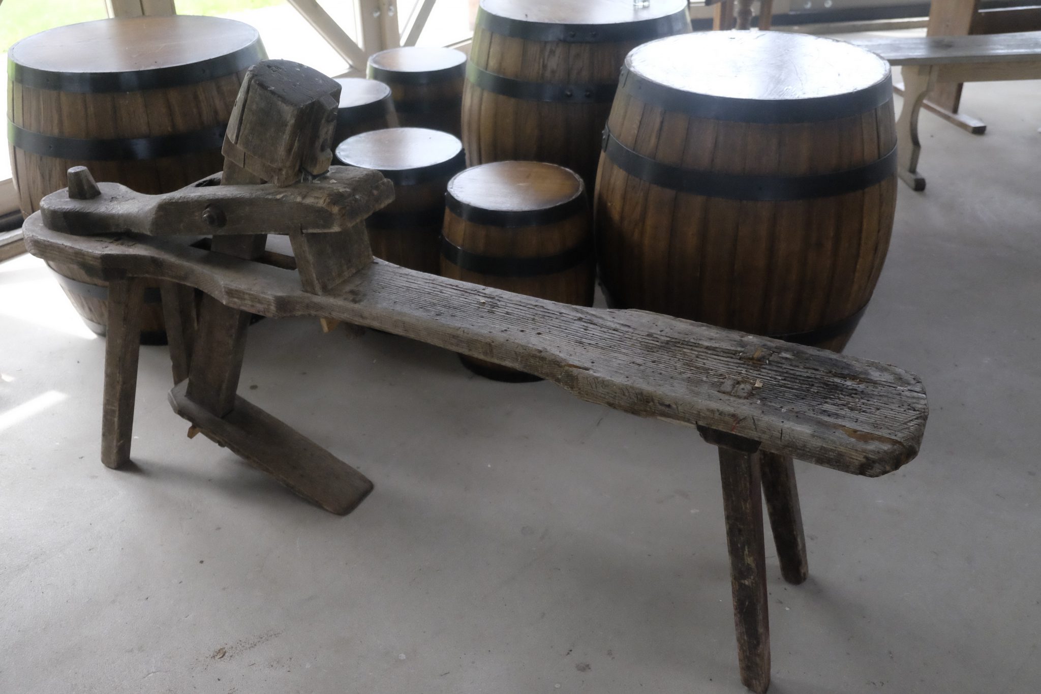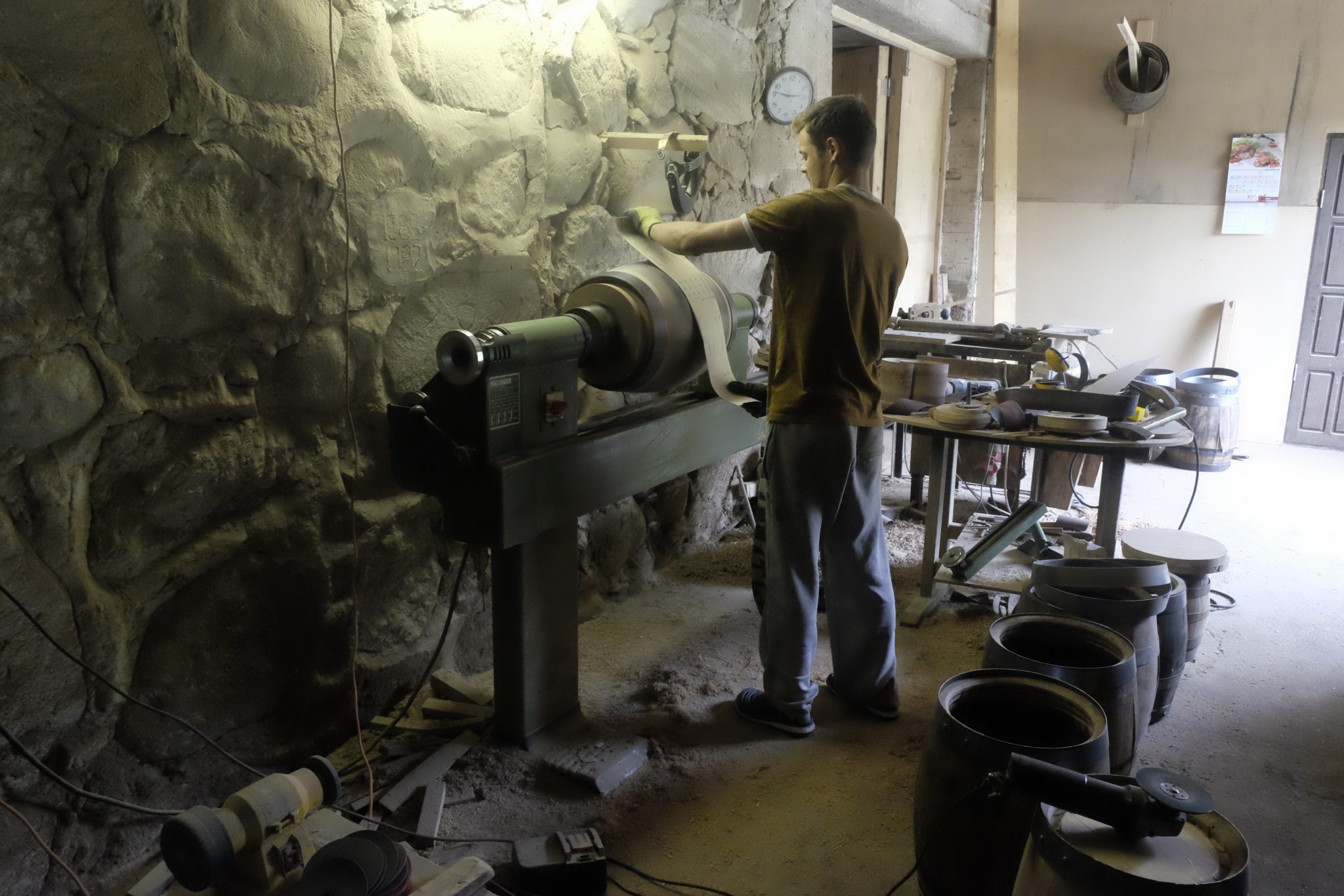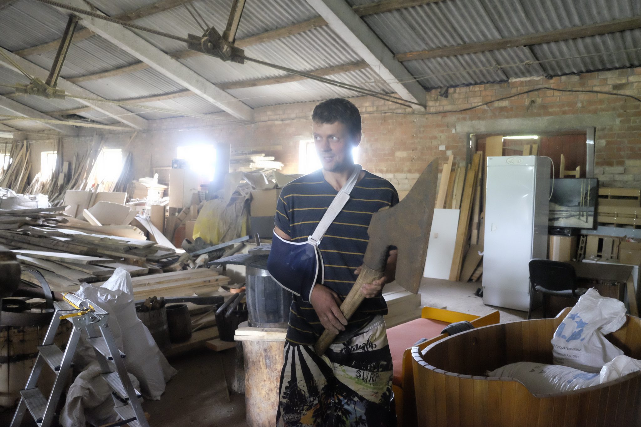 Vēl Jānis joka pēc “pasūtījis” fermu, kur iekārtot darbnīcu un arī tā bijusi kaimiņos. Kad ieejam tajā, man acis ieplešas – kaut ko tik skaistu sen neesmu redzējusi. Iekārtas, materiāli, gatavā un pusgatavā produkcija, dažnedažādi rīki. Jānis man rāda dažus senos instrumentus un skaidro, kas kam ir domāts. Tad no kaudzes tiek izcelts milzīgs cirvis un Jānis stāsta, ka pie viņa viesojies raidījums “Province”, kuram cita starpā šī cirvja kontekstā, kuru savas seno lietu kaislības vārdā nopircis par 70 eiro, izstāstījis anekdoti par motobraucēja ļaunāko murgu. Tas esot tāds, ka sieva pēc viņa nāves pārdodot visus moto loriņus par tādu cenu, par kādu viņš esot teicies tos pircis. Raidījums joku palaidis ēterā. Tai brīdī sieva pagriezusies pret Jāni un prasījusi: “Nu, pa cik tad tu patiesībā to cirvi pirki?”.