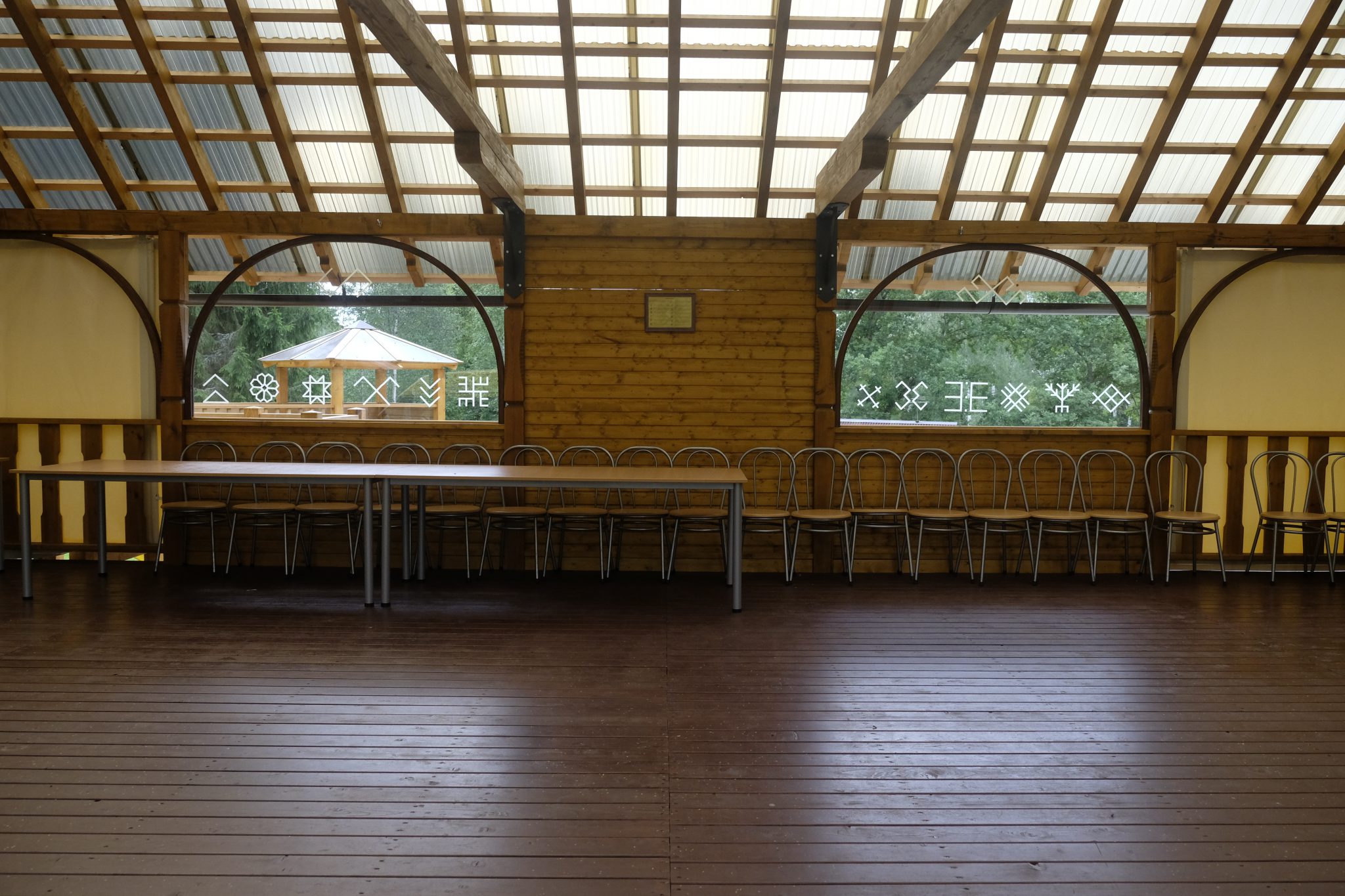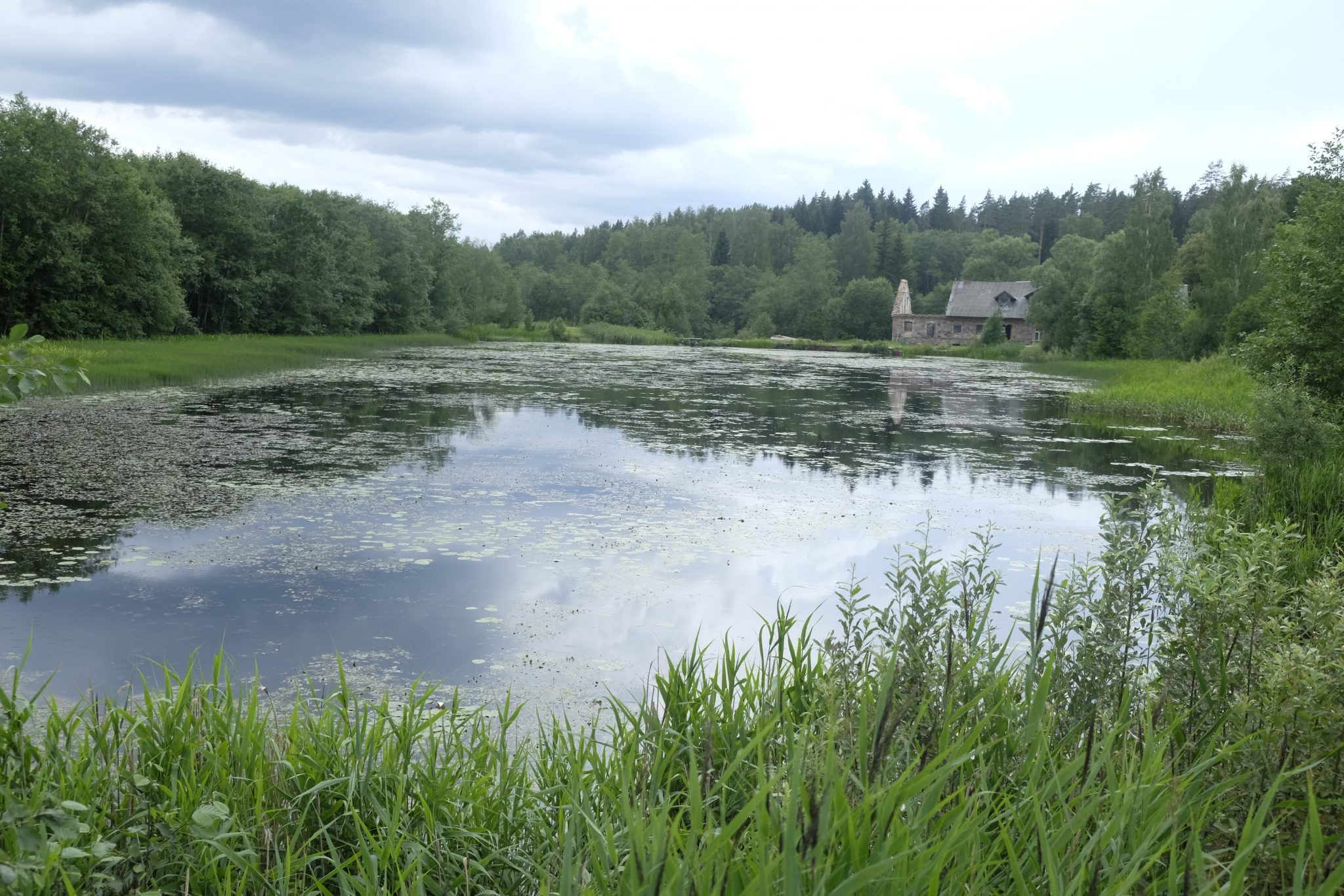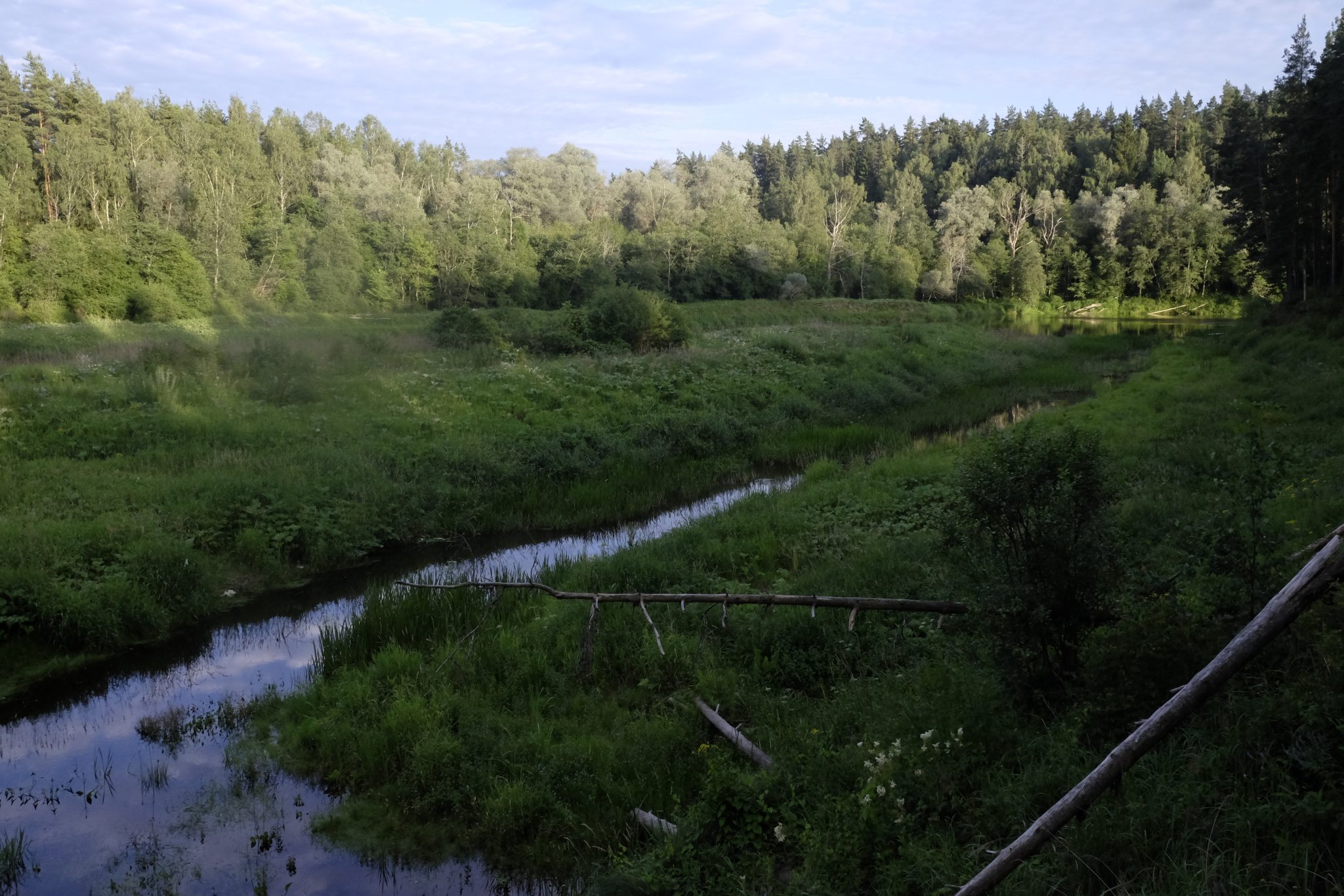 Ap astoņiem vakarā pamanu ceļmalā kempingu laivotājiem. Neviena laivotāja gan tur nav, toties ir trīs nojumes, galdi, krēsli, ugunskura vietas – viss svaigs, izskatās nesen tapis. Urrā! Noskatu tālāko nojumi, salaužu zaru slotu un izmēžu dēļu grīdu. Tad turpat uzceļu telti – tagad var mierīgi līt. Tomēr līt joprojām neviens netaisās un es mierīgi savācu pa pakšiem vakariņas – aveņu grāpi, saplūcu parastās un zaķskābenes, savācu tēju. Nometnes malā auga arī trīs saulsardzenes, bet izskatās, ka tās man nocēla viens vietēja rakstura apšaubāms subjekts, kuru manīju aizbraucam uz velo. Varbūt labi, ka tā. Ar tām saulsardzenēm neko nevar zināt.