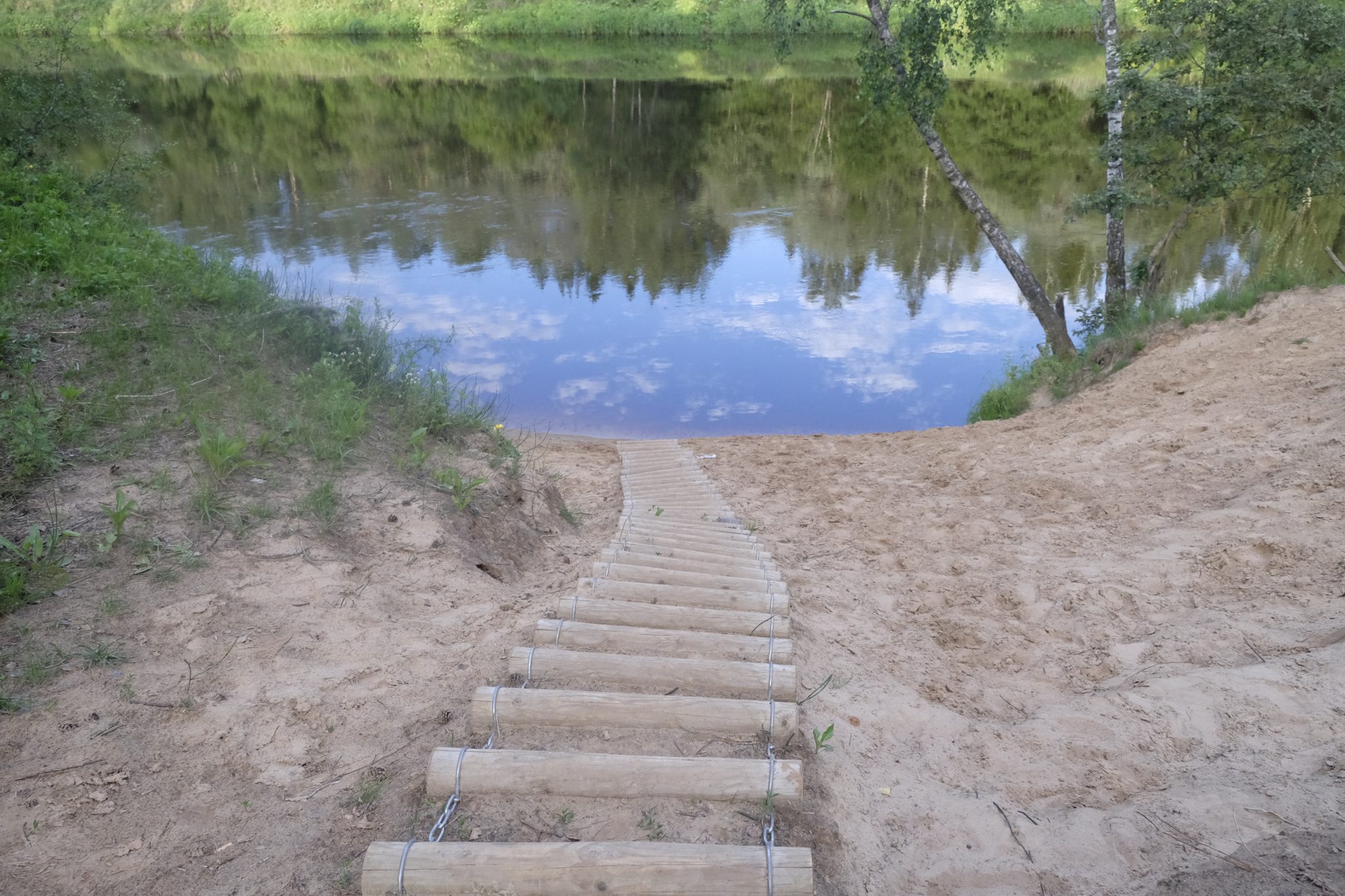 Aši sprūku laukā un dodos nomazgāties uz oficiālo peldvietu otrā nometnes galā. ceļā savācu koku, ar ko naktī atsisties no uzbrūkošiem bebriem un lienu teltī iekšā. Neesmu paņēmusi līdzi paklājiņu, tāpēc gulēšana uz plikiem dēļiem nav diez ko ērta. Bet tas būtu štrunts, salīdzinoši ar nakts skaņām. Brīdī, kad gar manu nojumes koku noskrapst dzīvnieka nagi, cenšoties tikt augšā, nobļauju skaļu “škic”, cerot, ka tas līdzēs kā kaķiem, tā citiem interesantiem. Izskatās, ka nostrādāja. Nakts realitāte maz atbilst dienas romantiskajām pārdomām par burvīgu nakti teltī, upes krastā, kur ūdens čalas savijas ar sienāžu čirkstināšanu un vēlīnām putnu šūpuļdziesmām.