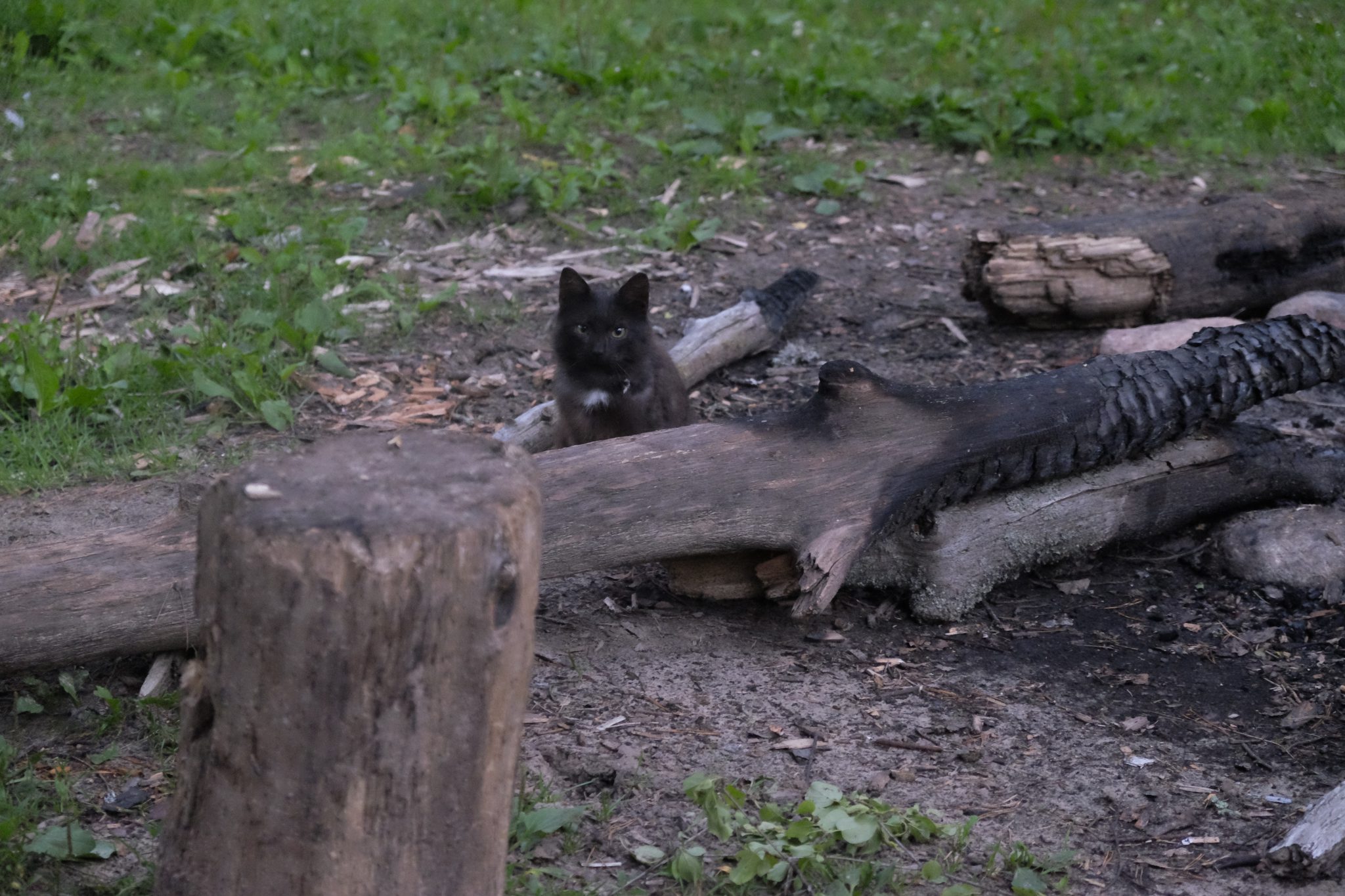 Es atkal dodos pa taciņu lejup pie upes, lai nomazgātu ģīmi un rokas pirms miega. Aizbrienu līdz krūmu malai, bet ūdens līmenis ir tālu lejā. Tai brīdī krūmos blakus kaut kas sakustas. Nu laikam kaķītis, kas pirms brīža bija atnācis inspicēt teritoriju. Tad “kaķītis” izgrūž kaut ko starp šņācienu un rūcienu. Ok, atkal kāds no “jenotiem”. Visticamāk, bebrs vai ūdrs, spriežot pēc netālajiem cietokšņiem.