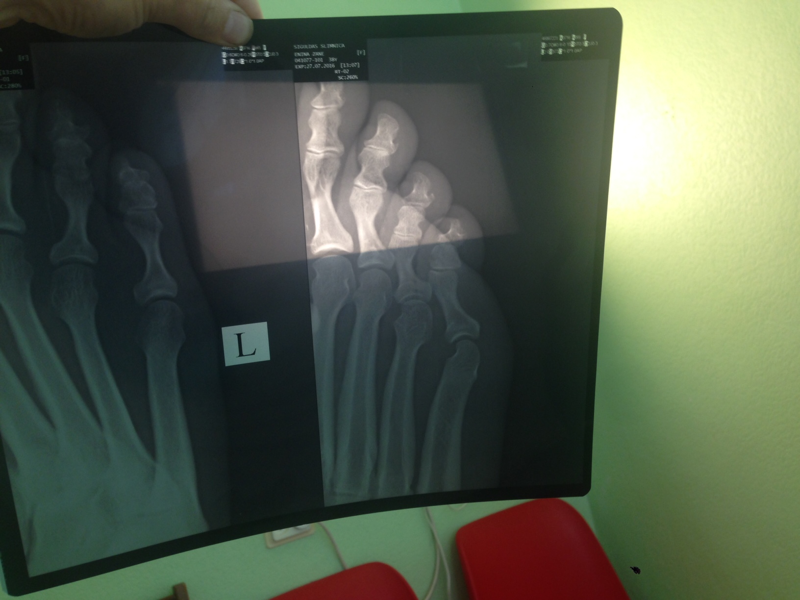 No rīta mazais pirkstiņš izskatās kā melleņu draudziņš, neganti sāp un visādi citādi signalizē, ka būs salūzis. To apstiprina arī rentgens un daktere, kura izsaka cerību, ka dīvānam gan viss kārtībā.