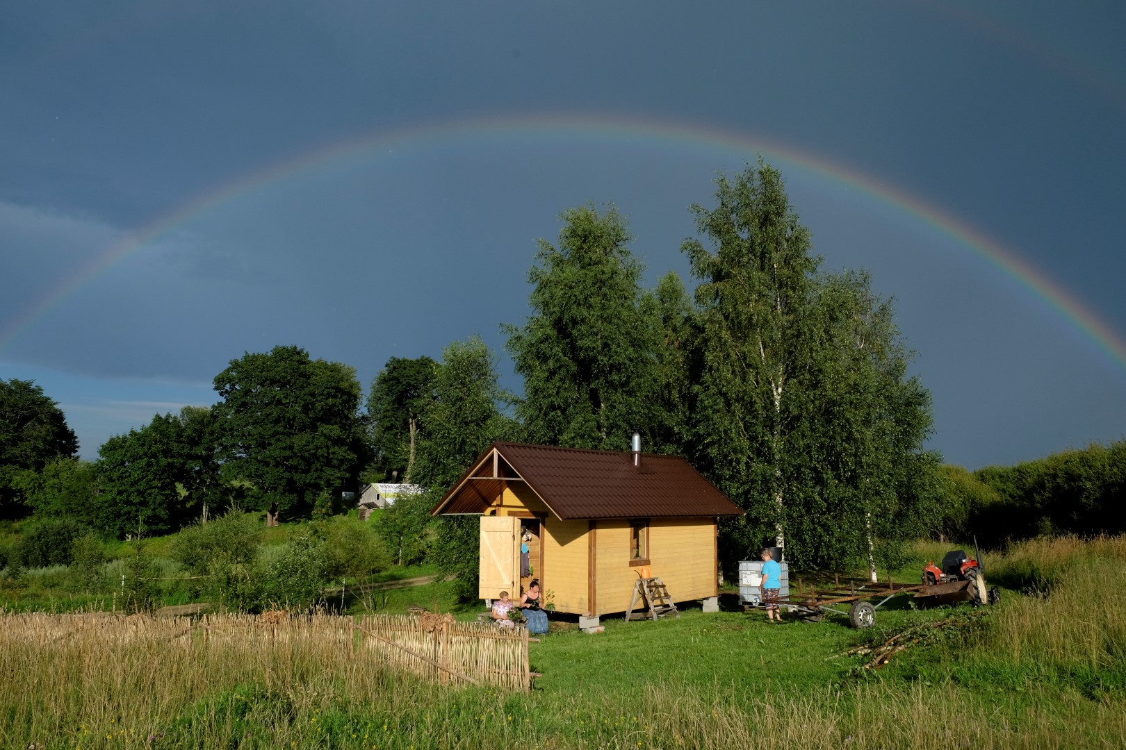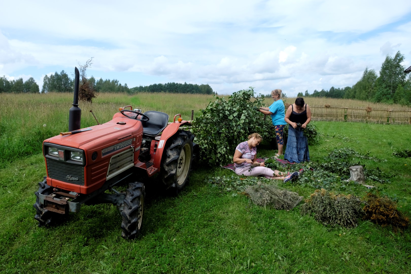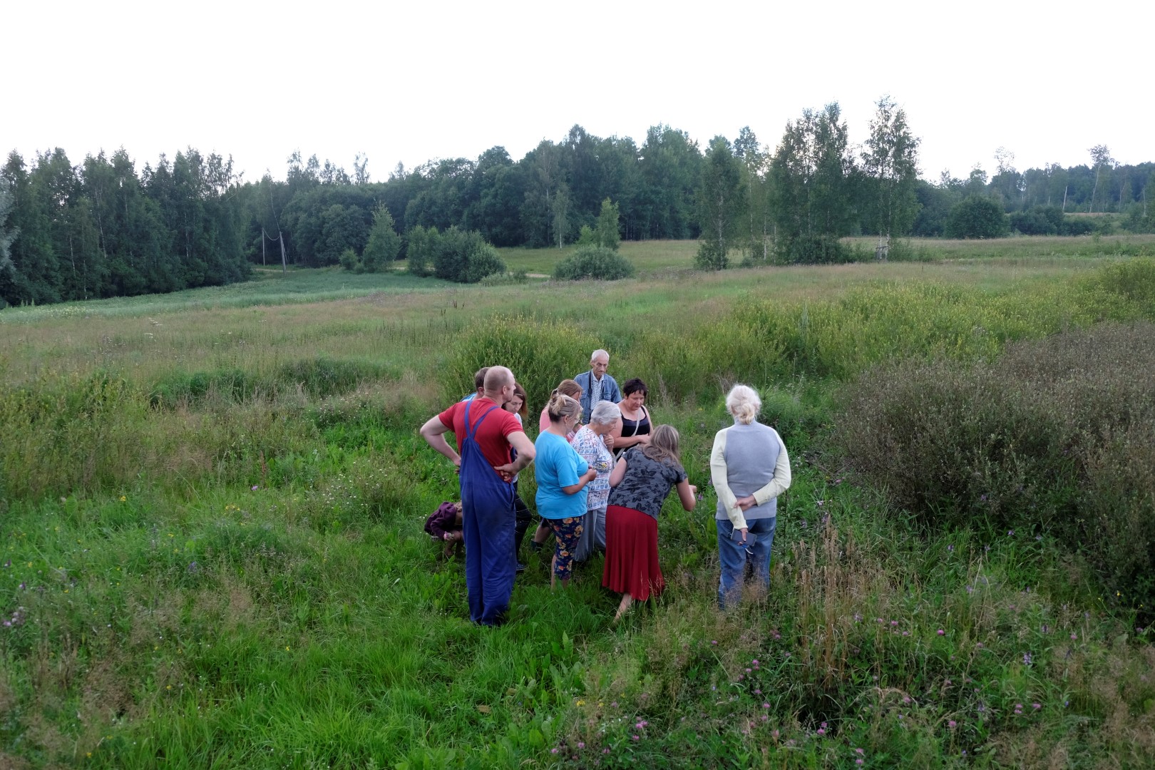 Otrais lietus vilnis nāk tieši laikā, lai visus aizdzītu pusdienās – zupa gatava! Sarūmējamies zem jumta un metas virsū ēdienam tā, it kā strādājuši būtu. Drīz vien vēderi pilni un drusku slinkums piezogas. Lai to izdzenātu, ļaudis velk kājās gumijniekus un ir gatavi doties pļavas ekspotīcijā.