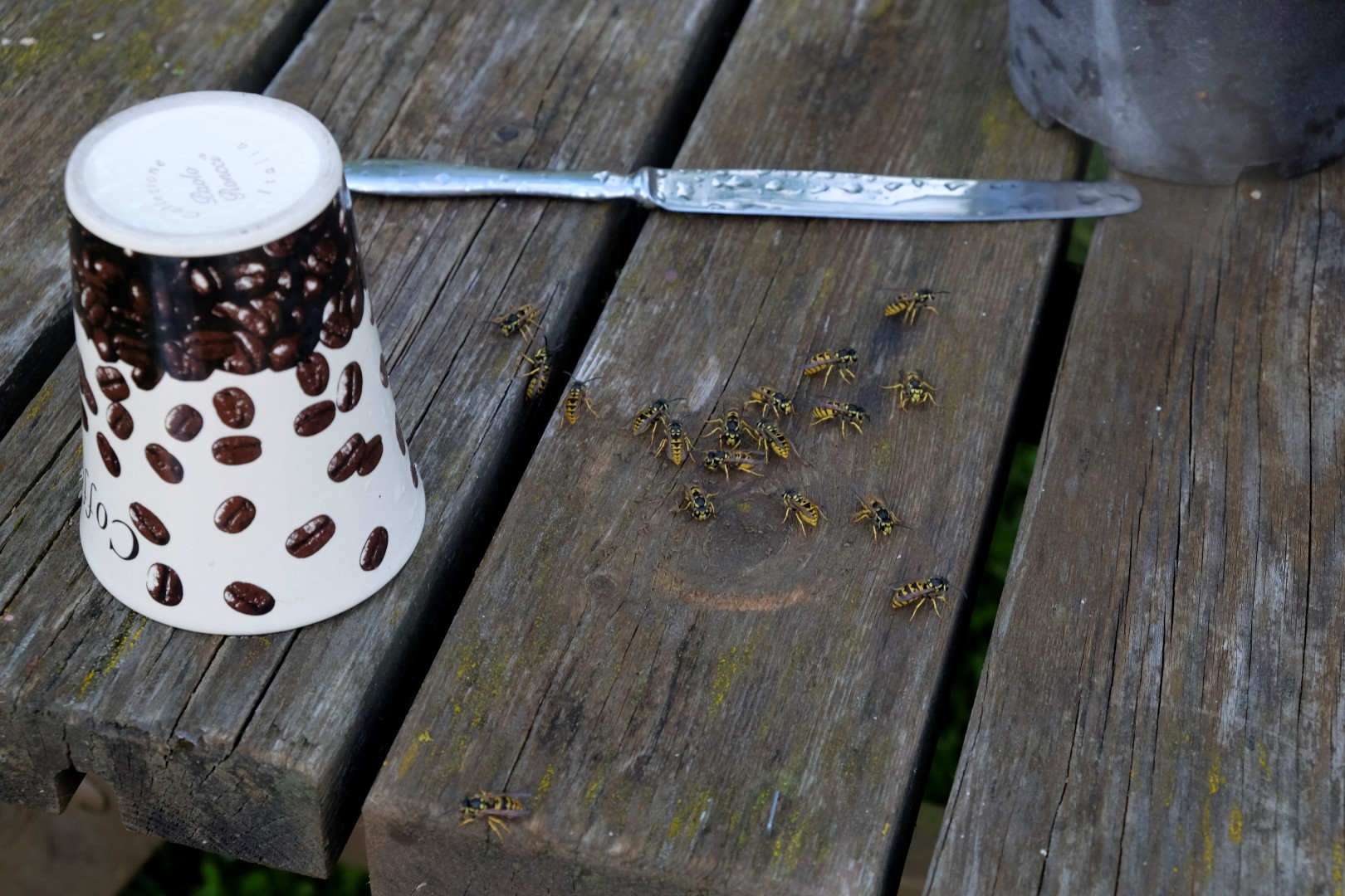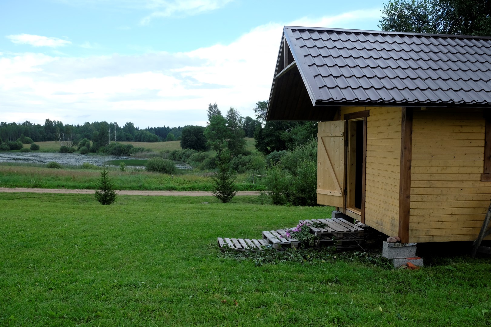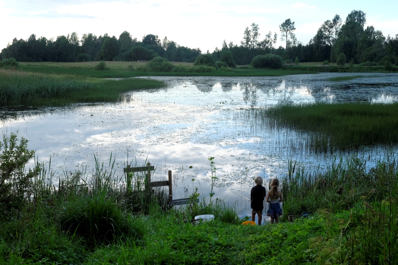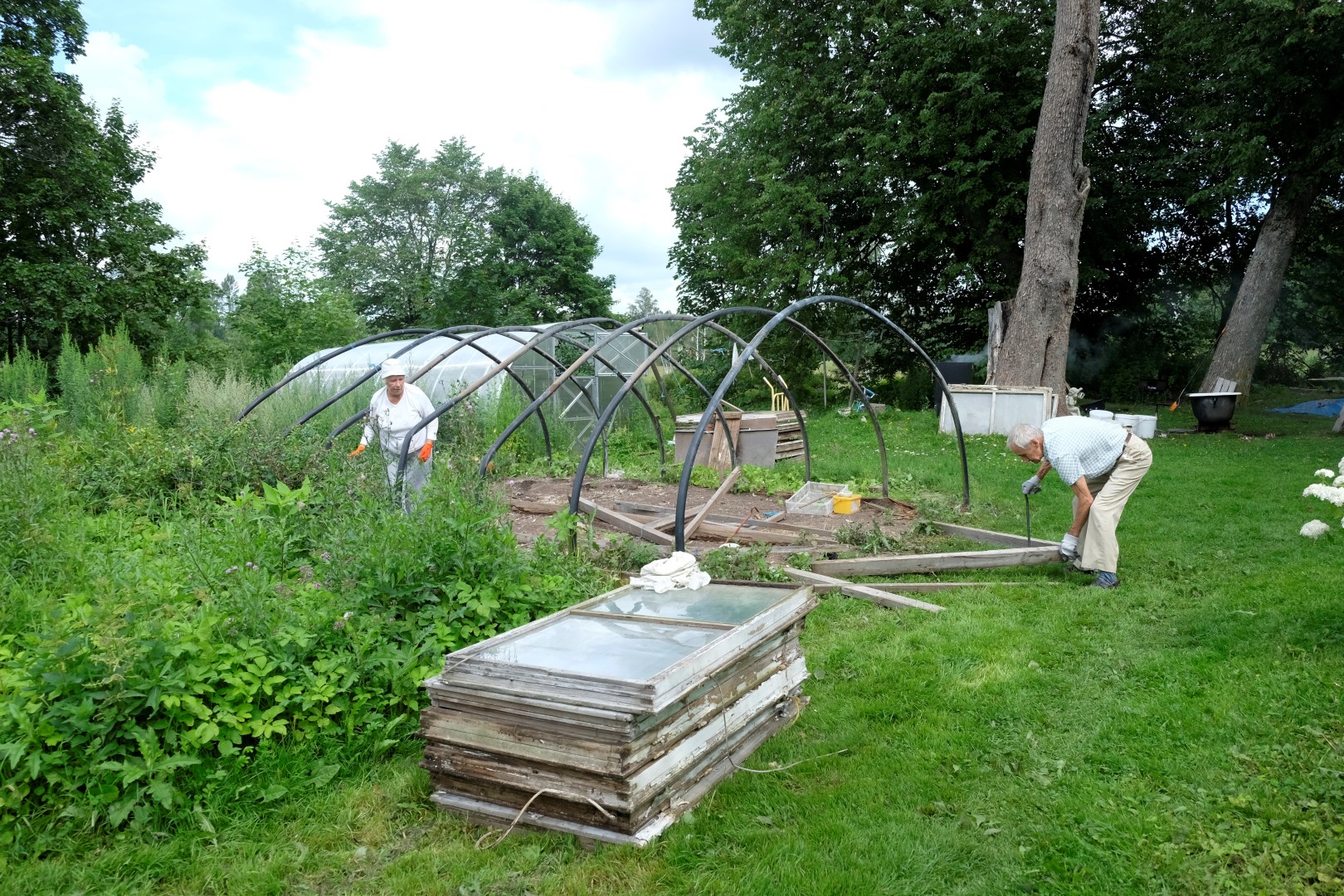 Otrais lietus vilnis nāk tieši laikā, lai visus aizdzītu pusdienās – zupa gatava! Sarūmējamies zem jumta un metas virsū ēdienam tā, it kā strādājuši būtu. Drīz vien vēderi pilni un drusku slinkums piezogas. Lai to izdzenātu, ļaudis velk kājās gumijniekus un ir gatavi doties pļavas ekspotīcijā.