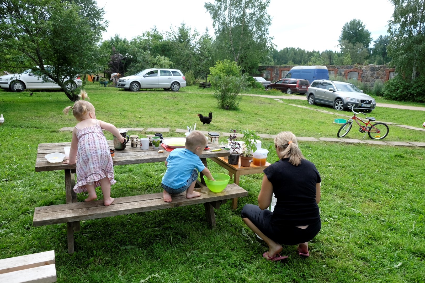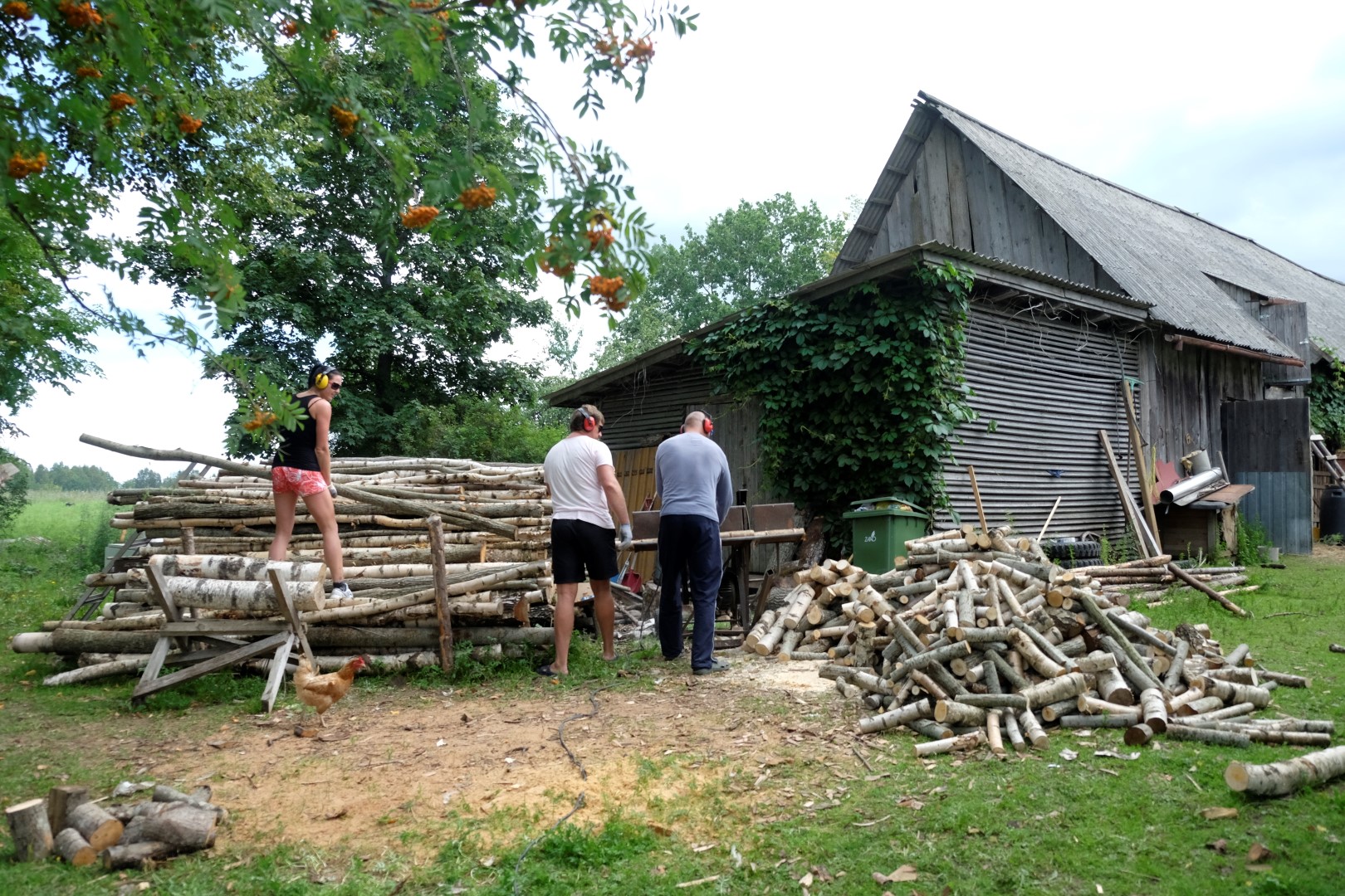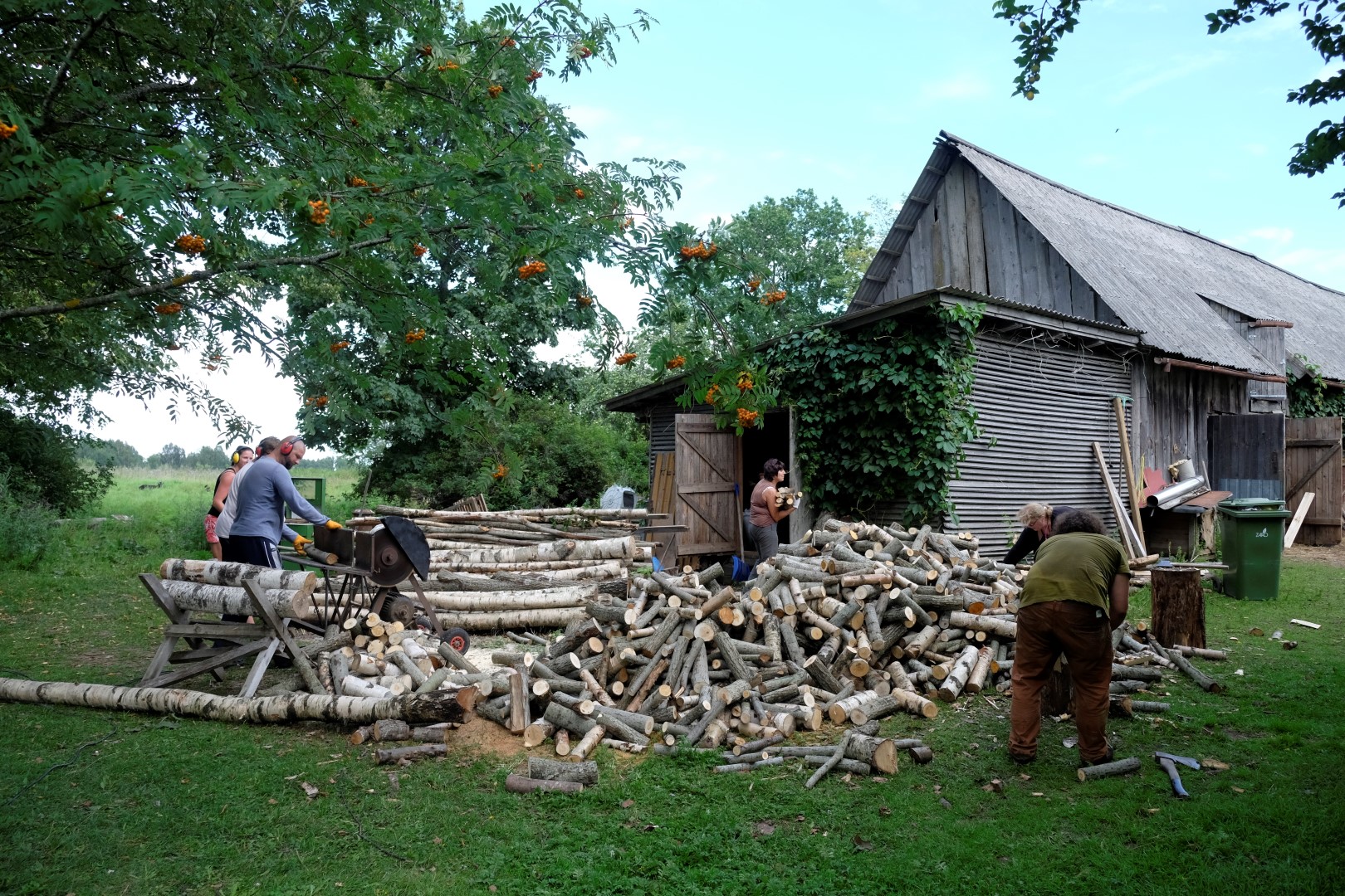 Sestdienas rītā Mindaugās mūs sagaida saimnieki, otrās brokastis un lapsenes. Daži jau ķērušies zāģim pie ragiem, citi vēl iepazīstas ar apkaimi un talkotājiem. Drusku iekožam un metamies darbos. Jāņa pirts draudzenes omulīga traktora ēnā sien pirts slotas, Inese metusies cīņā ar zālēm un nezālēm, vīri klīst kā pazemes dārgumu meklētāji ar trimeriem starp ogulāju rindām, lai mums, strazdiem, būtu vieglāk nolasīt ražu. Vecāki demolē siltumnīcu, cita brigāde pārvērš garos koku mietus malkas pagalēs. Un, protams, pagalma vidū rosās ēst gatavotāji, kuru lomu nekad nedrīkst novērtēt par zemu.