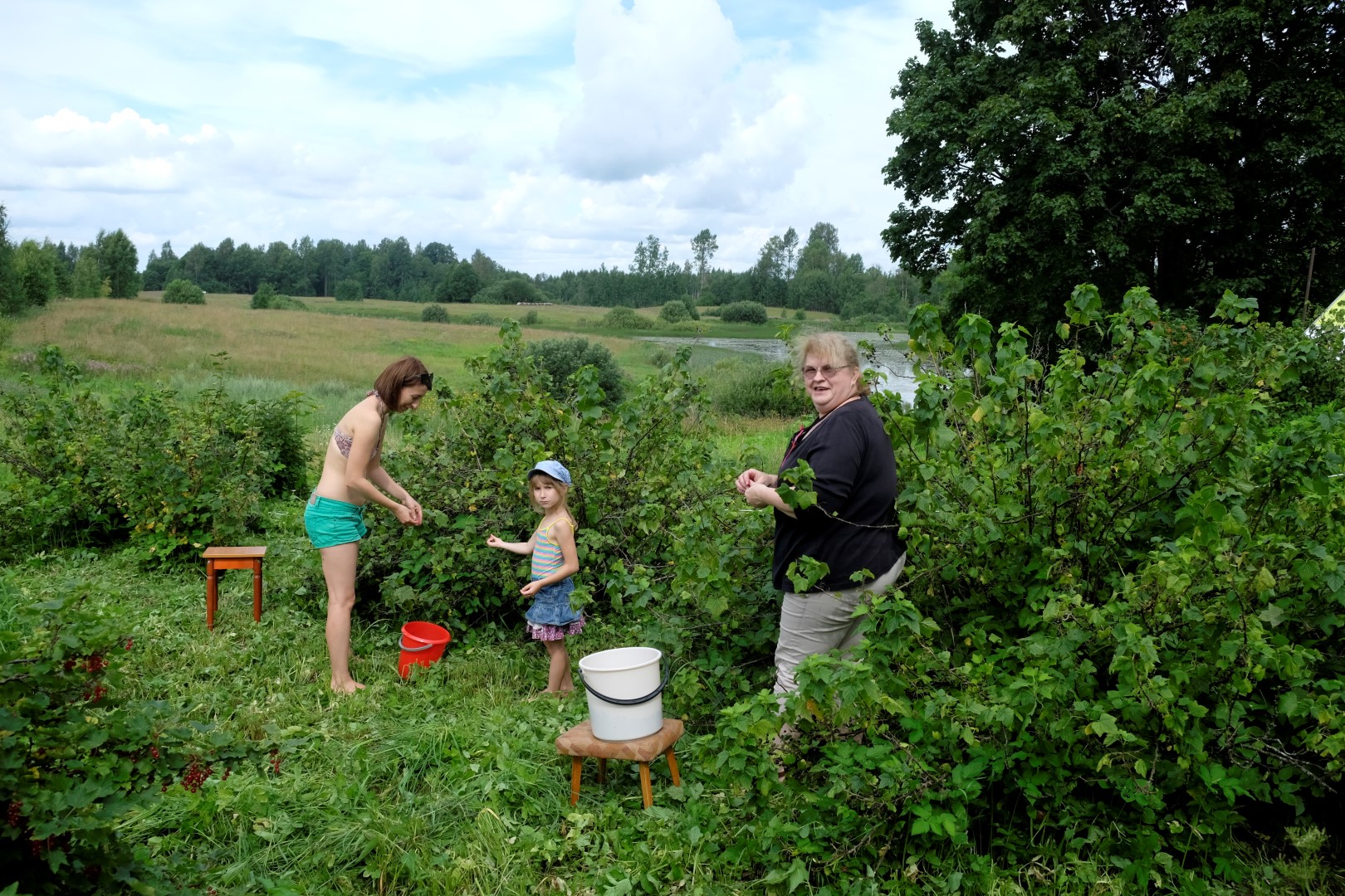 Pie upeņu krūma iepazīstos ar Agnesi. Viņa, izlasot par talku, sakūdījusi savu ģimeni un draudzeni braukt uz šejieni. Iesākumā domājusi – nez kā tas būs, braukt pie svešiem cilvēkiem. Tad atklājies, ka vīrs un draudzene pazīst Jāni caur pirts jomu, bet draudzene pazīst mani caur brāļa ģimeni – kārtējais mazās Latvijas piemērs. Tā nu izrādījies, ka tomēr brauc pie paziņām.