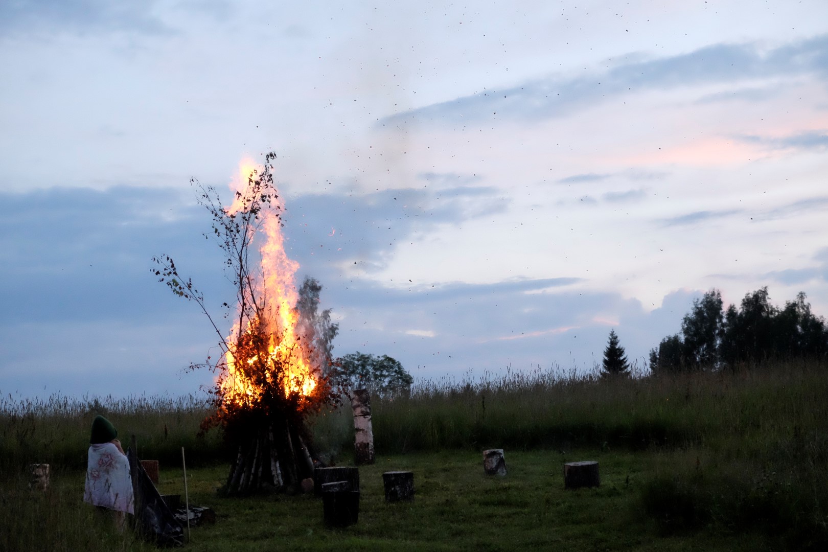 Pēc garum garas pirts būšanas – sildīšanās, skrubēšanas un pēršanas, atguļos āra “gultā”, kur viens dvielis apakšā, viens ap kājām, vesela kaudze pa virsu un slota pagalvī. Vēl pavisam nesen šeit bija varavīksne, tagad jau zvaigžņu un sienāžu kosmoss. Nakts un pirts smarža. Lēnam dziest ugunskurs. Noguris suns uz sliekšņa.