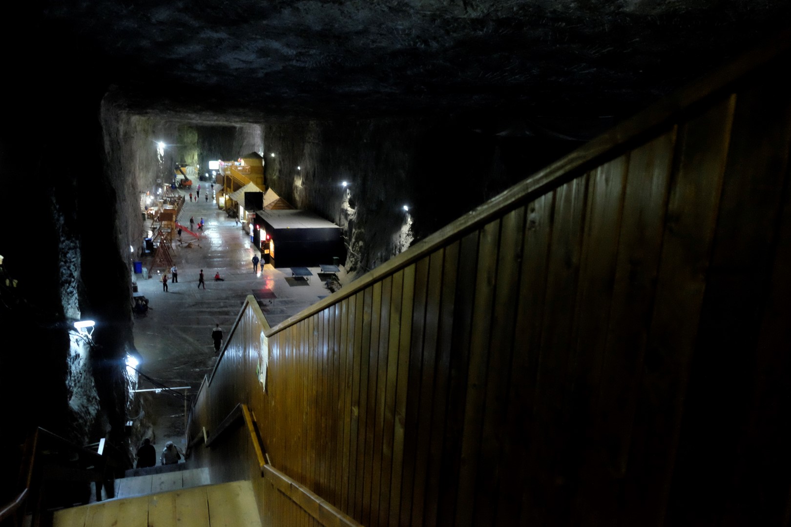 Ap pusdienas laiku iestūrēju pilsētā Praid, kurā rēgojas norādes par sāls raktuvēm. Sākumā iegriežu pie pirmajām norādēm, kur veikli zeļļi grib 7 lejas par stāvvietu un rāda uz ēkām tālumā, ka tur varot apskatīt raktuves. Kaut kas man tomēr nešķiet tīrs un es braucu tālāk. Jau pēc dažsimts metriem mašīnu var bez maksas atstāt ceļmalā (starp citu, pagaidām par stāvēšanu Rumānijā neesmu maksājusi ne leju) un turpat blakus ir oficiālais tūrisma centrs un biļešu iegāde. Visi tūristi tiek sasēdināti satiksmes autobusā un pa šauru tuneli ievesti raktuvju valstībā. Nudien nezinu, ko es būtu redzējusi, ja būtu gājusi uz iepriekš norādīto virzienu, kas bija citur. Bet varbūt arī tur būtu bijis kas interesants.