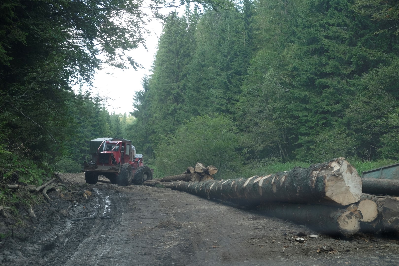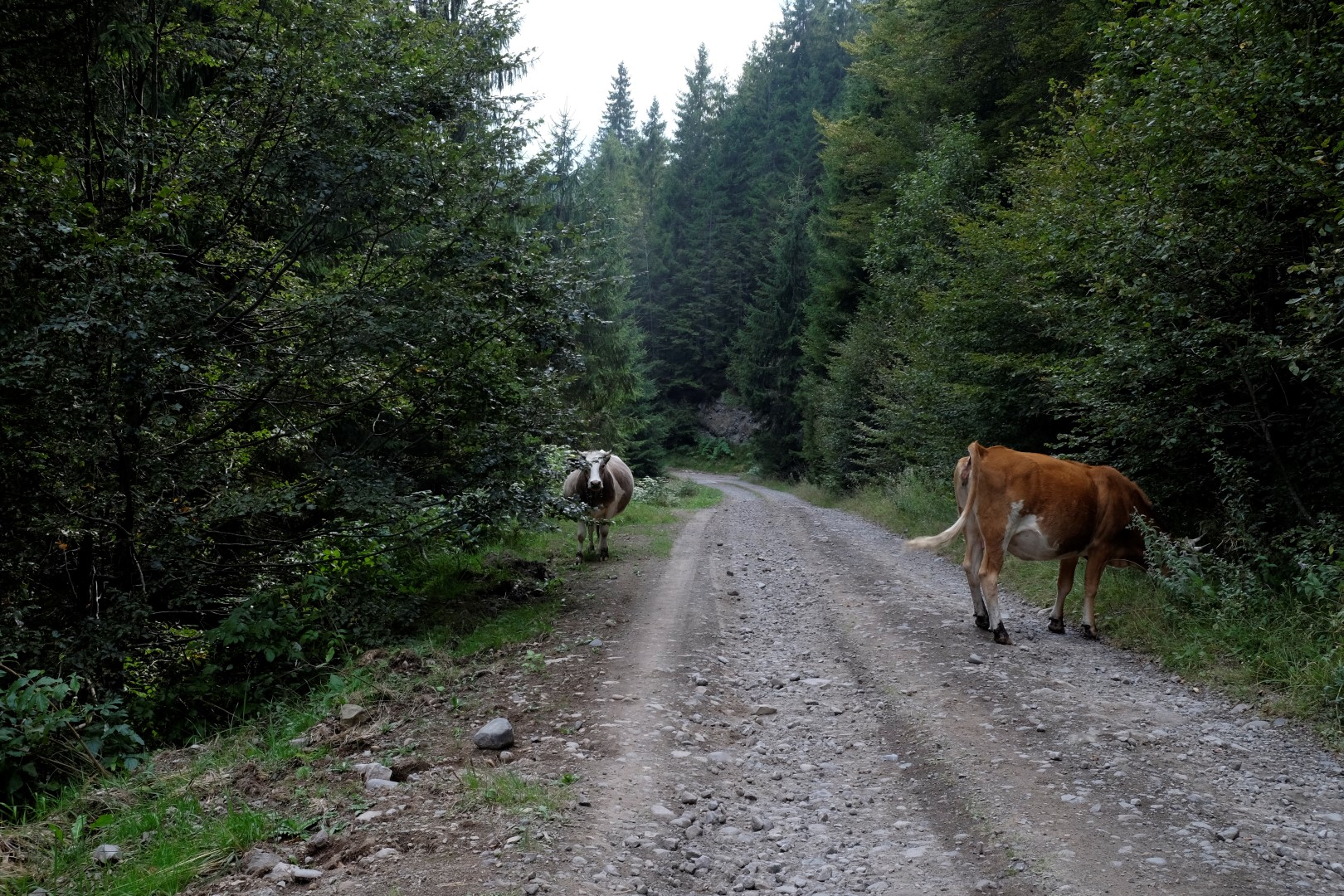 Man vairāki cilvēki bija ieteikuši, ka Lacu Rosu ir viena skaista vieta pa ceļam, tāpēc uzlieku navigāciju uz to. Waze mani vedina griezties pa kreisi kādā visai necilā ceļā – kāpēc ne. Braucu pa bedraino un stāvo ceļu, apdzenu aitu baru un lēnu vietējo, līdz nonāku krustcelēs ar trim ceļiem. Norādes nevienas, arī navigācija skatās gaisā, izliekas par beigtu un svilpo pie sevis. Izvēlos manā skatījumā lielāko no ceļiem, vidējo, un turpinu braukt. Tas kļūst aizvien draņķīgāks un pēc pāris kilometriem Dacīte sāk protestēt – nevar uzrāpties uz betona plāksnes, kas kalpo tilta vietā. Labi, pietiks, griežu riņķī. Tikusi atpakaļ krustcelēs, novērtēju, ka arī ceļš pa labi ir diezgan brašs un sāku braukt pa to. Pēc brīža arī tas kļūst sliktāks, bet ne tik slikts, lai nevarētu izbraukt. Lavierēju caur akmeņiem, dubļiem un risām, kaut kā uz priekšu tieku. Ceļš ir diezgan izbraukāts, tāpēc spriežu, ka gan jau kaut kur tas aizved. Kad pēc kilometriem pieciem satieku divas govis, tas šķiet kā lielisks apliecinājums manai teorijai. Tomēr vēl pēc pieciem kilometriem parādās ceļmalā sakrauti baļķi, kas man nepavisam nepatīk, jo tagad sāk šķist, ka ceļu izbraukājusi meža tehnika. Kad aiz kāda līkuma manā priekšā stāv traktors, kas aizšķērsojis ceļu, un slejas mežstrādnieku būdiņas, saprotu, ka diemžēl otrā teorija ir apstiprinājusies. Cenšos apgriezties dubļu un skaidu pilnā vietā un mierinos ar domu par traktora klātbūtni – būs, kas izvelk. Pie sevis ķiķinu – ja īres kompānijas pārstāvji mani tagad redzētu, droši vien nekavējoties iekļautu kādā melnajā sarakstā.