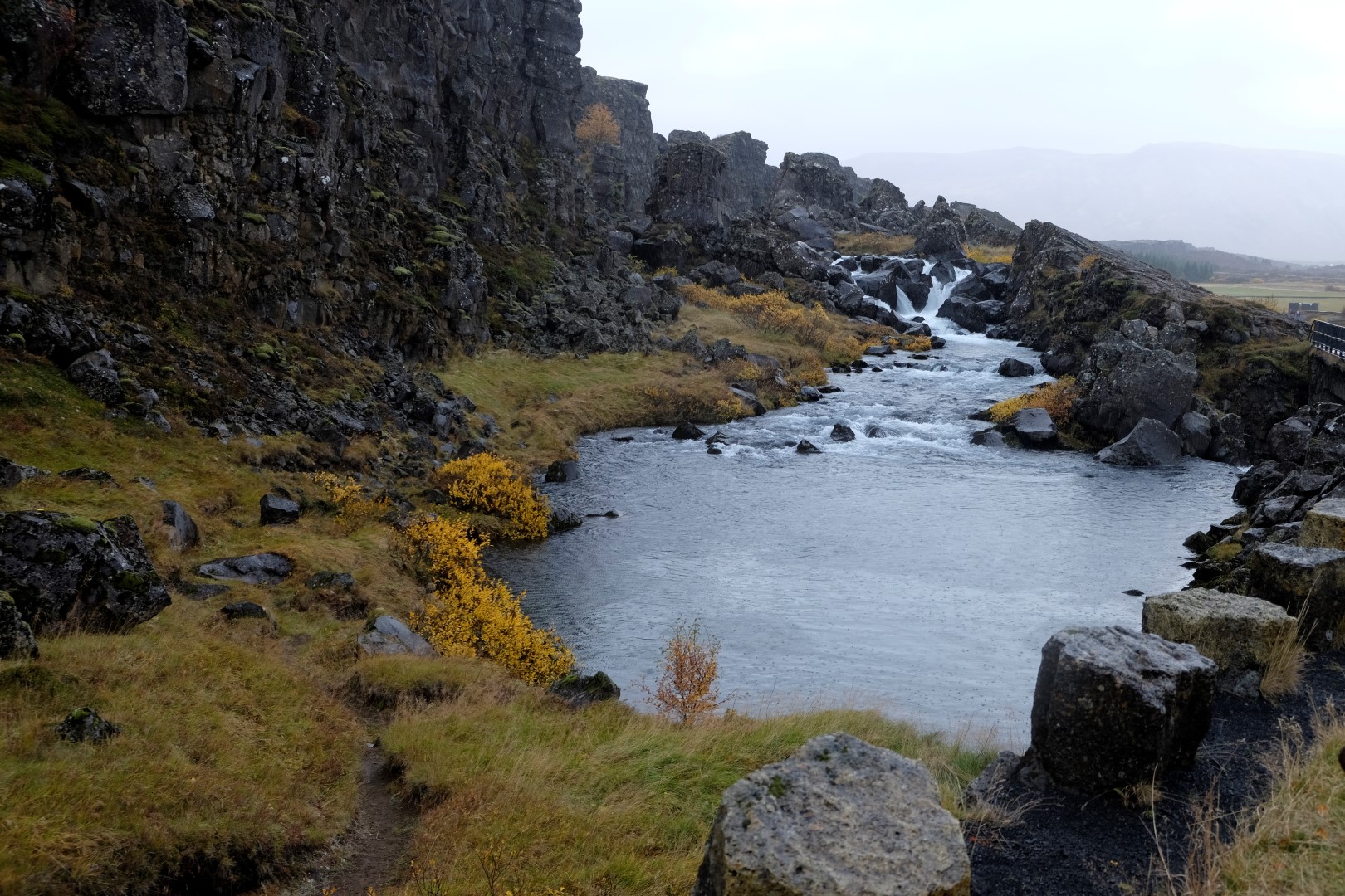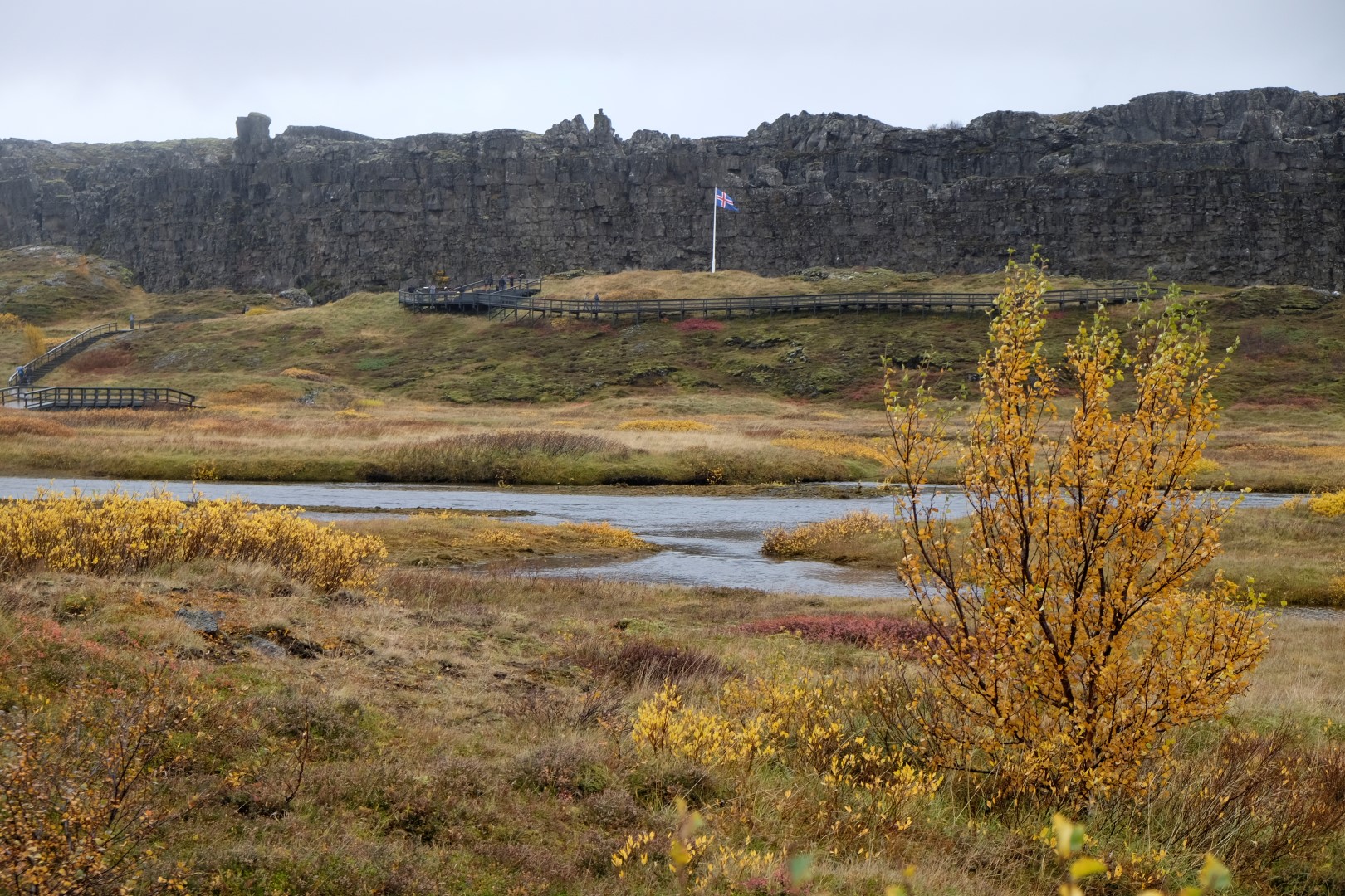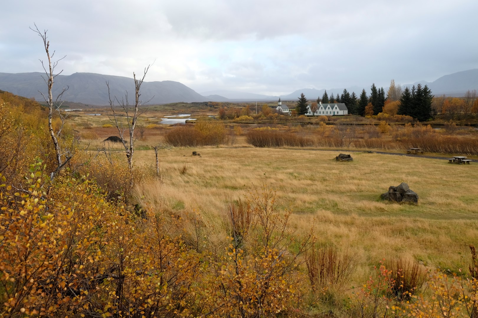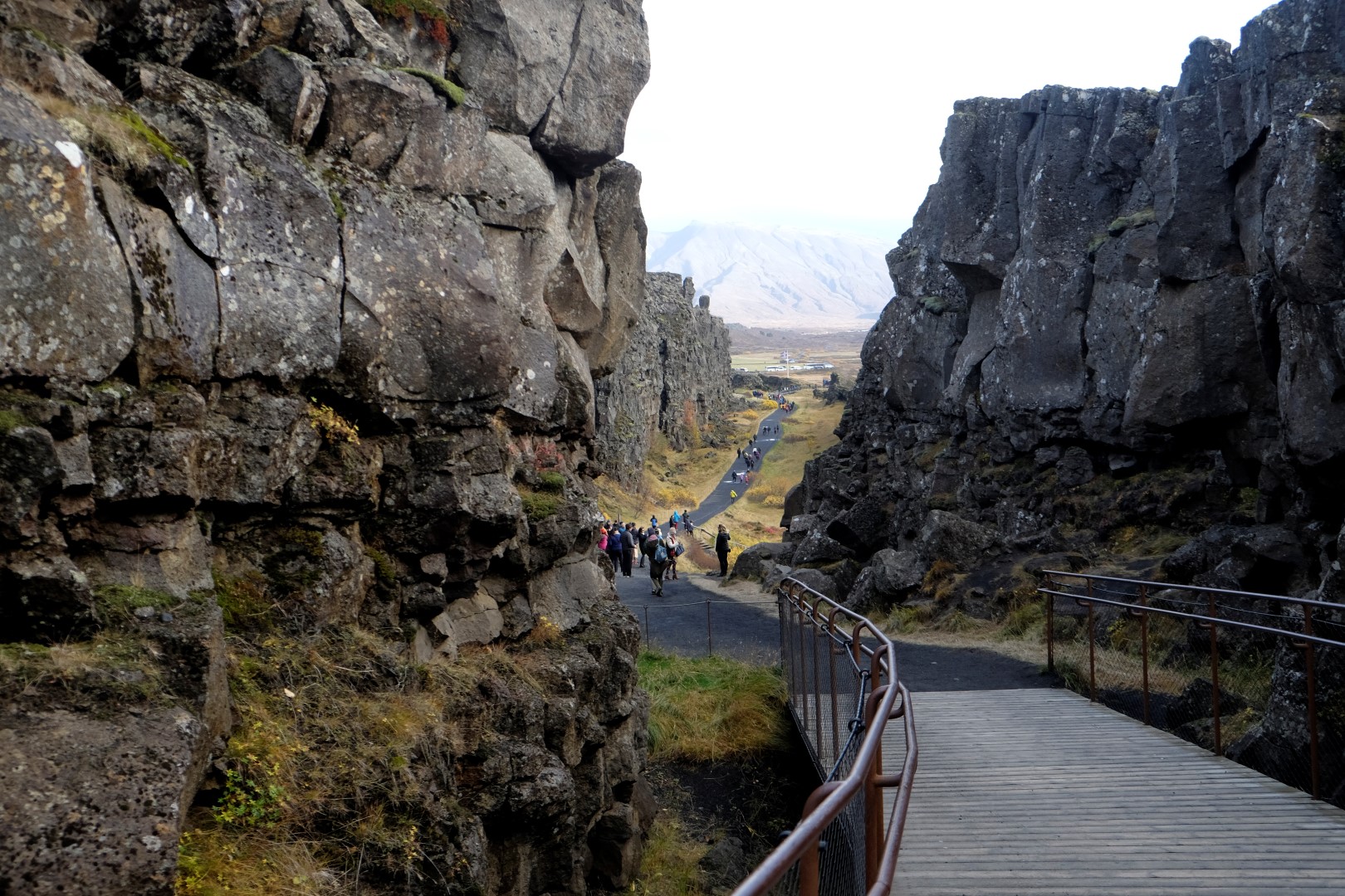 Iemūžinājuši “draudzību”, atvadāmies un dodamies uz netālo objektu, kas slavens gan ar tektoniskajām plātnēm, gan ar to, ka šeit dzimusi Islandes valsts. Uz paskaidrojoša plakāta rakstīts, ka necilā mājiņu virkne ir Islandes premjera vasaras rezidence. Apvaicājamies garāmejošai darbiniecei, vai tad premjers arī uz šejieni braucot. “Dažreiz”, viņa atbild un noslēpumaini pasmaida. Izstaigājam apkaimi un stundas laikā tiekam pie spožas saules, lietus, varavīksnes, vienkārši apmākušās dienas – pieredzam dzīvē apgalvojumu, ka laiks Islandē var mainīties ik pēc mirkļa.