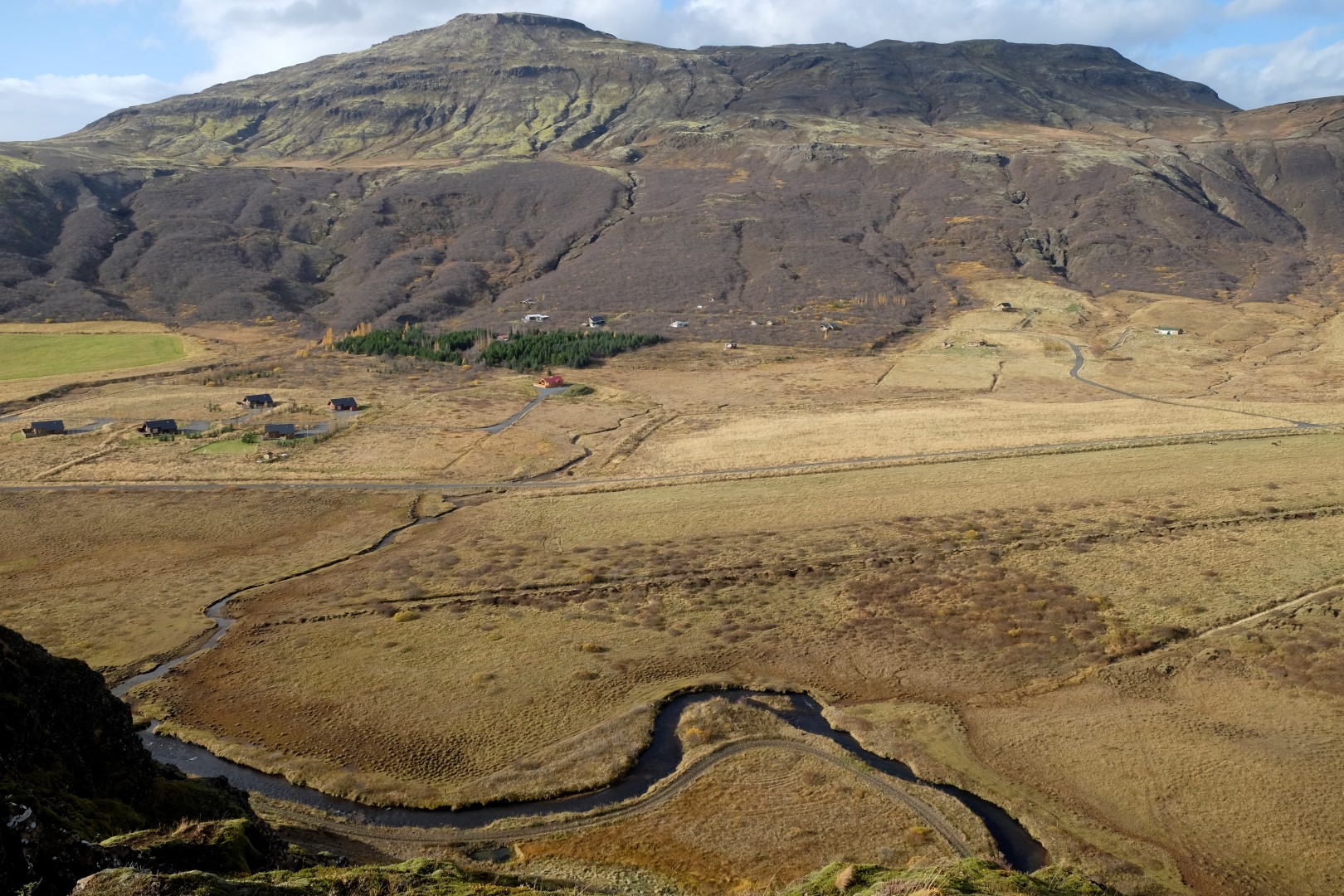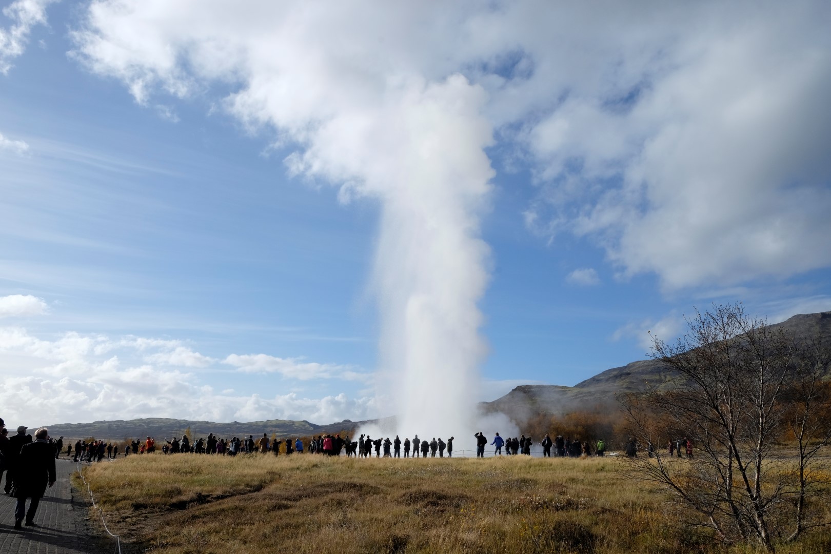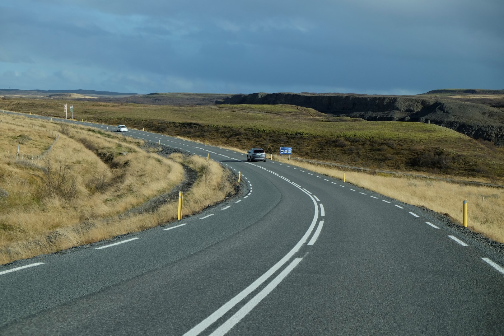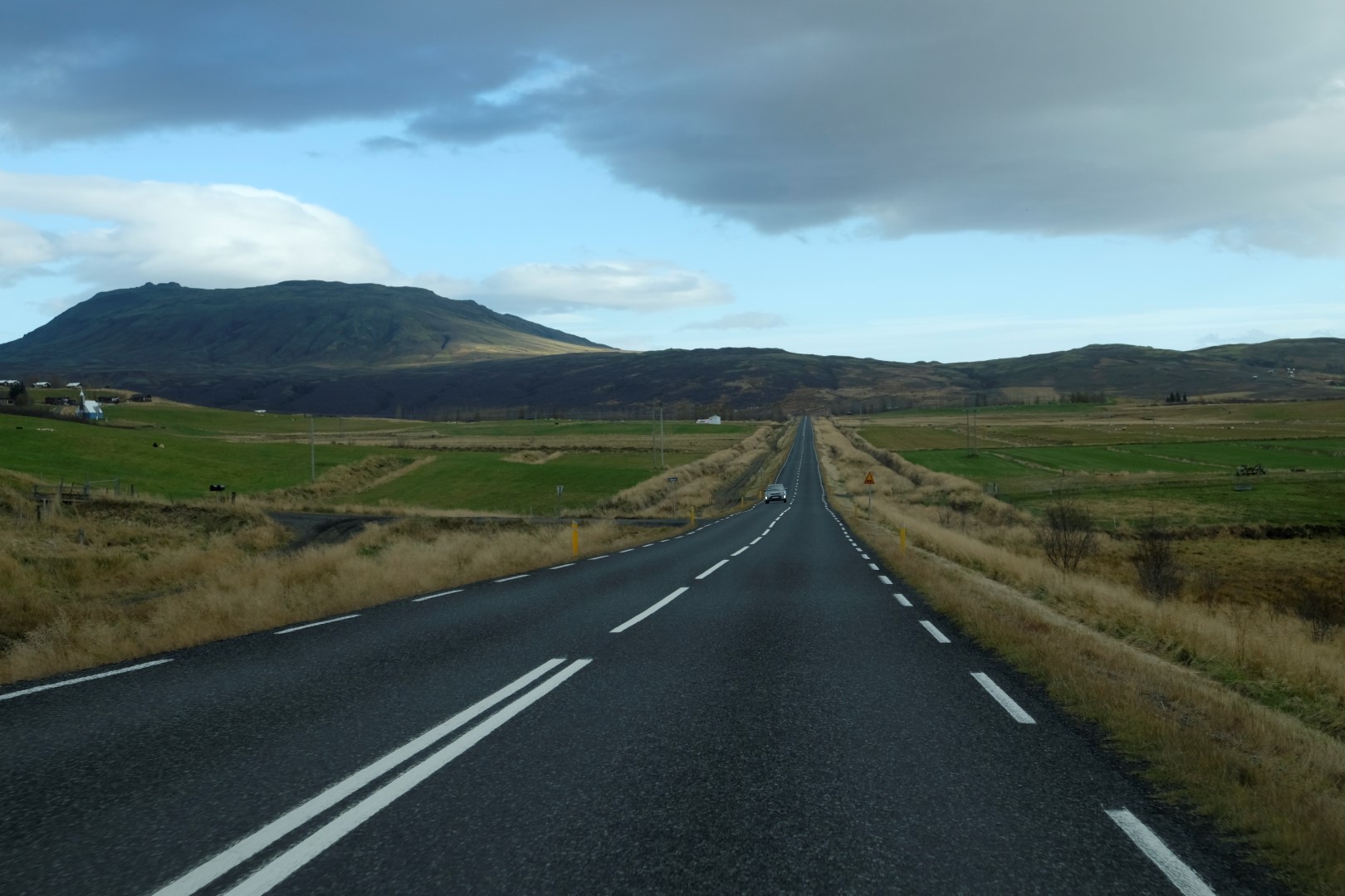 Tomēr tagad, kad ir aususi gaisma, ārā izskatās pavisam citādi. Ierāpjamies mašīnā un drīz vien jau stūrējam ārā no Reikjavikas pa saules apspīdētu asfaltu. Skatāmies uz visām pusēm lielām acīm – kalnu ainava rīta saulē ir pasakaina. Šodien izbrauksim “Zelta loku” – apļveida ceļu, kas ved netālu no Reikjavikas un kura malās apskatāmi vairāki ievērības cienīgi objekti.