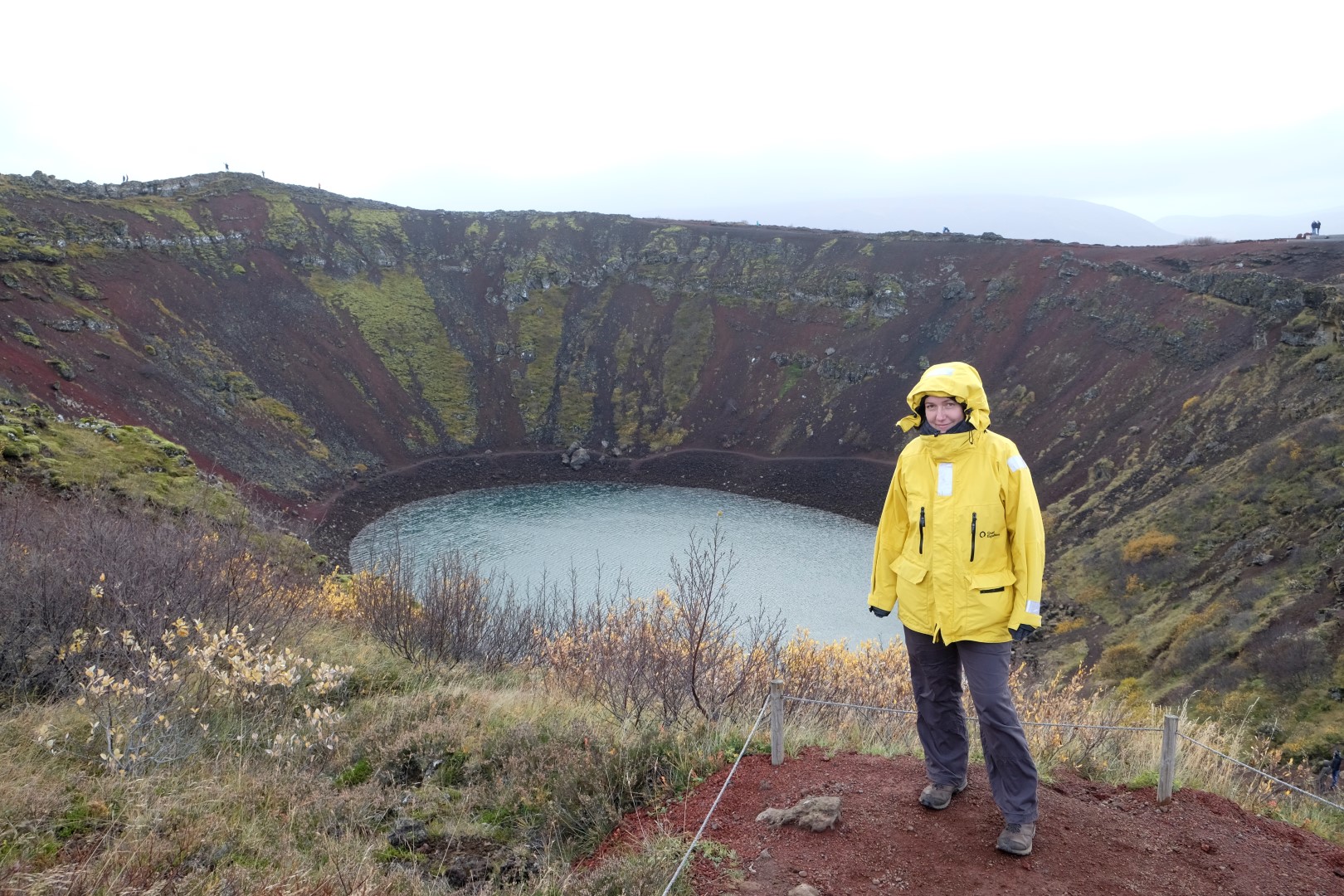 Pēdējais pieturas punkts ir Kerid vulkāna krāteris, kas šeit iemitinājies pirms nieka 6500 gadiem. Nu jau mēs esam tādā noguruma pakāpē, kad apmetam goda apli pa krātera augšu, bet lejā nokāpt spēka vairs nav. Pēc brīža jau traucamies atpakaļ caur miglas apņemtiem kalniem uz galvaspilsētu, kur paliksim vēl šonakt, bet jau rīt uzsāksim ceļu apkārt salai.