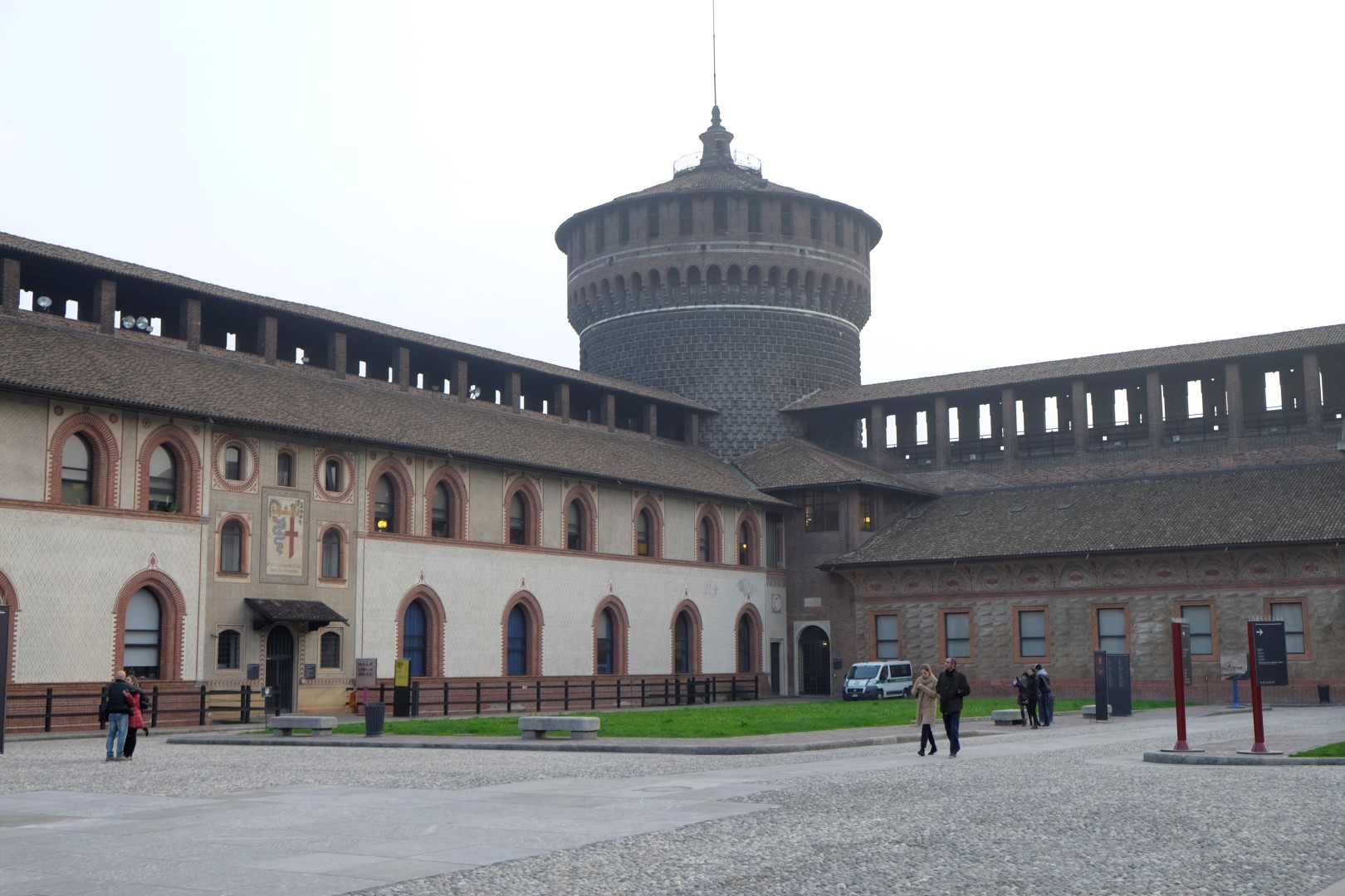 Pēc kārtīgām pusdienām izstaigājamies pa pils parku un aplūkojam arī pašu Sforzesco pili, tad gan laiks doties atpakaļ uz hosteli pēc somām. Pa ceļam vēl piestājam bodē un iepērkam proviantu vakariņām, lai gan īstas skaidrības, kur tās ieturēsim, mums nav. It kā ir sarunāta palikšana caur kaučsērfingu kaut kur starp Milānu un Bergamo, tomēr namatēva komunikācijas veids nepārliecina. No rīta esmu aizsūtījusi īsziņu par ierašanos vakarā, bet atbildes nav joprojām.