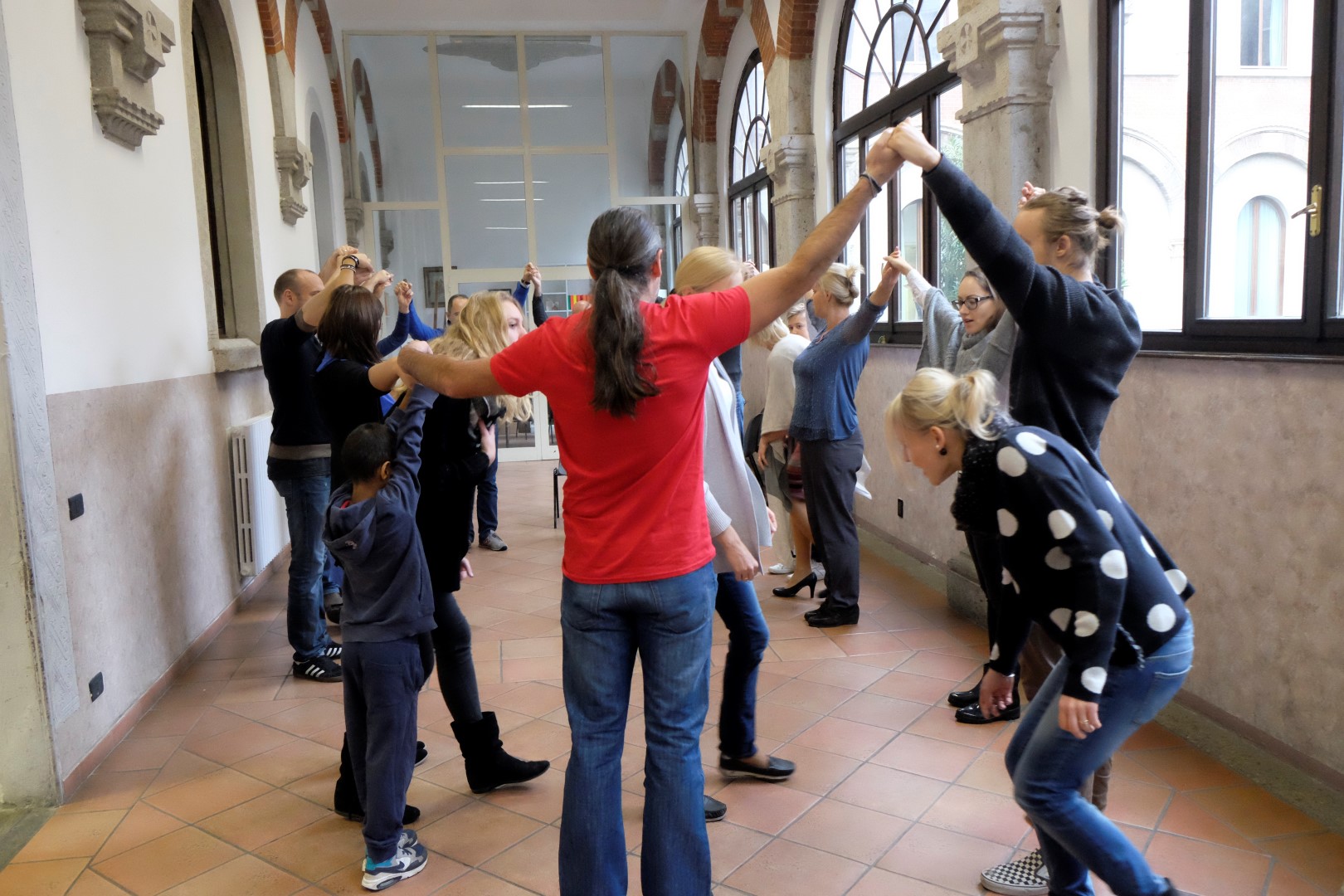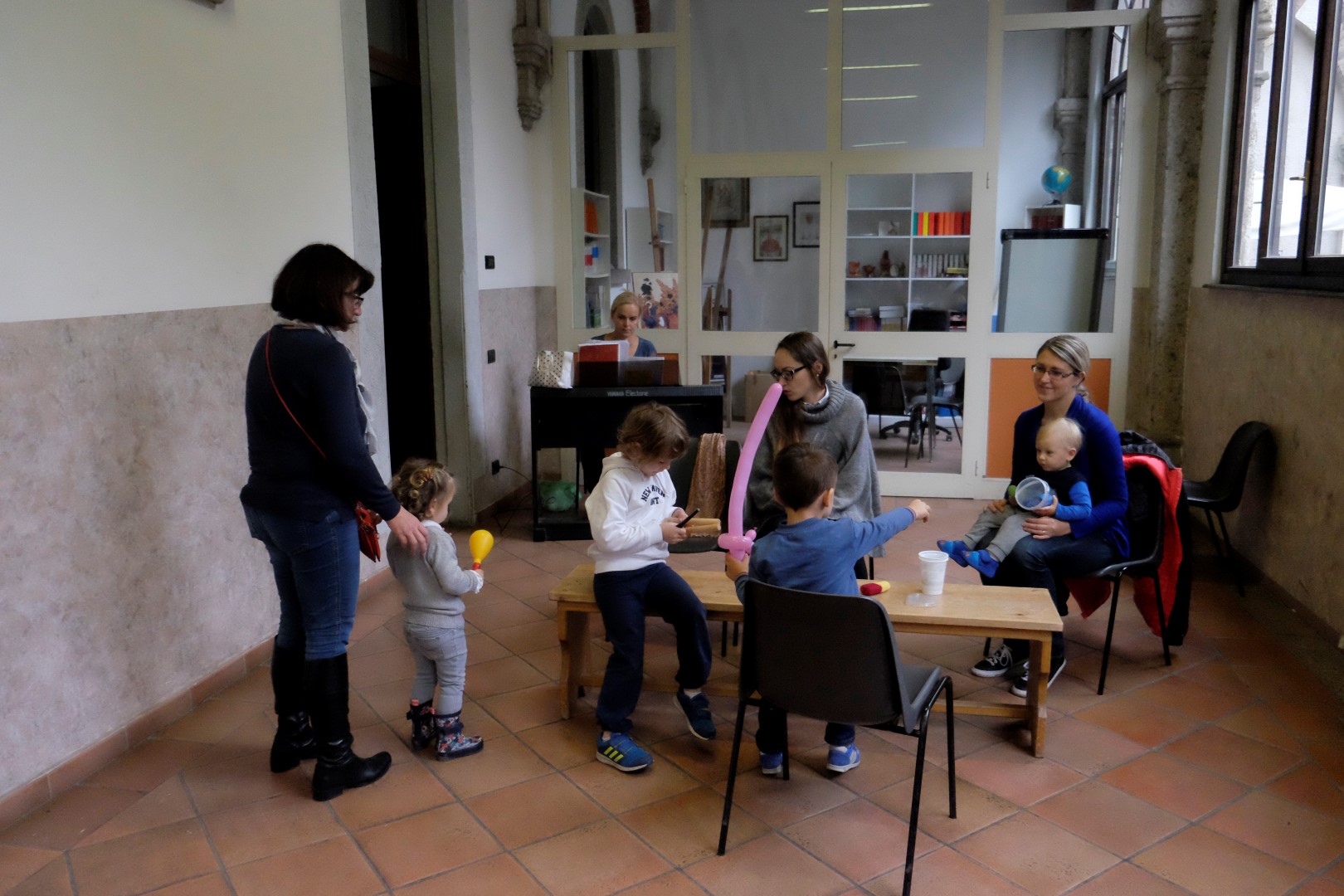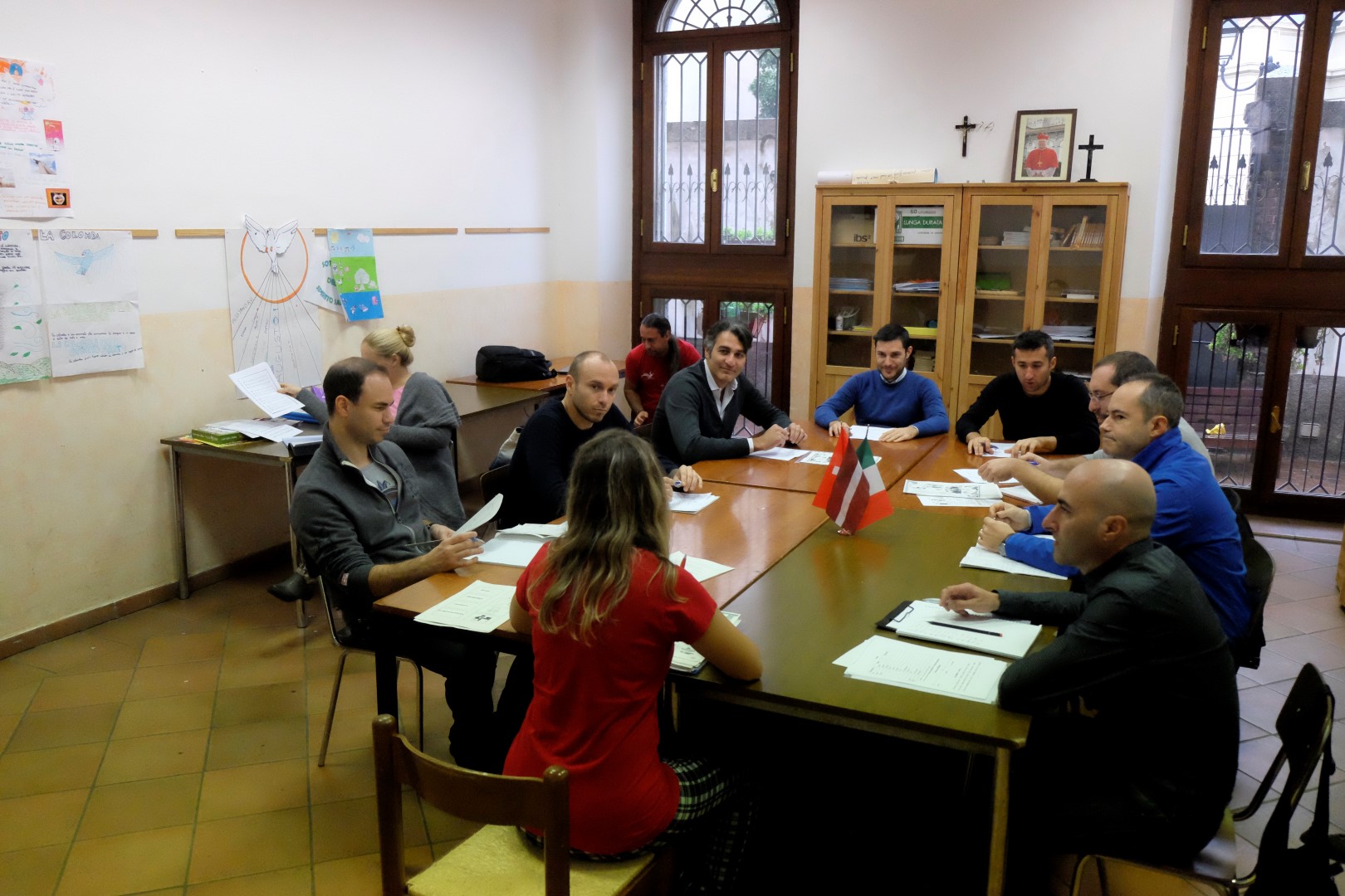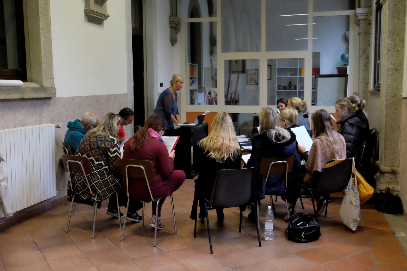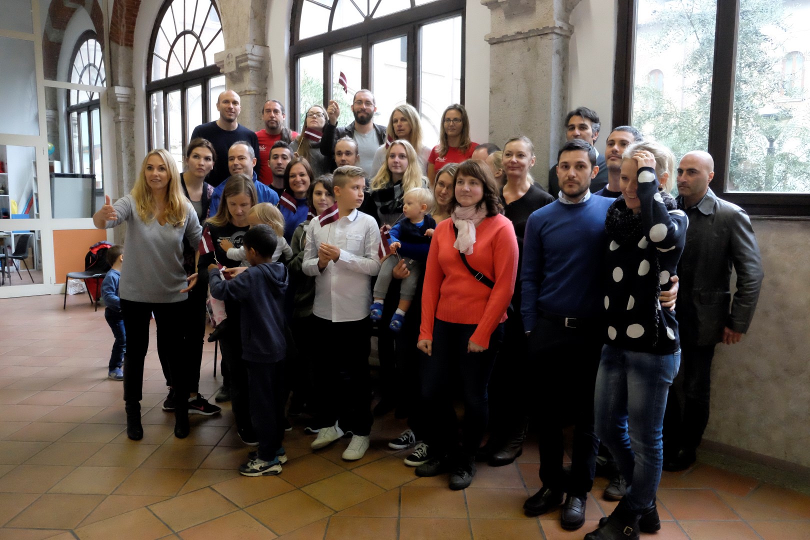 Pulcēšanās iesākas ar kāda zēna sumināšanu, kuram šodien paliek 11 gadi, viņš pēc labākajām tradīcijām tik reizes tiek uzlidināts gaisā. Iesildīšanās nolūkos visi brīdi iet rotaļās, tad sākas nodarbības. Mēs pievienojamies Lauras valodas stundai – viņa māca latviešu valodu itāļu vīriešiem, kuri savu dzīvi saistījuši ar latvietēm. “Lai var saprast, ko bērni runā,” par pamatojumu smejas meitenes. Paralēlā ideja šādām mācībām esot savstarpēji iepazīstināt un “iedraudzināt” šos vīriešus, lai viņiem būtu lielāka interese doties sievām un bērniem līdzi uz dažādiem latviešu pasākumiem, viņiem tur arī būtu savs draugu loks.