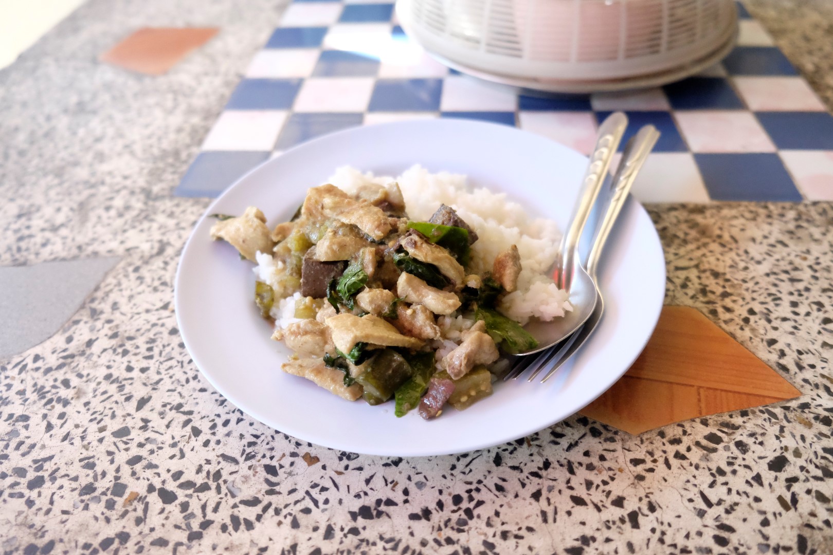 Norunātajā laikā gaidu pie mana piemājas Tesco veikala. Pēc dažām minūtēm parādās arī Harijs. Nereāli forši! Apsveicināmies un dodamies svinēt. Šovakar, par godu valsts svētkiem, paēdīsim bufetes tipa ēstuvē – samaksā 200 batus (5 eiro) un ēd, cik lien! Katru dienu šādas izēšanās nevar piekopt, bet svētku reizēs – mierīgi. Tad nu paralēli pļāpāšanai stumjam aiz vaigiem ceptas gaļiņas, zivis, suši, sēnes, augļus un citus labumus. Man kādā brīdī izbeidzas kapacitāte, bet Harijs vēl uzliek punktu uz vakariņām ar krāsainām želejveida bumbiņām kokosriekstu mērcē.