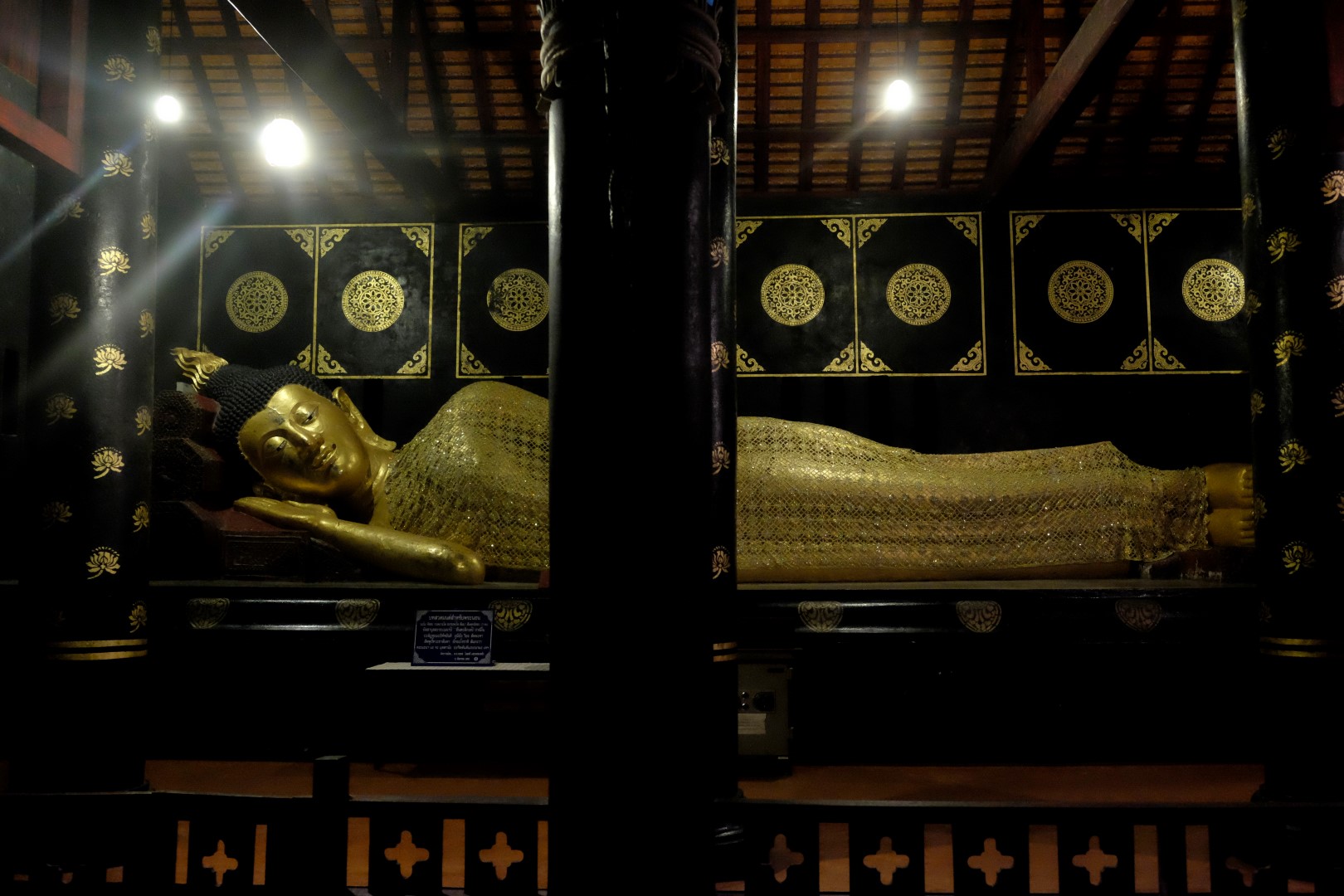 Mūs ielaiž Pra Wihan Luang templī, kas ir jau slēgts. Mēs klīstam pa tukšo teritoriju, Harijs stāsta par vietas vēsturi, skaidro statuju nozīmi, stāsta par Budām. Piemēram, šis resnulis kādreiz esot bijis tik skaists, ka viņā iemīlējušās daudzas – kā ieraudzījušas, tā pametušas vīrus un vēlējušās būt kopā ar skaistuli. Arī vīrieši nav varējuši palikt vienaldzīgi neparastajam skaistumam. Atraidīti iemīlējušies sākuši izdarīt pašnāvības, kas budismā ir traki slikta padarīšana. Tad nu skaistulis nolēmis darīt galu šīm ciešanām un tikmēr ēdis, kamēr nobarojies pavisam resns un tad cilvēki pārstājuši viņā iemīlēties.