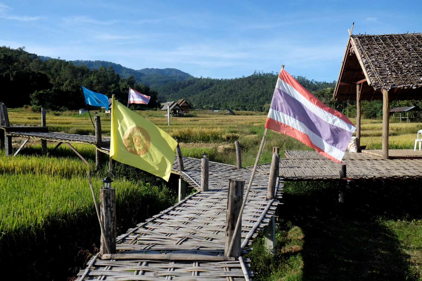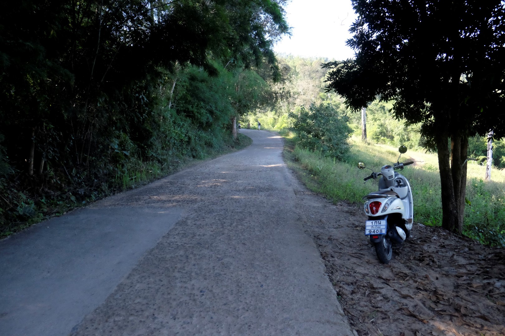 Nokaulēju baltu zirgu par 500 naudiņām (13 eiro) uz 3 dienām. Mirklīti patrenējos viņu pagalmā un tad, domās pārmetusi krustu, izbraucu uz ceļa. Šeit, salīdzinoši ar Bangkoku un Čangmaju, ir pavisam mierīgi, īstā vieta, kur atsākt vingrināšanos. Apzinos, ka braucu briesmīgi, bet domās pie sevis atkārtoju naktsmāju saimnieka sniegto padomu – “Just take it slowly, men”.