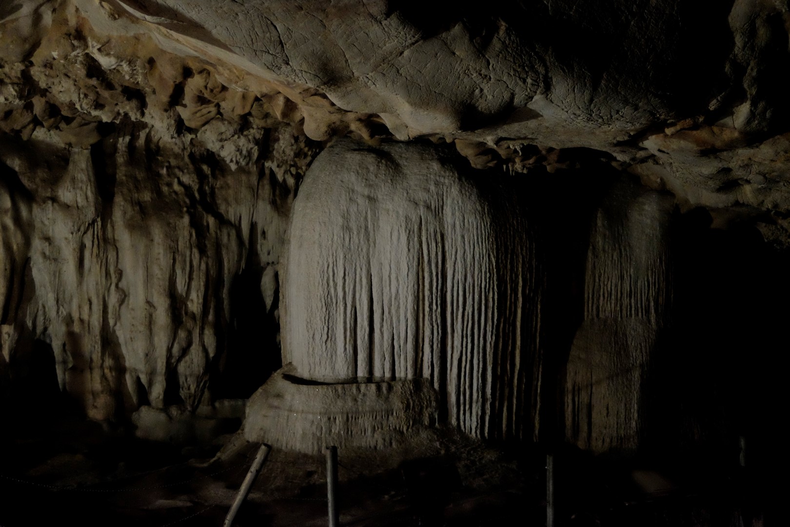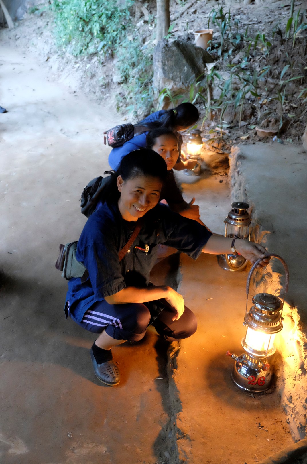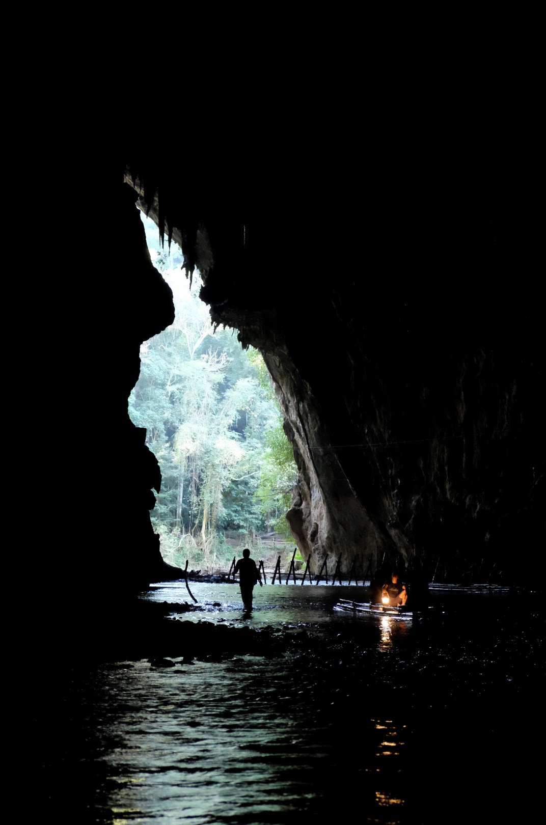 Šī noteikti ir viena no lielākajām alām, kurā esmu sabijusi – te ir visu formu un izmēru stalaktīti un stalagmīti. Gide ik pa laikam apstājas pie kāda veidojuma un norāda, kam tas līdzinās – zilonim, vardei, čūskai, krokodilam, sievietes krūtij un tamlīdzīgi. Pēc pastaigas tiekam iesēdināti bambusa raftā un mirklīti braucam pa straumi lejup. Smird diezgan nelāgi un mēs jokojam, ka pie vainas būs uz ieejas plakāta minētais “Pīmens”, bet, kad gide uzspīdina uz griestiem, saprotam, ka to noorganizējuši sikspārņi.