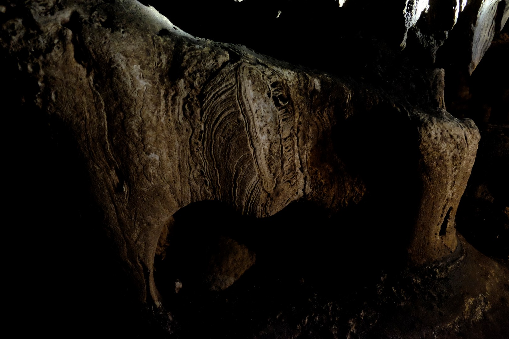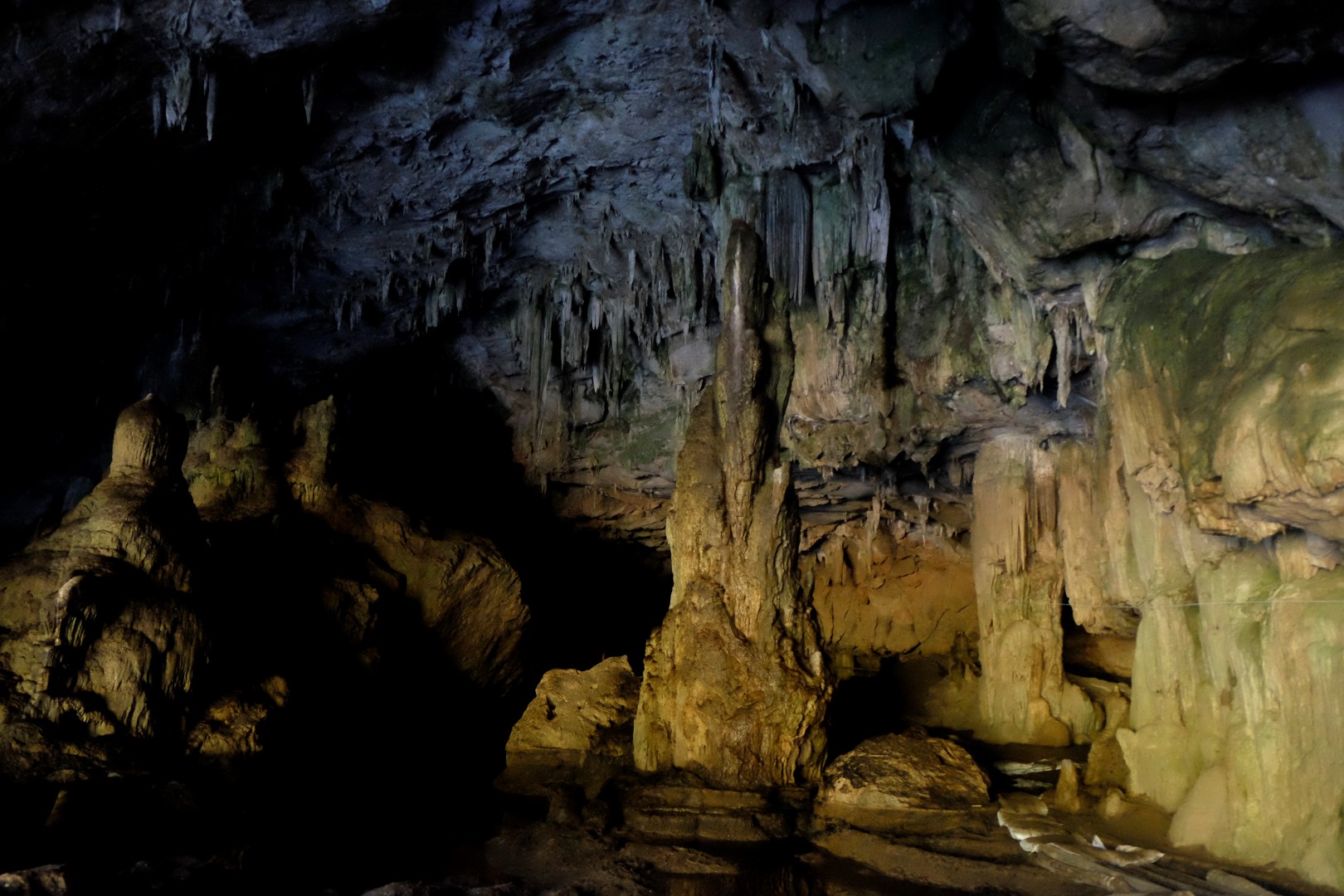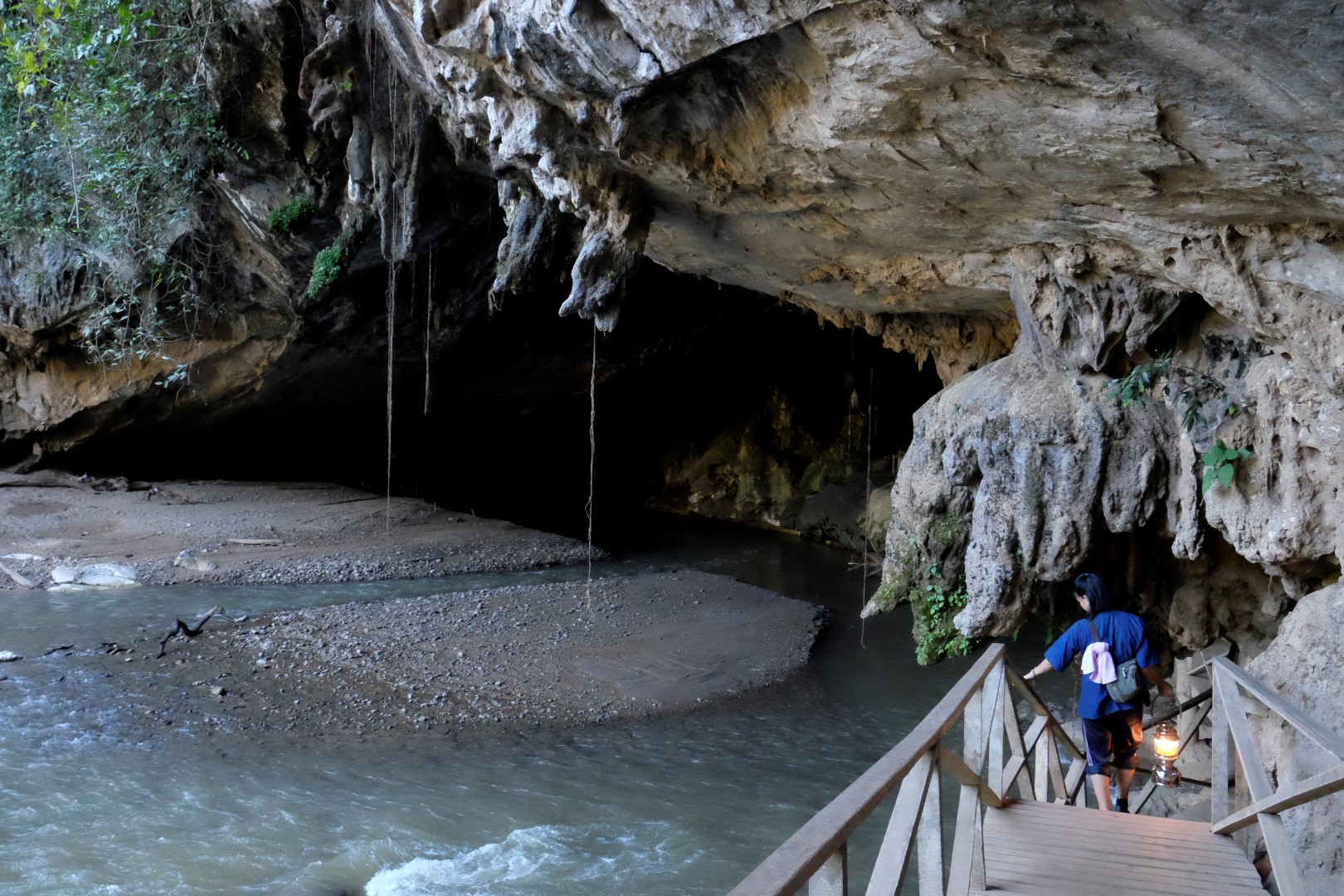 Pie alas ieejas nonākam dienas otrajā pusē, mums piešķir simpātisku gidi ar petrolejas lampu un varam doties iekšā. Uz savu roku šeit pastaigāties neļauj un pēc brīža top skaidrs kāpēc. Alu labirinti ir plaši un sarežģīti, tumsā nomaldīties nebūtu nekādu grūtību.