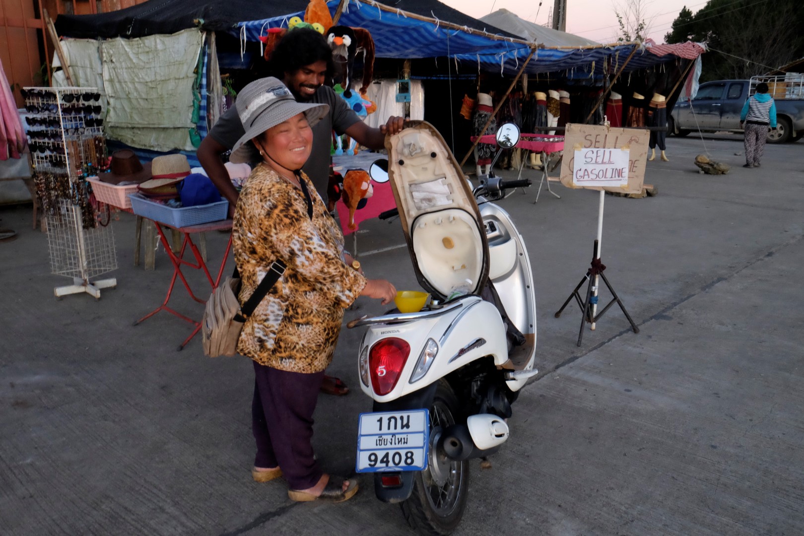 Pilsētā nonākam līdz ar tumsu. Aizejam līdz vietējam tirdziņam un sapērkam visu ko vakariņām – dārzeņus, ceptu gaļu, rīsus, kokosriekstus, mango un citus augļus. Šķita, ka paņēmām tikai no visa pa drusciņai, bet finālā esam pieēdušies ne pa jokam.