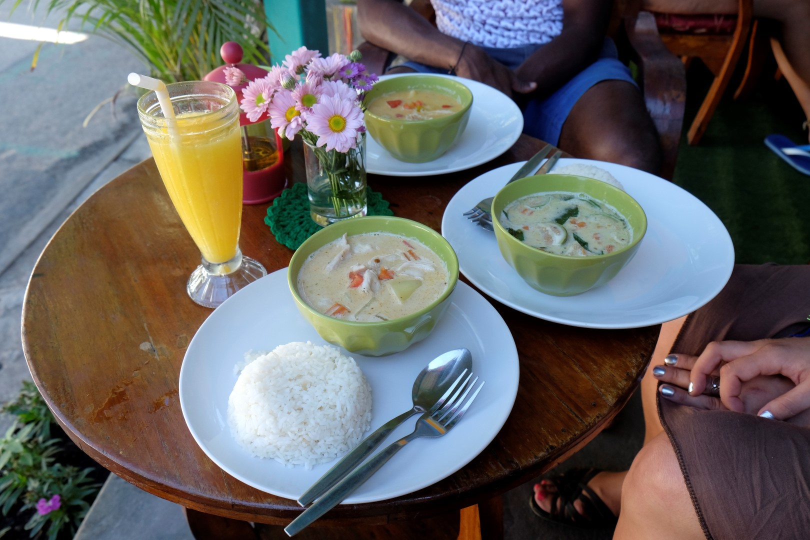 Gāju garām šim hostelim pirms pāris dienām un gribēju norezervēt palikšanu iepriekš, bet saimnieka koncepts ir – nekādu rezervāciju. Kas pirmais atnāk, tas var palikt. Tā kā šobrīd ir rīts, tieku pat pie pirmā stāva gultas. Nolieku lielo somu un dodos brokastīs kopā ar Gošu un Čeranu. Visi pasūtām dažādu veidu kariju un šoreiz tas atkal ir pavisam garšīgs.