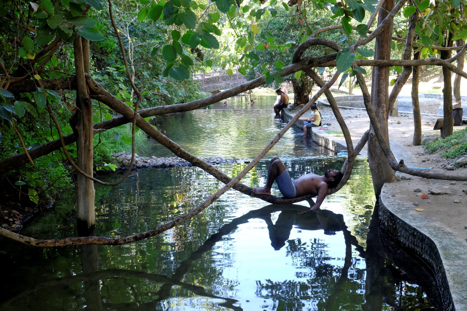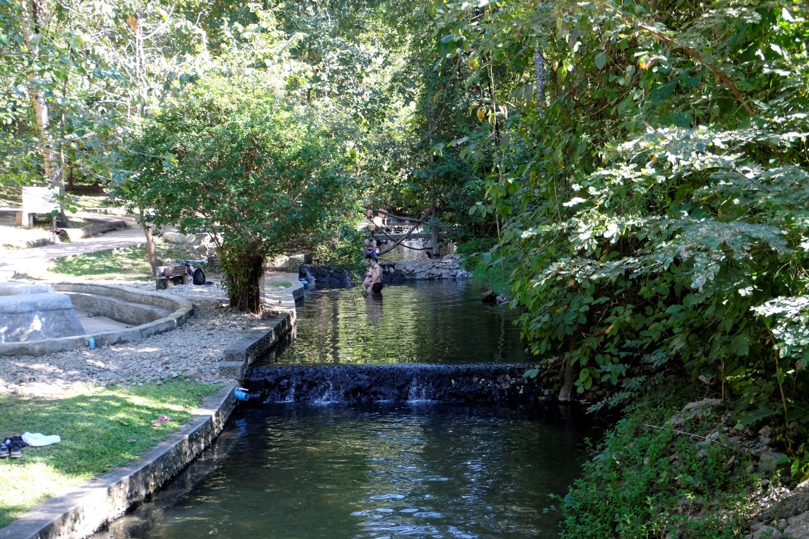 Mēs gan ejam “vārīties” paši. Baseinā, kas ir tuvāk karsto avotu iztekai, temperatūra ir gana augsta, iekšā var ielīst tikai pamazītiņām pieradinot ķermeni. Katrs nākamais baseins jeb posms ir par kādu grādu vēsāks. Vispatīkamākais tas ir pašā pēdējā – tur var tupēt kaut stundu. Šāda mērcēšanās gan ir patīkamāka, kad ārā ir auksts, ko gan nevar attiecināt uz šodienu. Naktis Pai ir diezgan vēsas, man iepriekšējā naktsmītnē pat sala, aizņēmos papildus segas no tukšajām blakus gultām, bet dienās ir karsts. Kad apnīk būt slapjumā, var pasēdēt laukā vai atgulties uz koku stumbriem, kas līkst pāri ūdenim. Īsāk sakot, īsta sevis palutināšana, par ko paldies sūtu Aigai Veckalnei! Arī otra uzdevuma sadaļa ir par 80% izpildīta, ceru, ka draugs priecāsies. Paldies, Aiga!