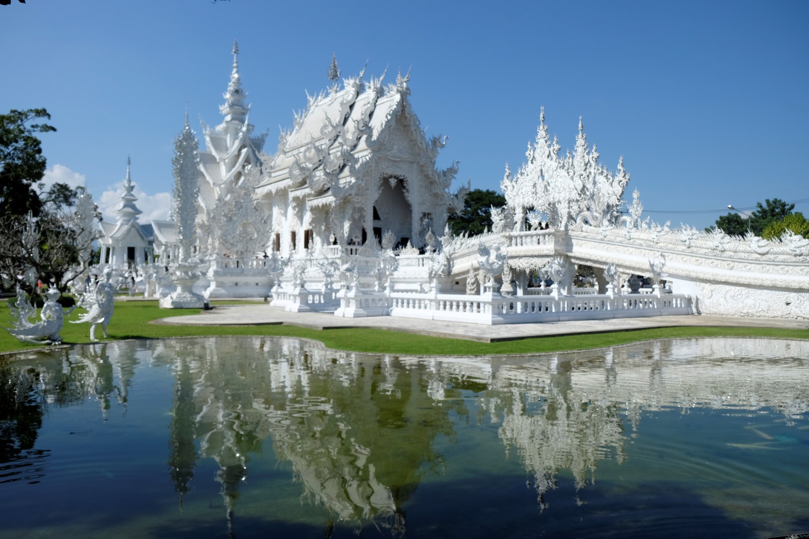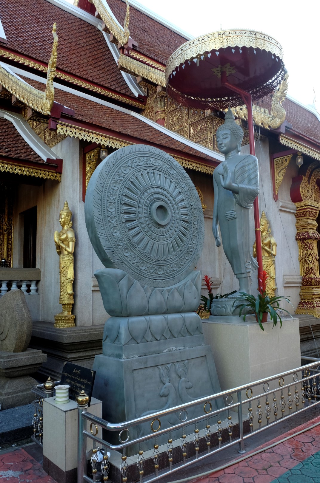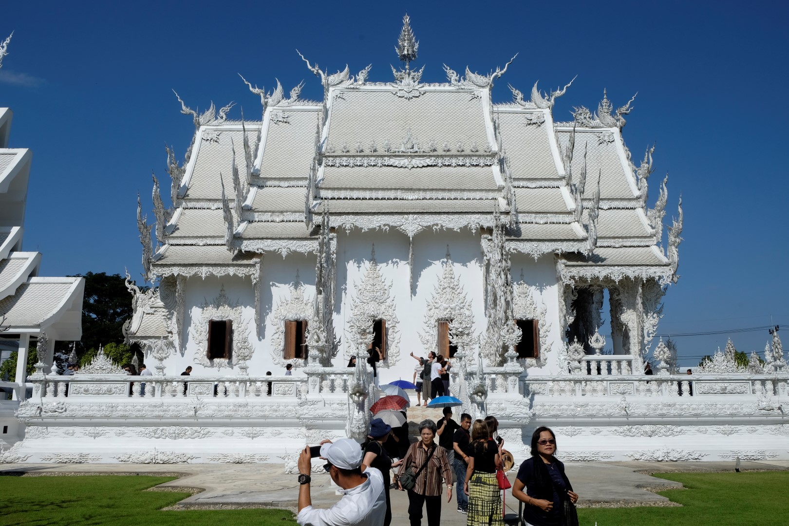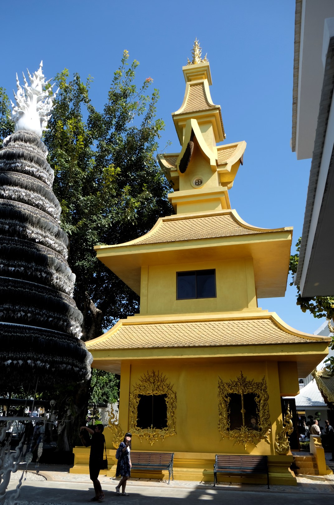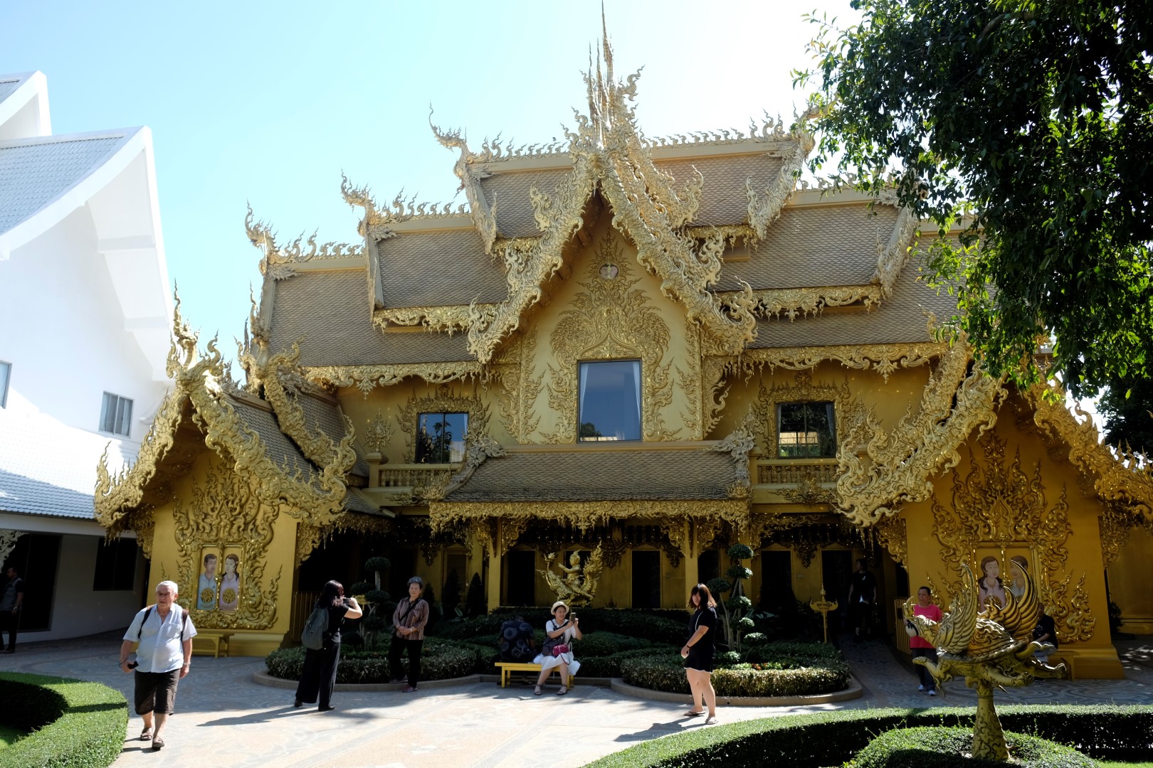 Kā jau šādās vietās, ir tūristu pilns. Spožajā saulē pat paskatīties uz ēku nav iespējams, acis sāp un žilbst. Noknipsēju pāris kadrus, izskrienu cauri templim un dodos atpakaļ uz busu. Drīz turpinām ceļu uz Čangraju, bet kilometrus sešus pirms centra busiņš apstājas kaut kādā nekurienē un apgalvo, ka esam atbraukuši. Kā uz burvju mājienu sarodas takši un tuktuki, lai gan nekā ievērības cienīga te nav. Daži paklausīgākie pasažieri izkāpj, es palieku busā kopā ar diviem britu pārīšiem, ar kuriem kopā pusdienojām. Mēs atsakāmies izkāpt – esam samaksājuši par biļeti līdz pilsētas autoostai, nevis šejienei. Minūtes piecas strīdamies, tad šoferis iedod vienam no britiem telefona aparātu un viņš paskaidro priekšniecībai, ko par šo situāciju domā. Šoferis paņem telefonu, diezgan dusmīgs aizcērt durvis, bet turpina ceļu uz pilsētu.
