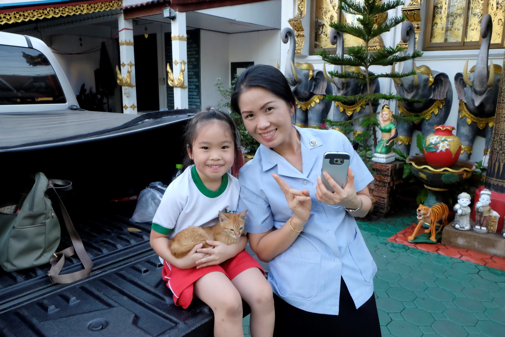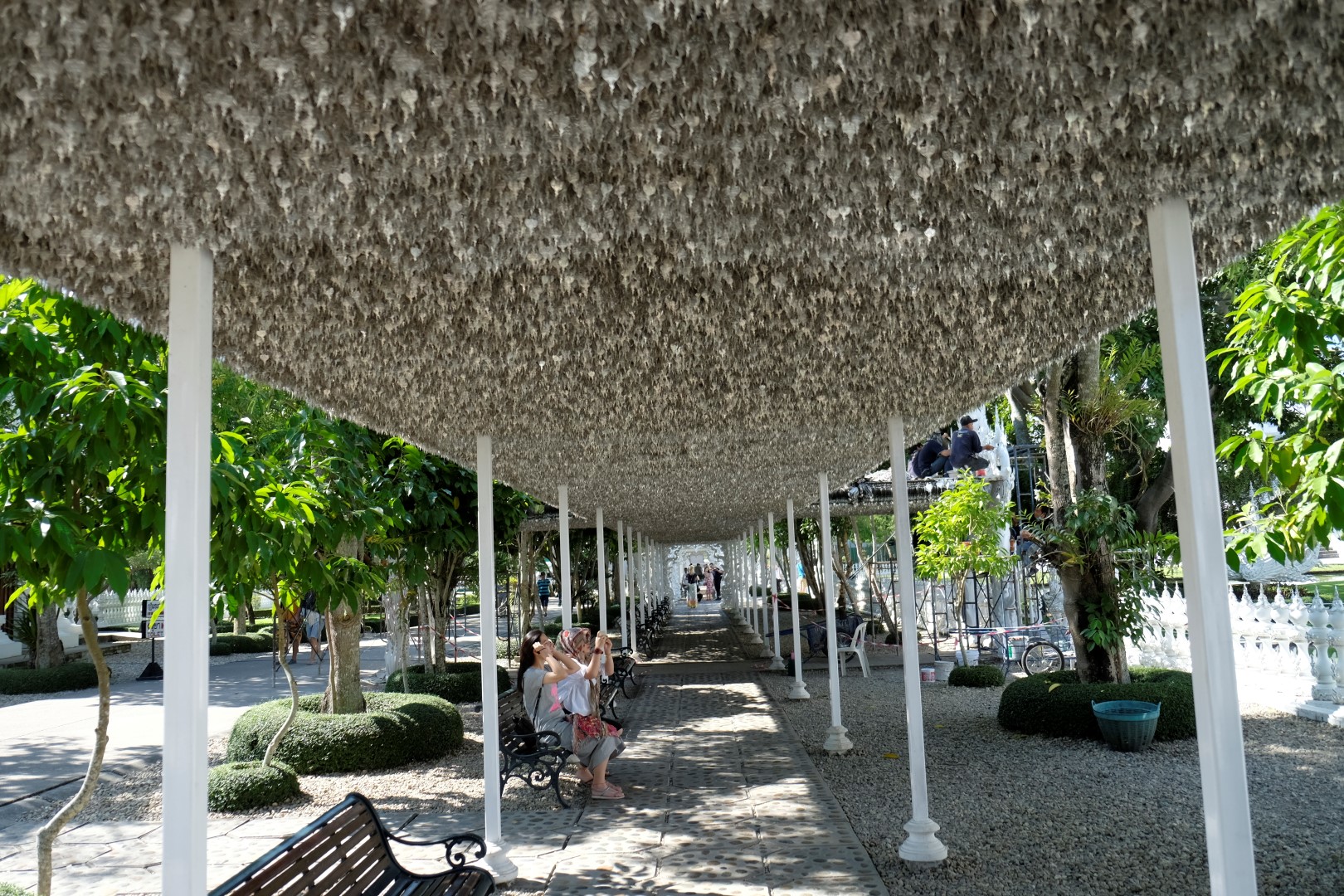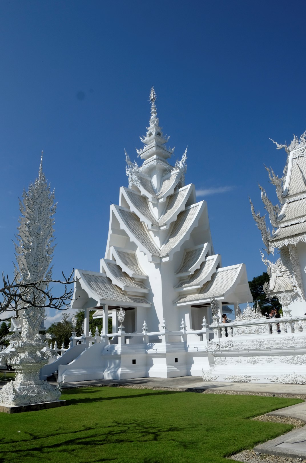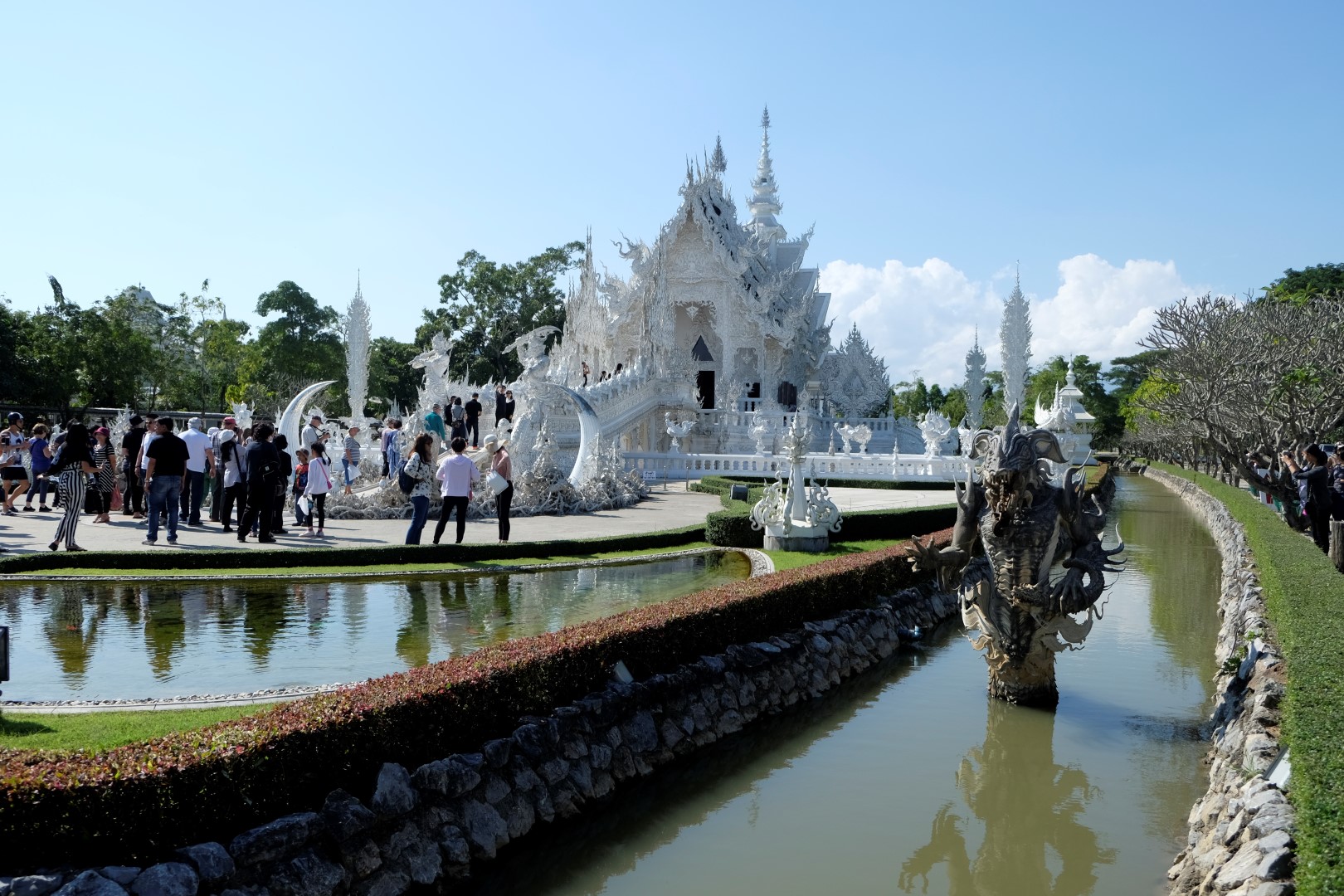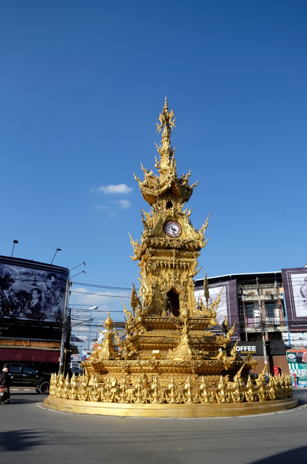 Kā jau šādās vietās, ir tūristu pilns. Spožajā saulē pat paskatīties uz ēku nav iespējams, acis sāp un žilbst. Noknipsēju pāris kadrus, izskrienu cauri templim un dodos atpakaļ uz busu. Drīz turpinām ceļu uz Čangraju, bet kilometrus sešus pirms centra busiņš apstājas kaut kādā nekurienē un apgalvo, ka esam atbraukuši. Kā uz burvju mājienu sarodas takši un tuktuki, lai gan nekā ievērības cienīga te nav. Daži paklausīgākie pasažieri izkāpj, es palieku busā kopā ar diviem britu pārīšiem, ar kuriem kopā pusdienojām. Mēs atsakāmies izkāpt – esam samaksājuši par biļeti līdz pilsētas autoostai, nevis šejienei. Minūtes piecas strīdamies, tad šoferis iedod vienam no britiem telefona aparātu un viņš paskaidro priekšniecībai, ko par šo situāciju domā. Šoferis paņem telefonu, diezgan dusmīgs aizcērt durvis, bet turpina ceļu uz pilsētu.