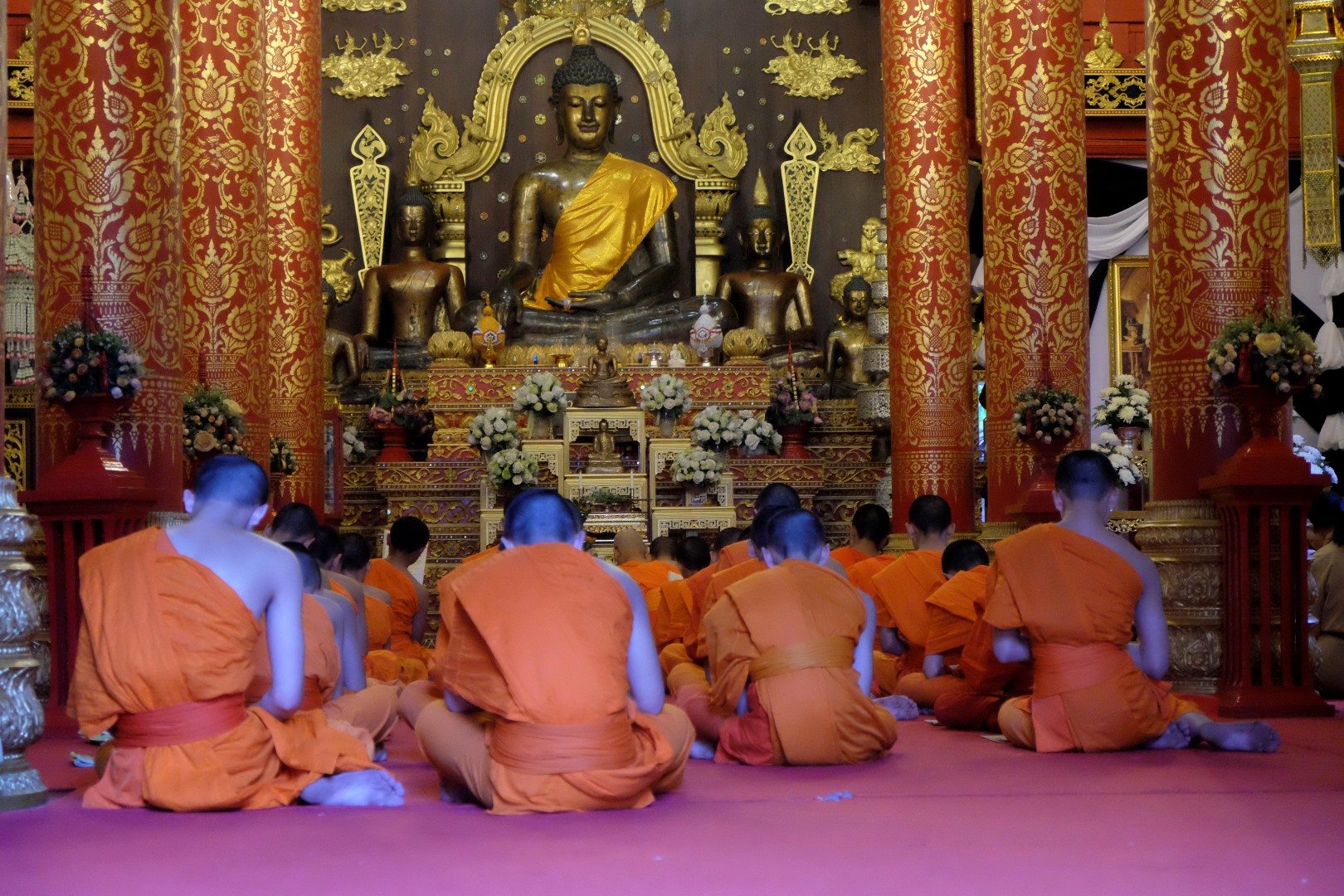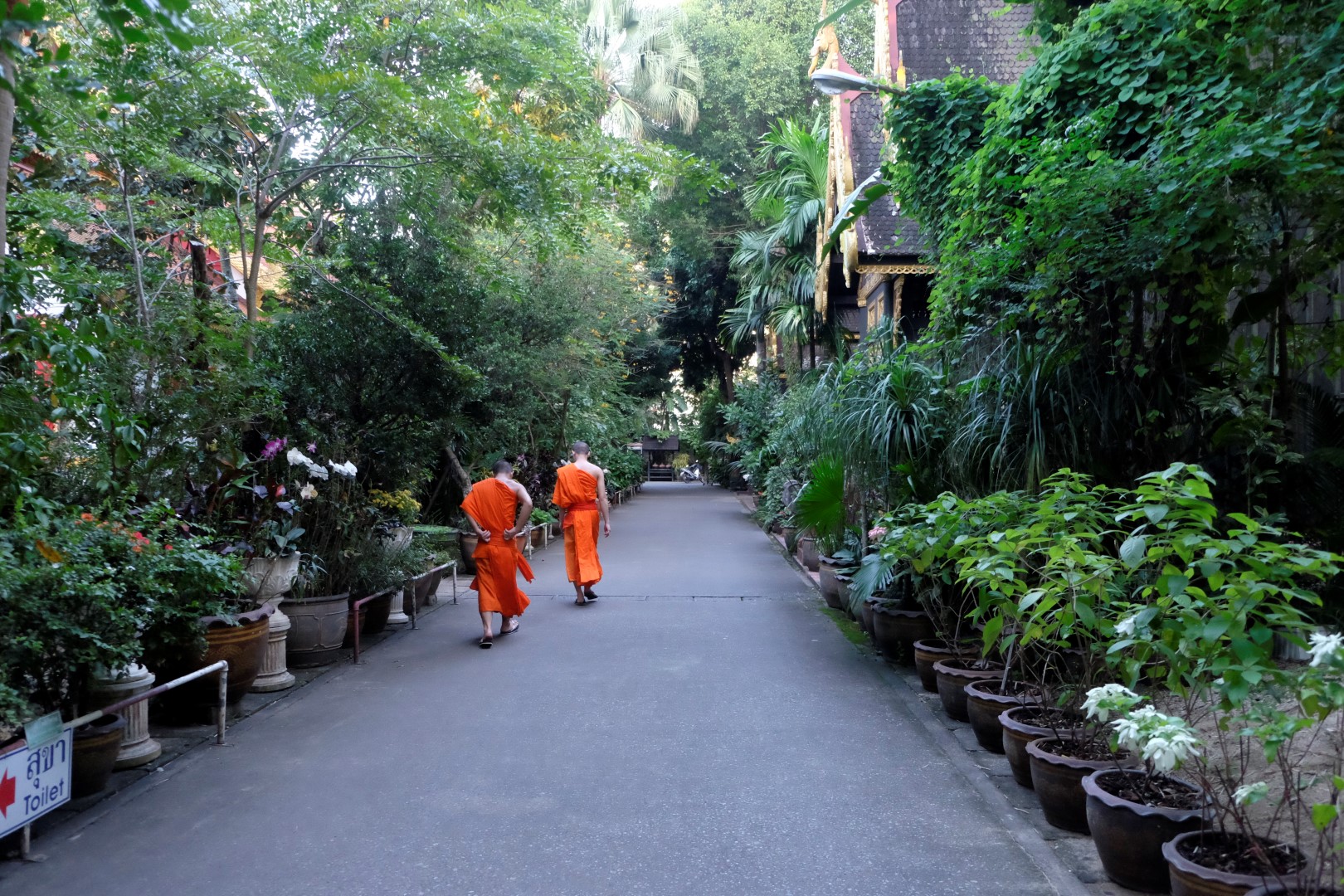Lēnām klīstu no viena tempļa uz citu un tie ir fantastiski. Cilvēka neviena, var mierā un klusumā visu apskatīt, nofotografēt, vienkārši pabūt. Pēdējais templis gan ir dzīvīgāks – vienā no ēkām apmeklētāji komunicē ar Budu, citā mūki skandē mantras. Pēkšņi saprotu, kāpēc šī vieta šķiet maģiska. Ēku kompleksu ieskauj milzīgs dārzs un tas, kopā ar vakara skandējumu, rada pavisam citu atmosfēru.