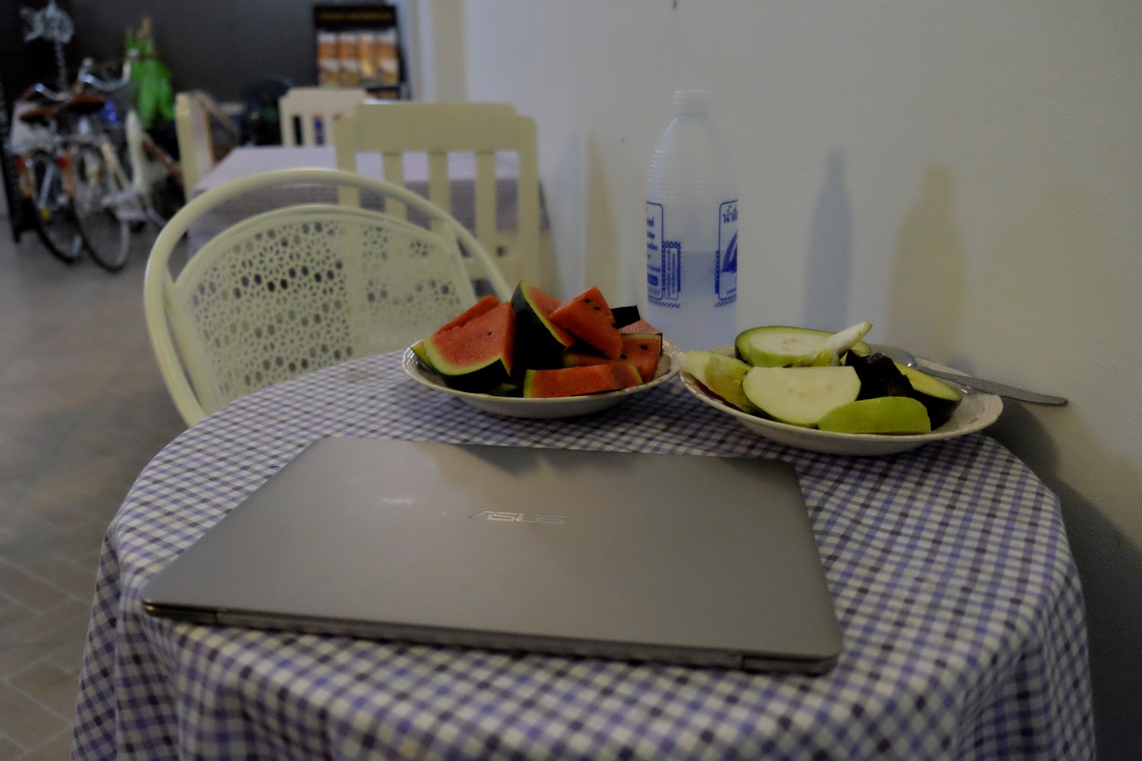 Lēnām ierodas krēsla. Izeju caur vietējo tirdziņu – nopērku vakara našķiem arbūza gabalu un guavu, bet brokastīm avokado. Ieradusies hostelī, uzzinu, ka viņiem nav printeris, attiecīgi nevaru izdrukāt rītdienai nepieciešamos dokumentus. Sakopēju visu fleškā un dodos vēlreiz uz centru. Šeit ir diezgan populāri veikali, kuros var izdrukāt fotogrāfijas, tieku arī pie saviem papīriem. Lidmašīnu iekāpšanas kartes vēl būtu štrunts, bet Kambodžas e-vīza gan nepieciešama izdrukātā formā, vismaz tā uz tās rakstīts.