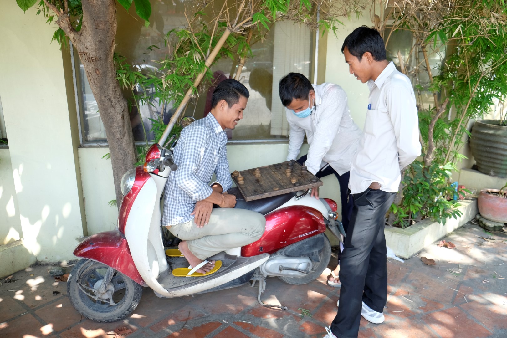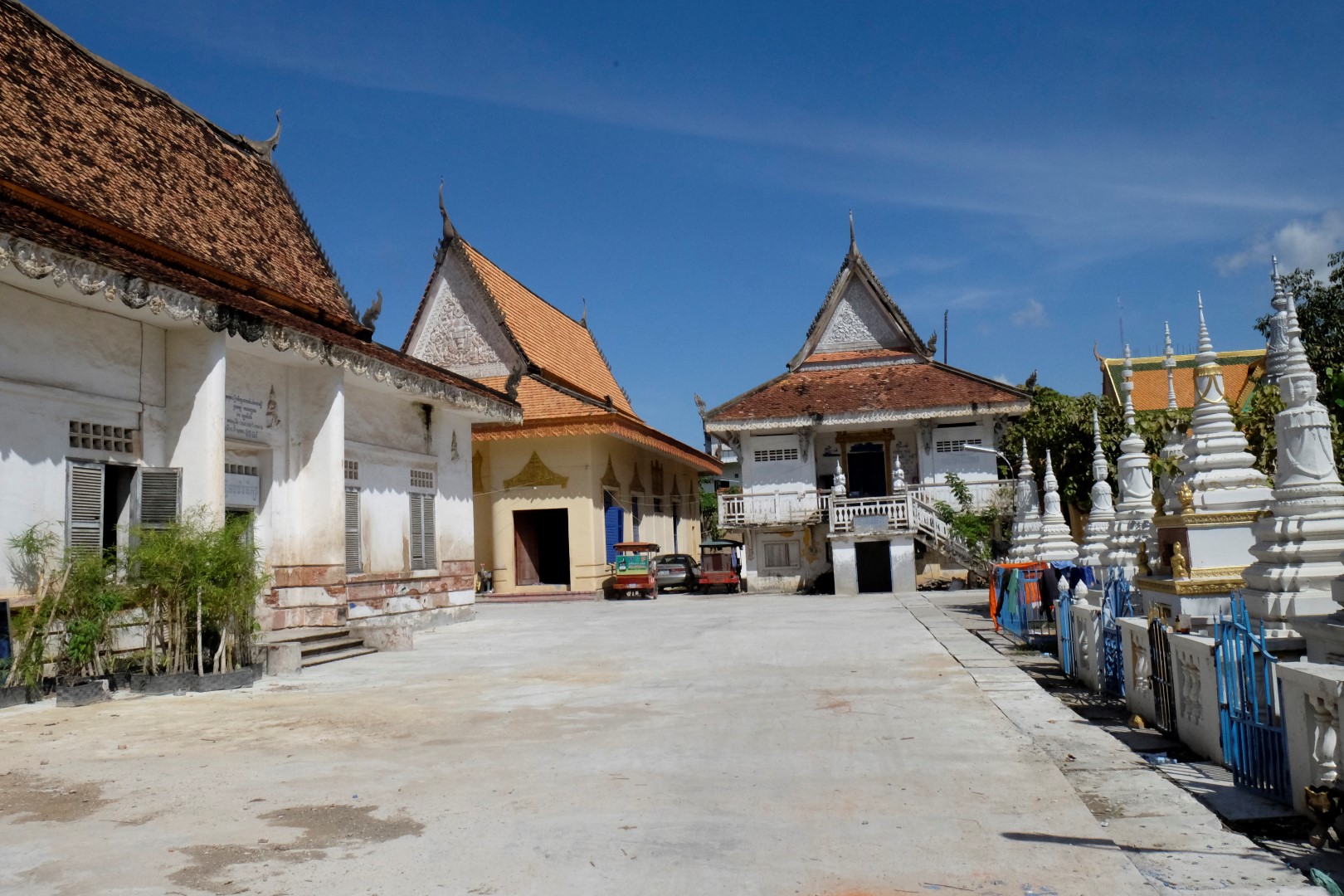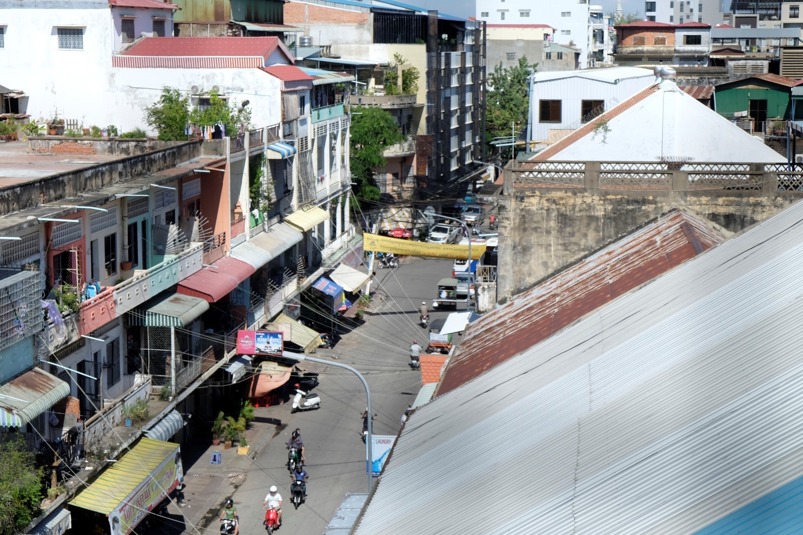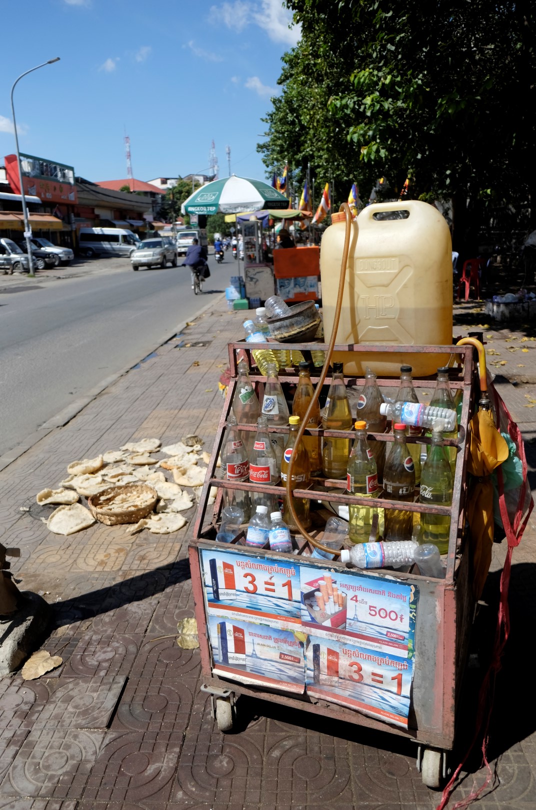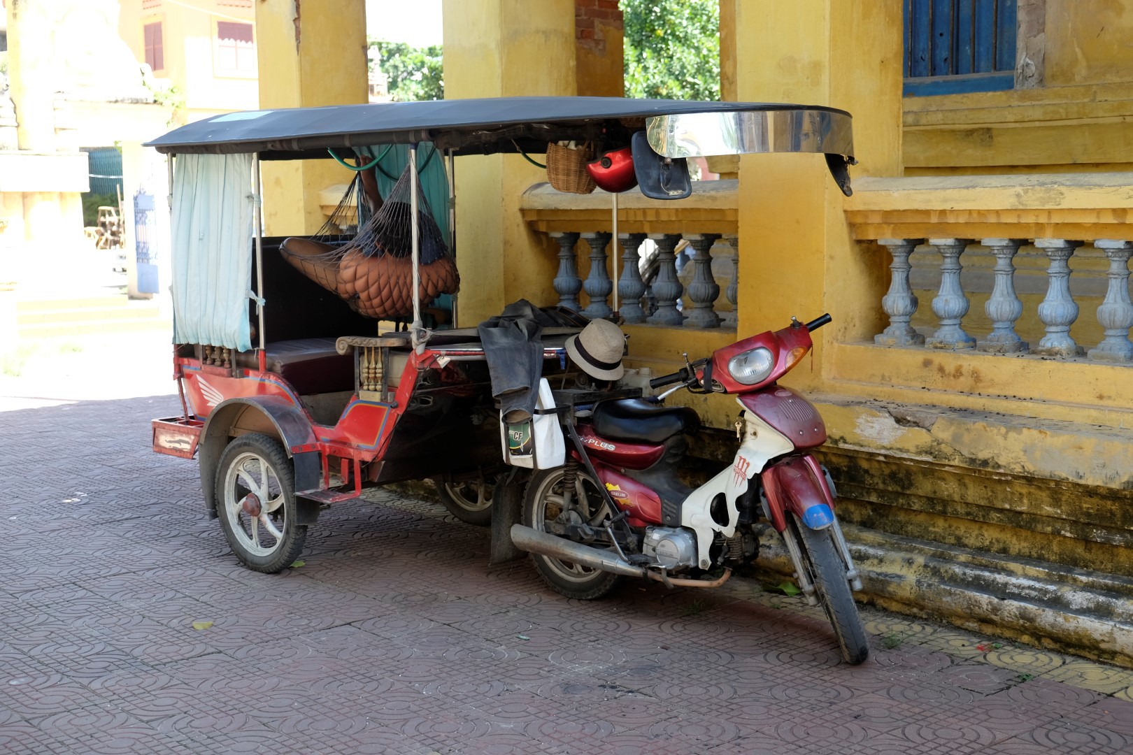 Pēc pusdienām iestājas sagurums un, tā kā hostelis ir netālu, nolemju aiziet līdz tam un drusku atvilkt elpu. Jāteic, ka klīst pa pilsētu virs + 30 grādiem, saulē, nerimstošā satiksmē – ir diezgan nogurdinoši. Kopumā Pnompeņas ielas, vismaz tās, pa kurām man gadījās paieties, nevar nosaukt par gājējiem draudzīgām. Trotuāri, ja tādi eksistē, ir aizņemti ar motorolleriem, tirgotājiem un drazu kaudzēm, ielās ir pilns ar braucamajiem. Brīžam tiešām nav, kur palikt.
