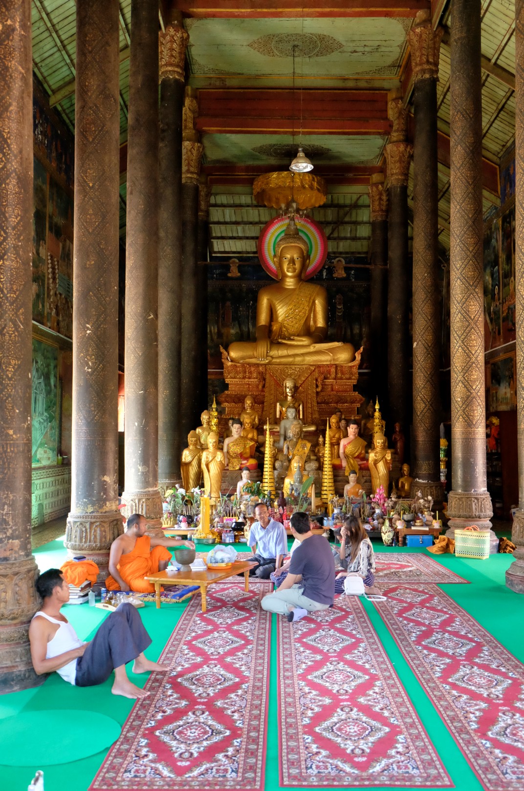 Vienā no tempļiem notiek pasākums, visi tērpušies baltā un ietur svinīgu maltīti. Atļaujos apvaicāties mūkiem, vai šīs esot kāzas, bet viņš mani apgaismo, ka ne gluži. Izrādās, ceremonija ir par godu kādam vectētiņam, kas nesen pametis šo pasauli. Es varot pievienoties pusdienām, viņš saka. Nē, nē, paldies, tā tik vēl trūka, lai es svešās bērēs ielauztos. Vēl šajā templī Budas ir “apgaismoti”. Ja man tagad kāds prasīs, vai esmu redzējusi gaismiņas ap galvu, varēšu apgalvot, ka jā.