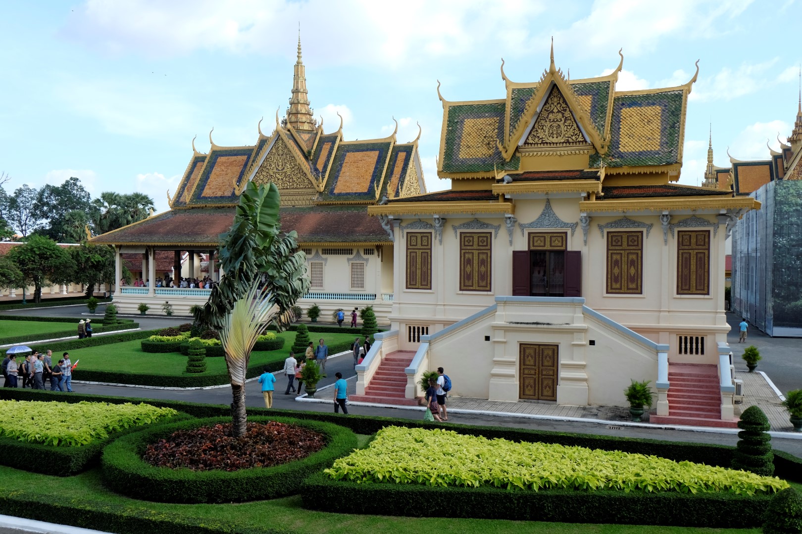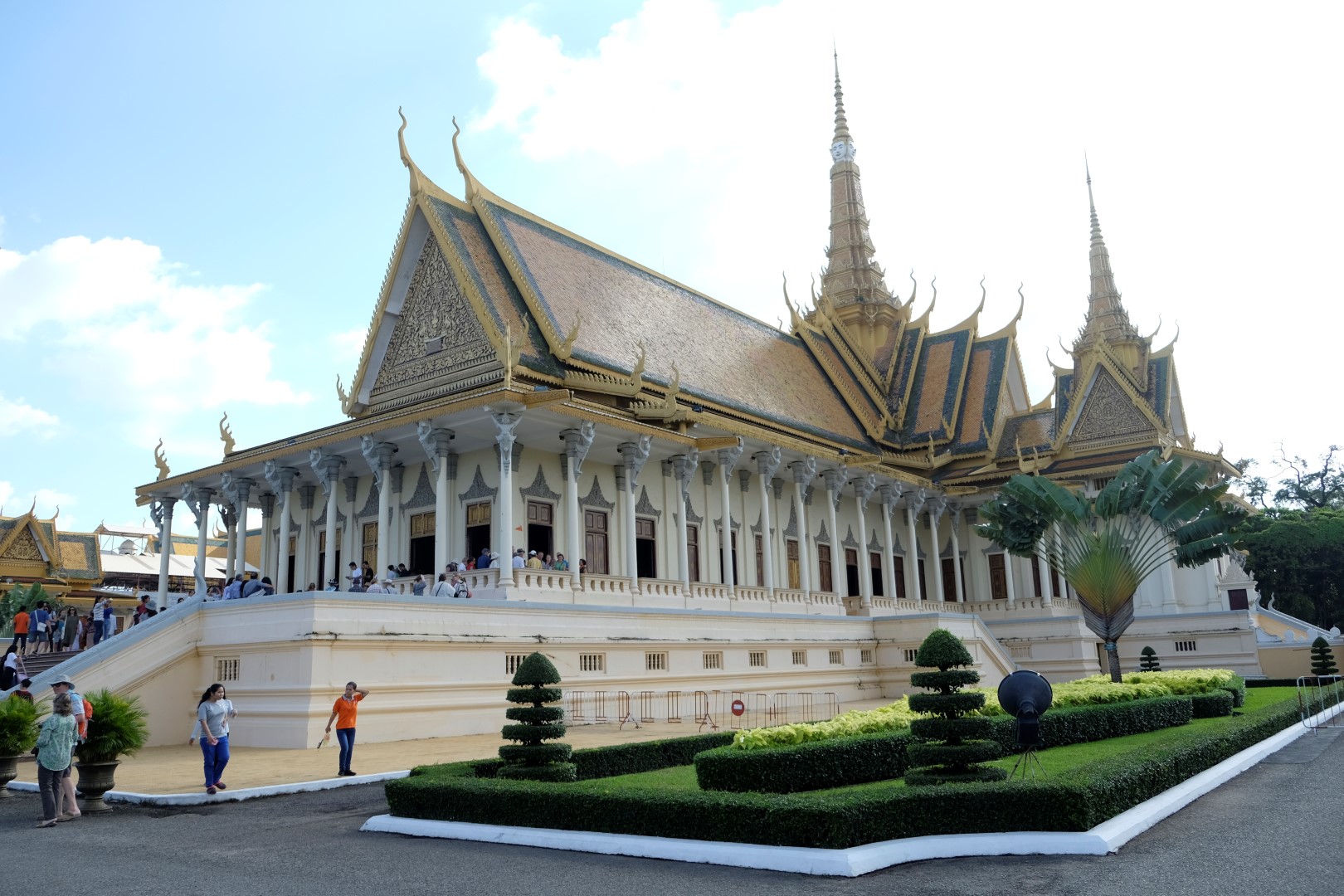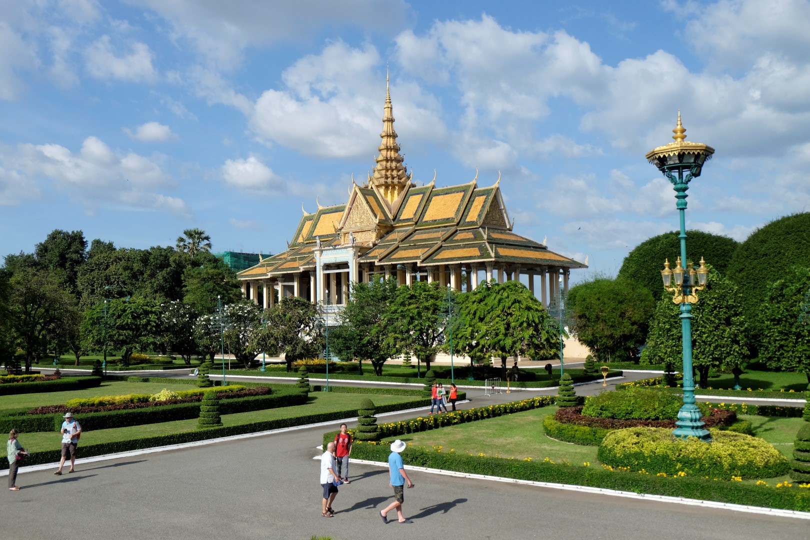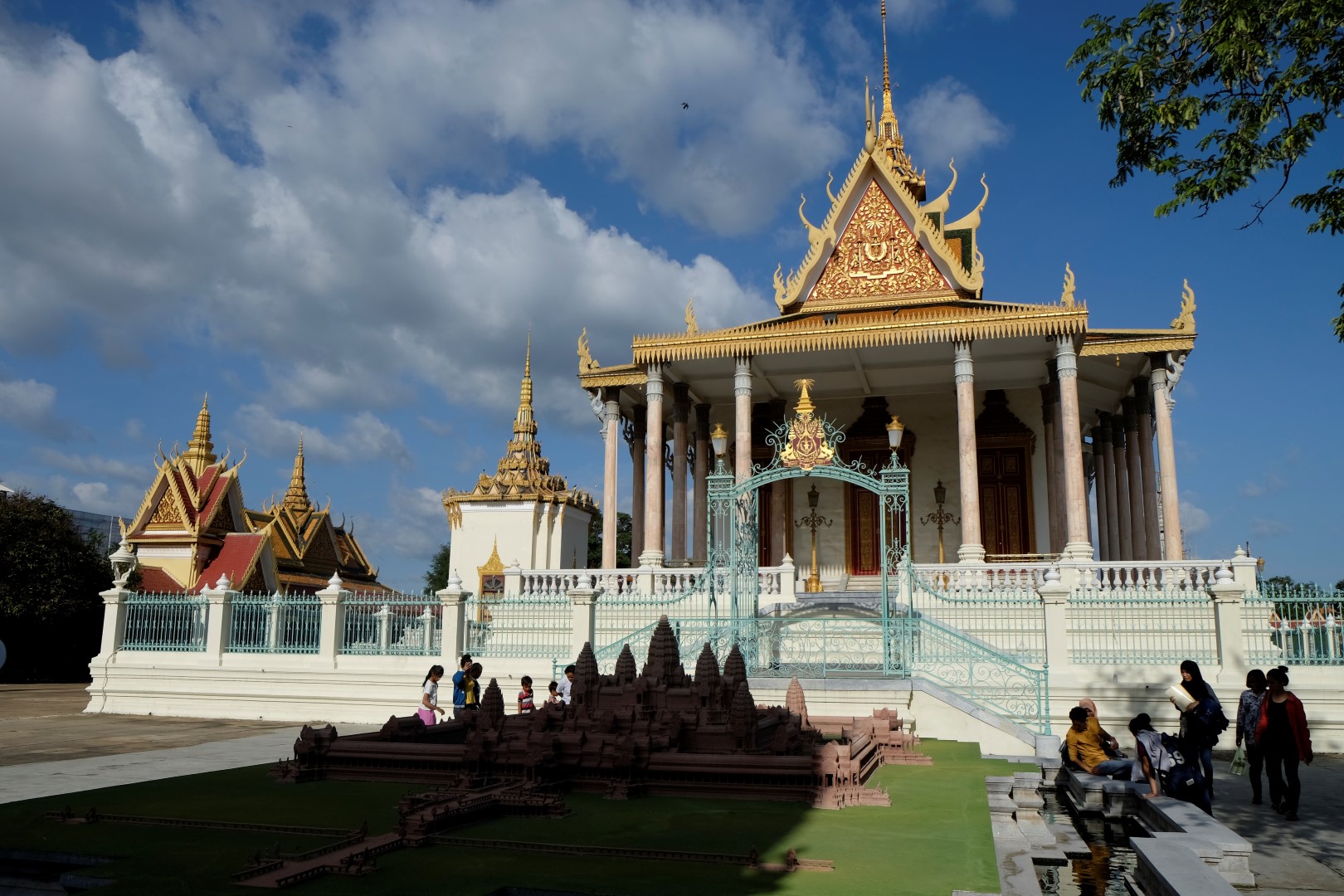 Pēc pusdienām mirkli piestāju hostelī, lai atvilktu elpu un sagaidītu, kad atvērsies netālu esošā pils – tā pa dienu ietur siestu. Atvairot kādus simts “madam, tuktuk”, nonāku līdz pilij. Ieejas maksa ir 25 000 rieli (6 eur) un brīdi apdomāju, vai doties iekšā, bet beigās tomēr nolemju nežmiegties. Pils komplekss ir diezgan glīts, vienīgi atkal jātiek galā ar tūristu pūļiem.