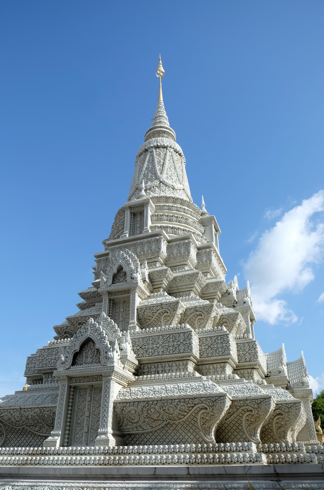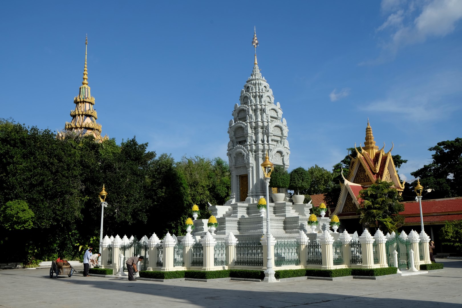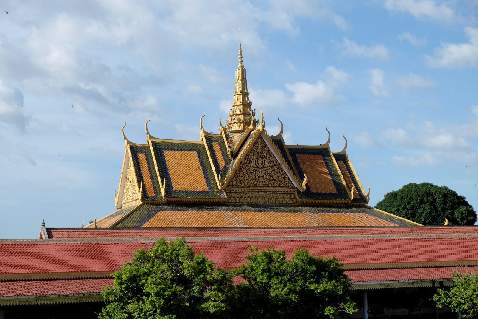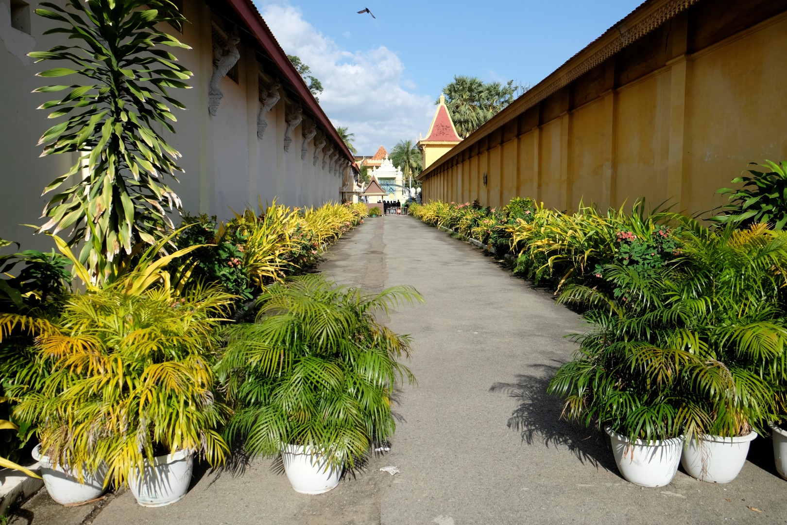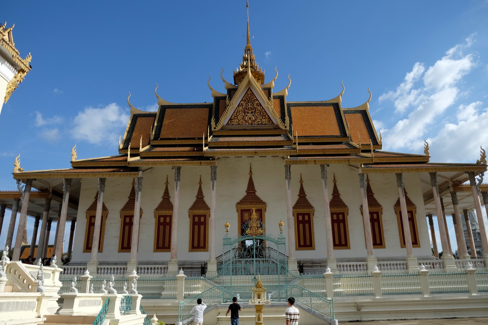 Pēc pusdienām mirkli piestāju hostelī, lai atvilktu elpu un sagaidītu, kad atvērsies netālu esošā pils – tā pa dienu ietur siestu. Atvairot kādus simts “madam, tuktuk”, nonāku līdz pilij. Ieejas maksa ir 25 000 rieli (6 eur) un brīdi apdomāju, vai doties iekšā, bet beigās tomēr nolemju nežmiegties. Pils komplekss ir diezgan glīts, vienīgi atkal jātiek galā ar tūristu pūļiem.