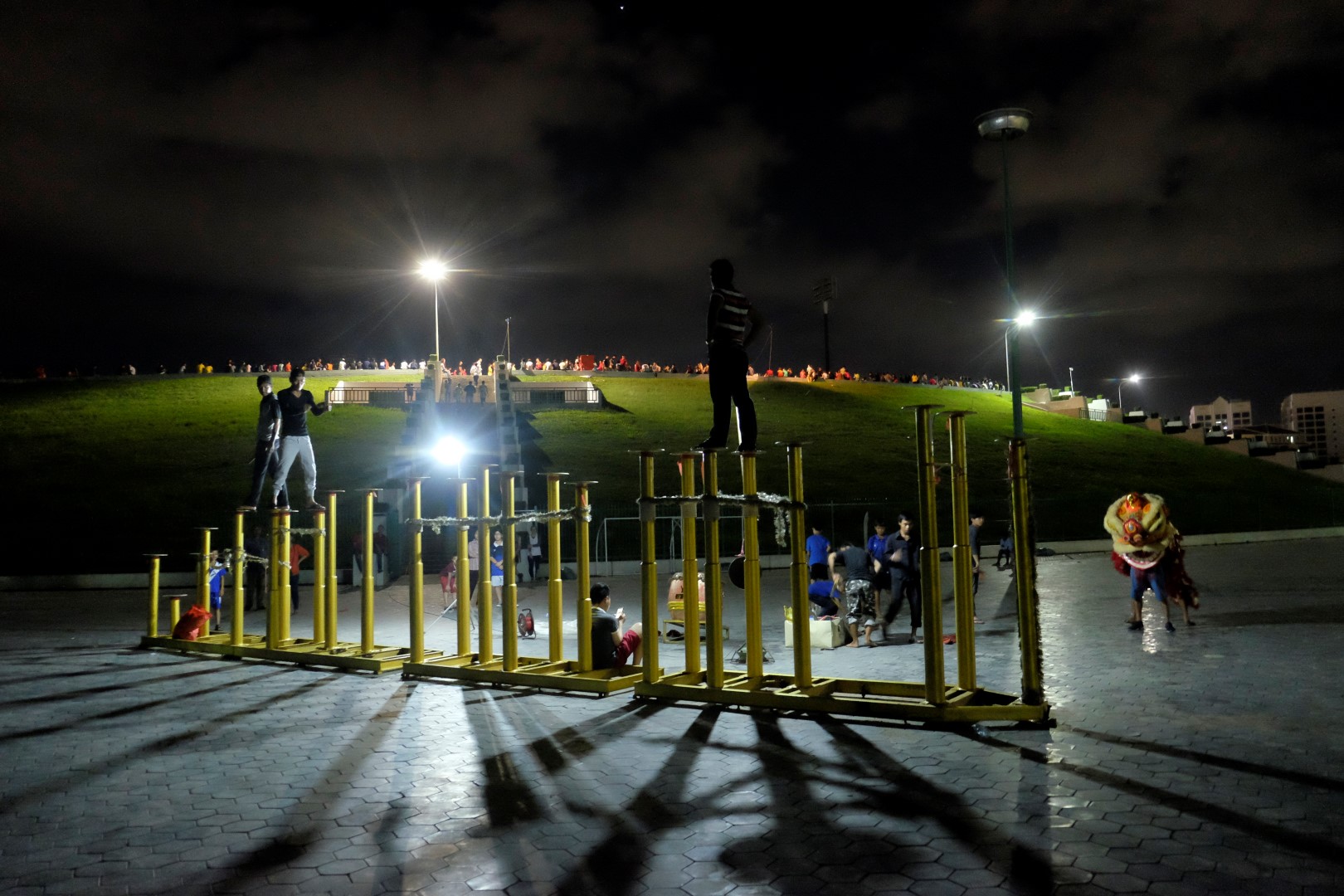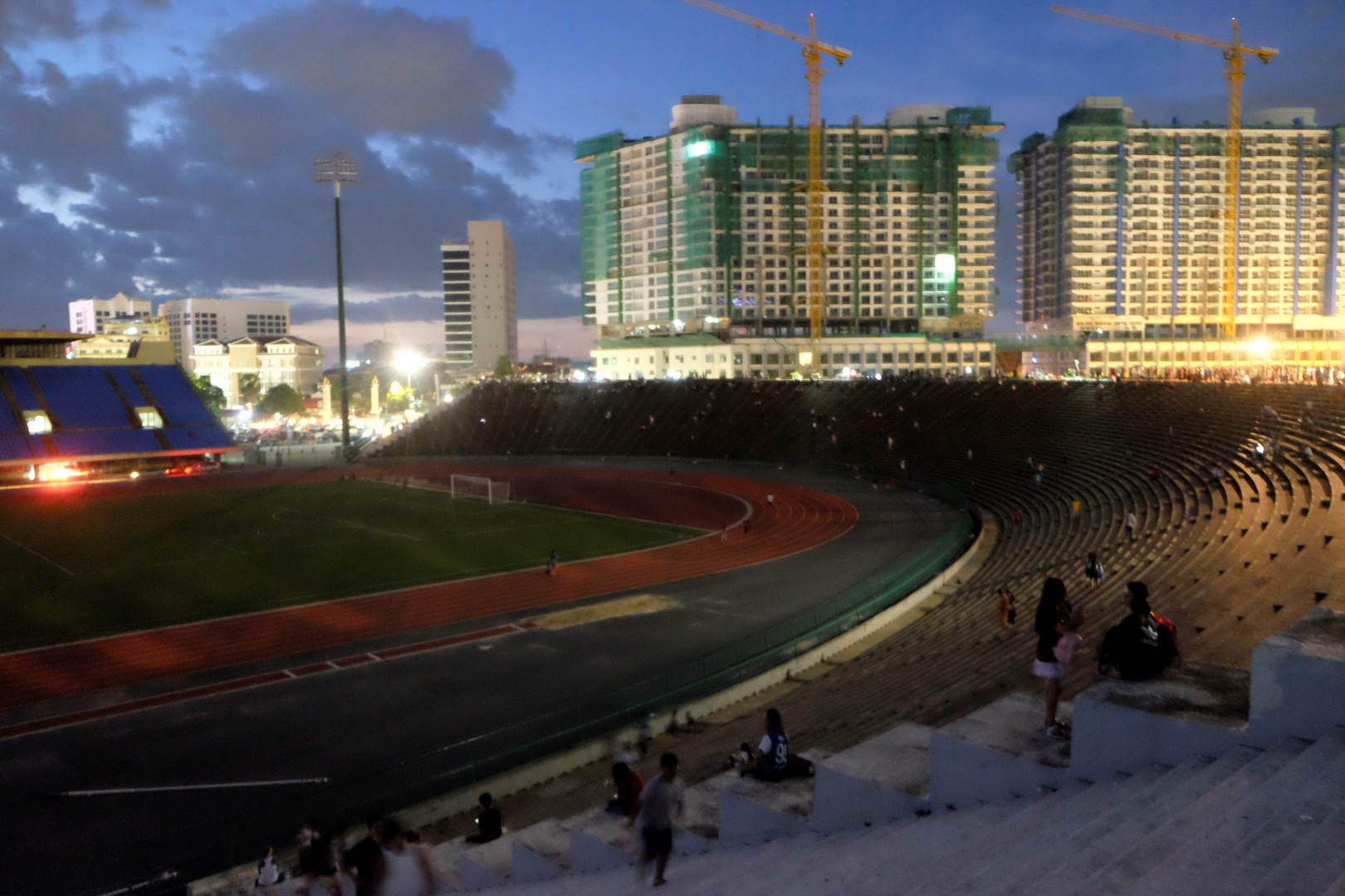 Ā, stadions. Tas taču ir tepat blakus – braucam! Tā kā Nelsons bieži spēlē šajā stadionā, viņš tikai piemiedz ar aci apsargam un varam ar auto iebraukt gandrīz skrejceļa vidū. Stadions tiešām ir dzīvības pilns – ik pēc posma pulciņš ļaužu sinhroni vingro kādas melodijas pavadībā. Blakus stadionam veikli kā mērkaķēni puiši lec pa vertikāliem stabiem – trenējas visādiem trikiem.