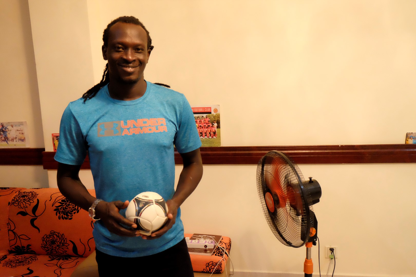 Paēduši drusku papļāpājam pa dzīvi. Tad Nelsons saka, ka esot jau šeit vienreiz saticis meiteni no Latvijas un kā pierādījumu rāda man bildi ar… Artu. Meiteni, ar kuru esmu pazīstama vairāk nekā desmit gadus, piecus no tiem pavadot ciešā profesionālā sadarbībā. Pasaule, pasaulīt. Protams, uzreiz uztaisām selfiju un aizsūtām Artai. Viņa arī priecīga par šādu jaušību un sūta sveicienus! Palūdzu Nelsonam arī mazu video paraugdemonstrējumu futbolā, te būs.