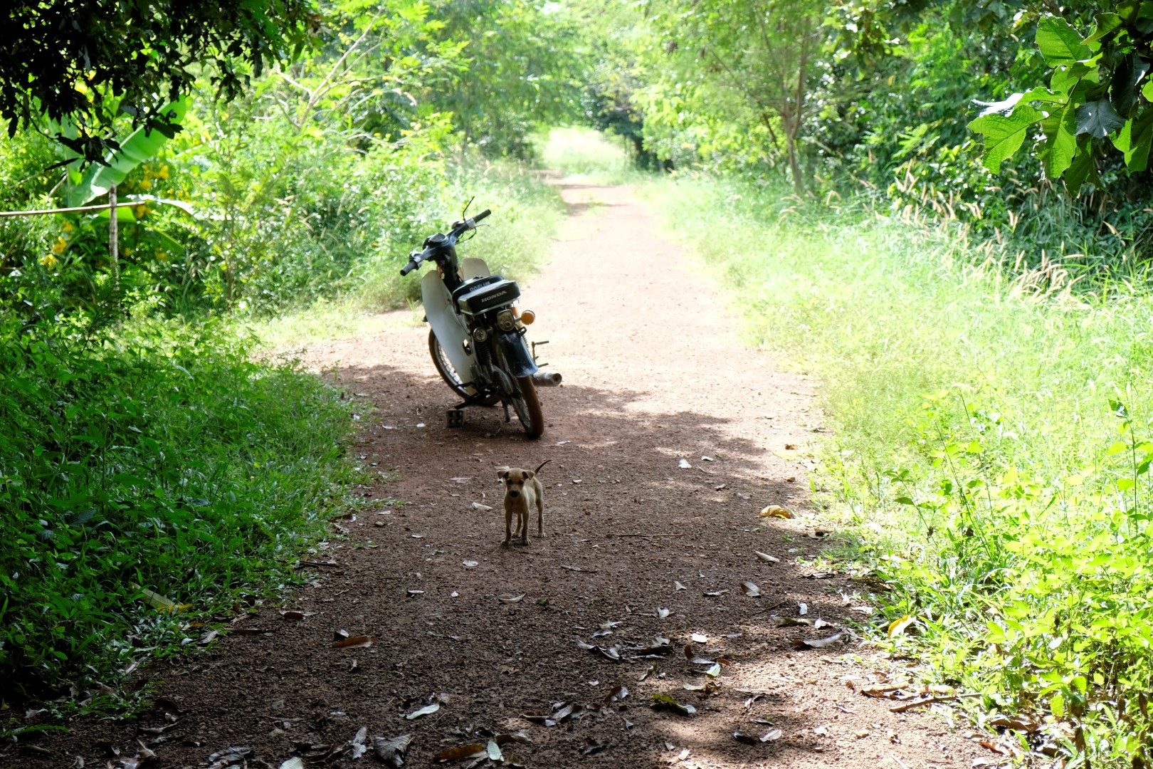 Braucot man šķita, ka šoseja ir salīdzinoši tuvu, bet tagad pat neesmu pārliecināta, ka eju pareizā virzienā – mazie lauku ceļi kartē neparādās. Kad beidzot pie apvāršņa parādās lielie cementa rūpnīcas torņi, zinu, ka eju pareizi. Nu jau ceļā pavadīta vairāk nekā stunda, kas šajā svelmē ar lielo mugursomu nav nemaz tik maz. Papildus asumiņu piešauj suņi – pie katras mājas ir vismaz viens, bet visbiežāk divi, trīs vai četri – daži no viņiem neizturas pārāk viesmīlīgi. Cilvēki lielākoties smaida un sauc “hello”, tomēr kādi trīs no desmit noraugās ar aizdomām un pat neatņem sveicienu.