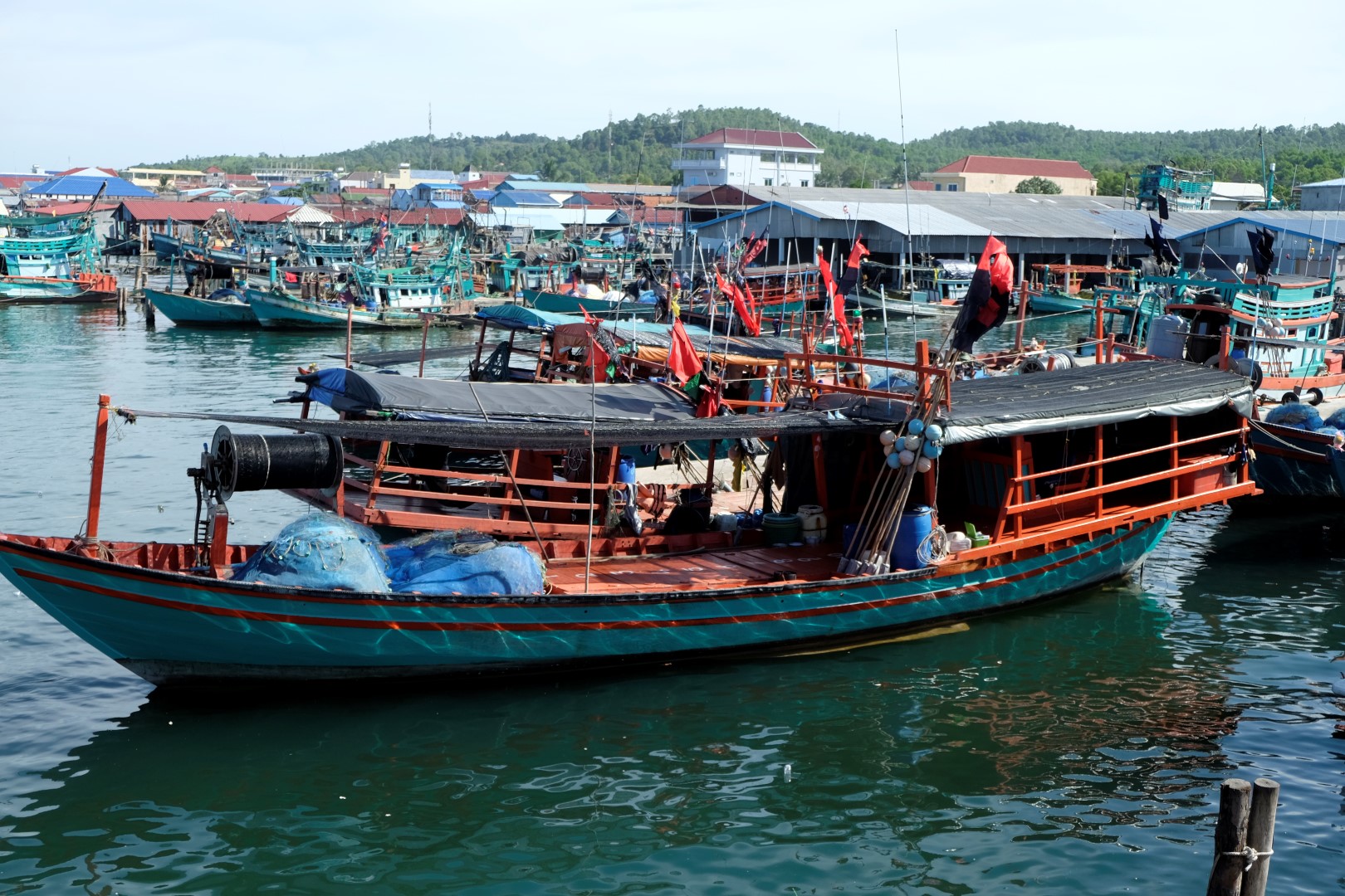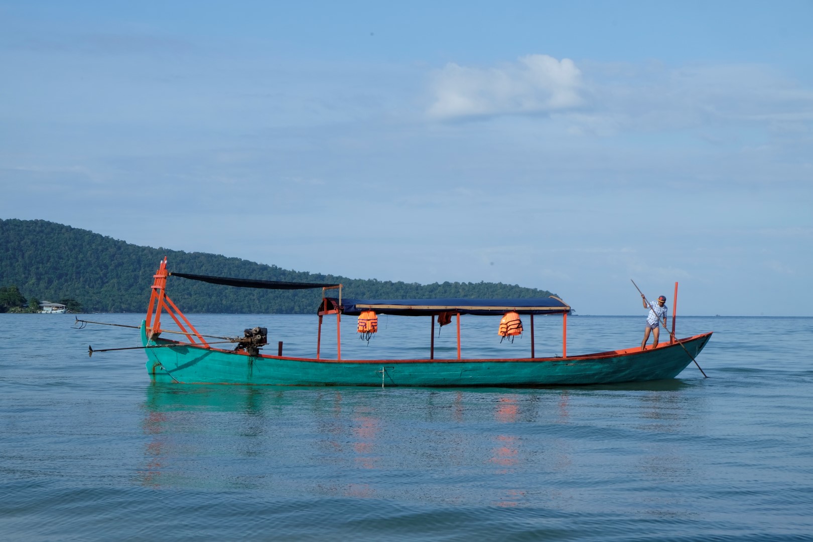 Goša ir norezervējusi izbraucienu ar laivu uz trim salām, un esmu vieglu prātu nolēmusi pievienoties. Atkal jau desmit minūtes pirms paredzētā laika klāt ir savācējautobuss, kas iesākumā mūs aizvizina līdz Sihanouk pilsētiņai. Braucot caur to, priecājos, ka palieku Otres, jo pilsēta izskatās pēc bardaka. Ir cilvēku pilns, un, par spīti svētdienai, visās malās klaudz āmuri, rūc urbji, žilbinās metināmie – šeit izskatās pēc īsta būvlaukuma.